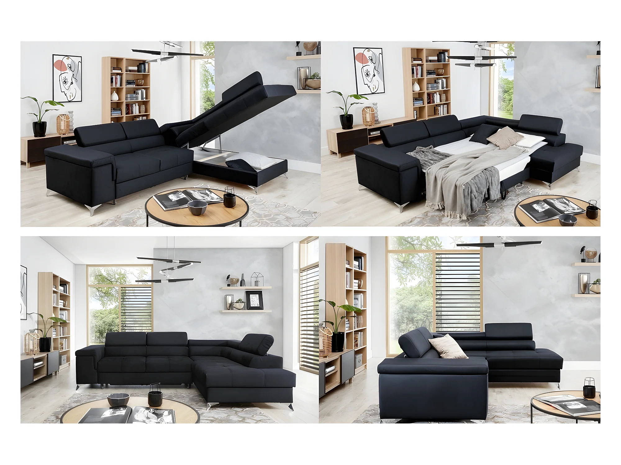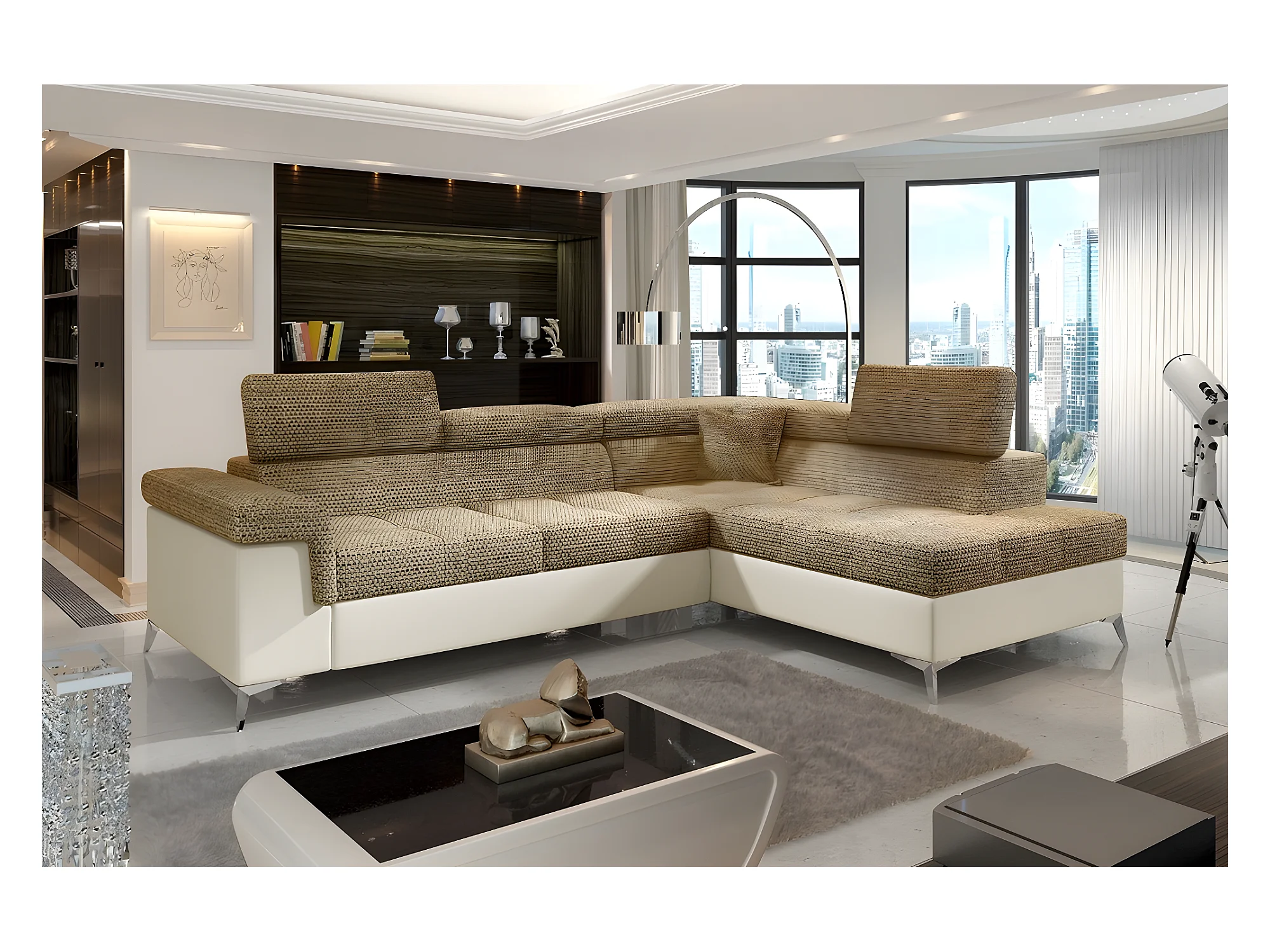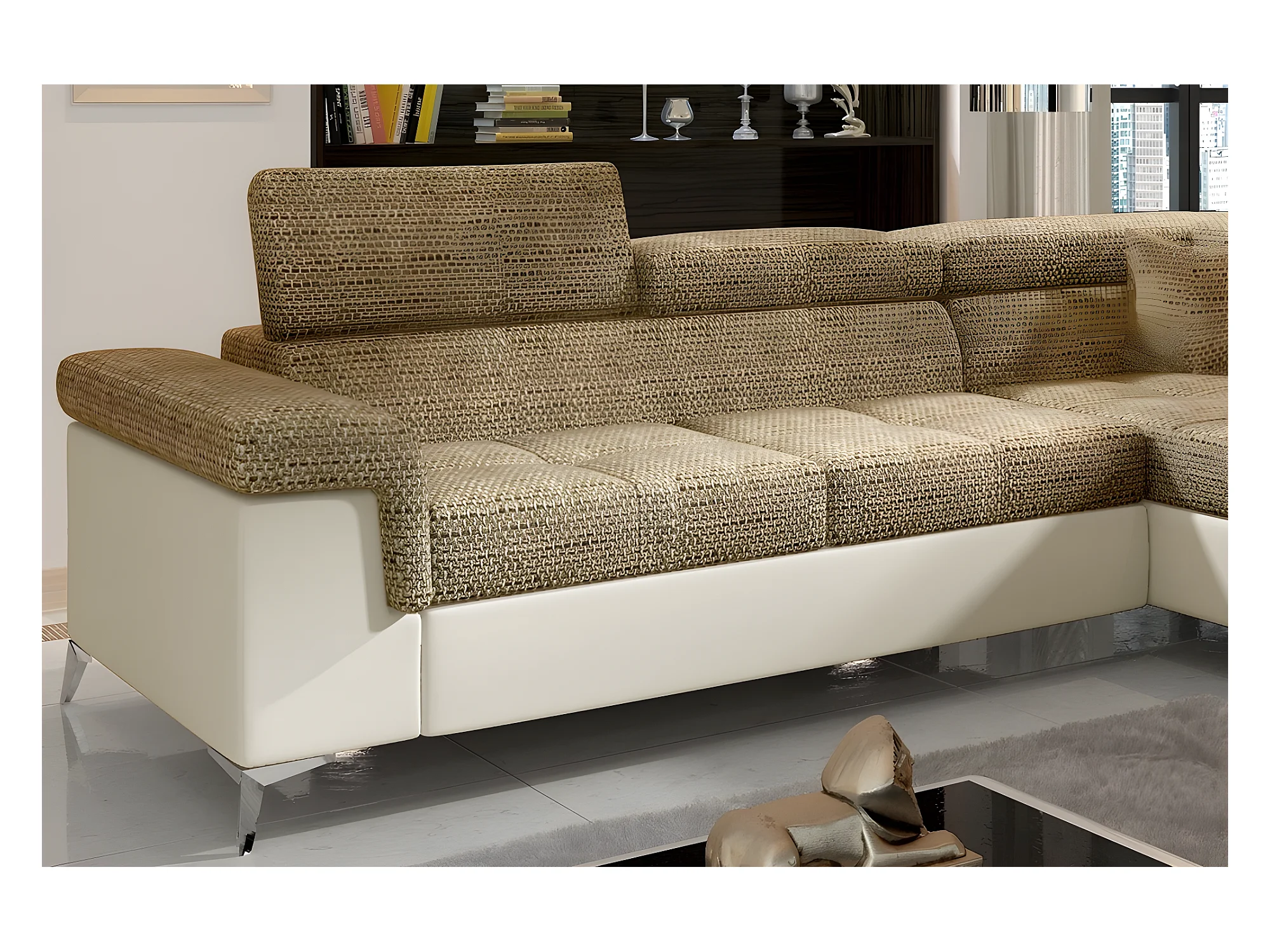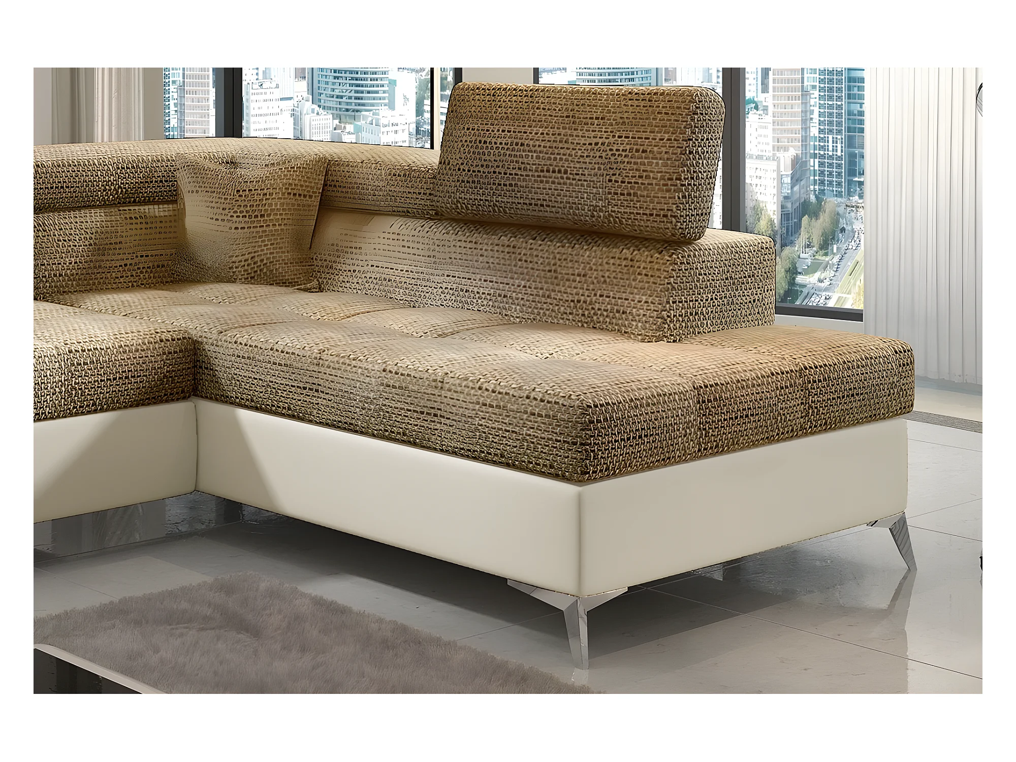 Canapé d'angle convertible - ERMAN - en tissu et simili 5 places, marron et écru, angle droit (vu de face)