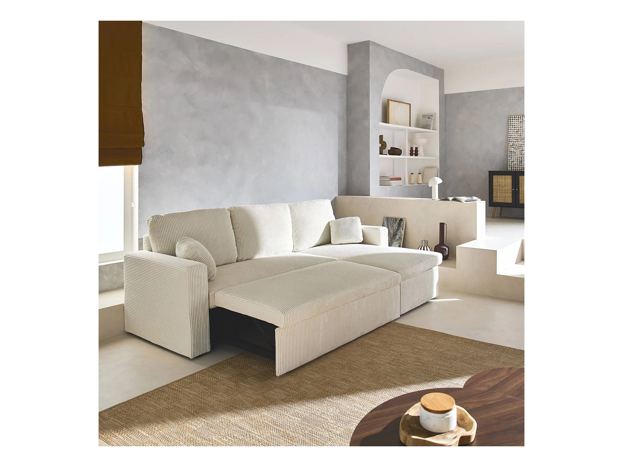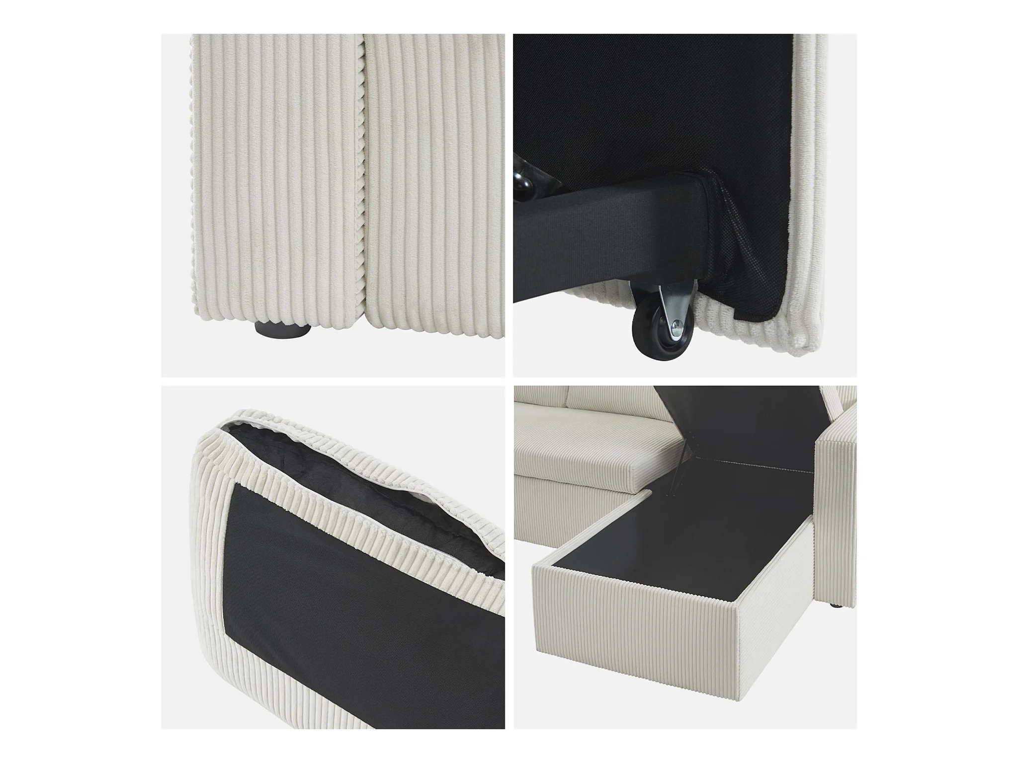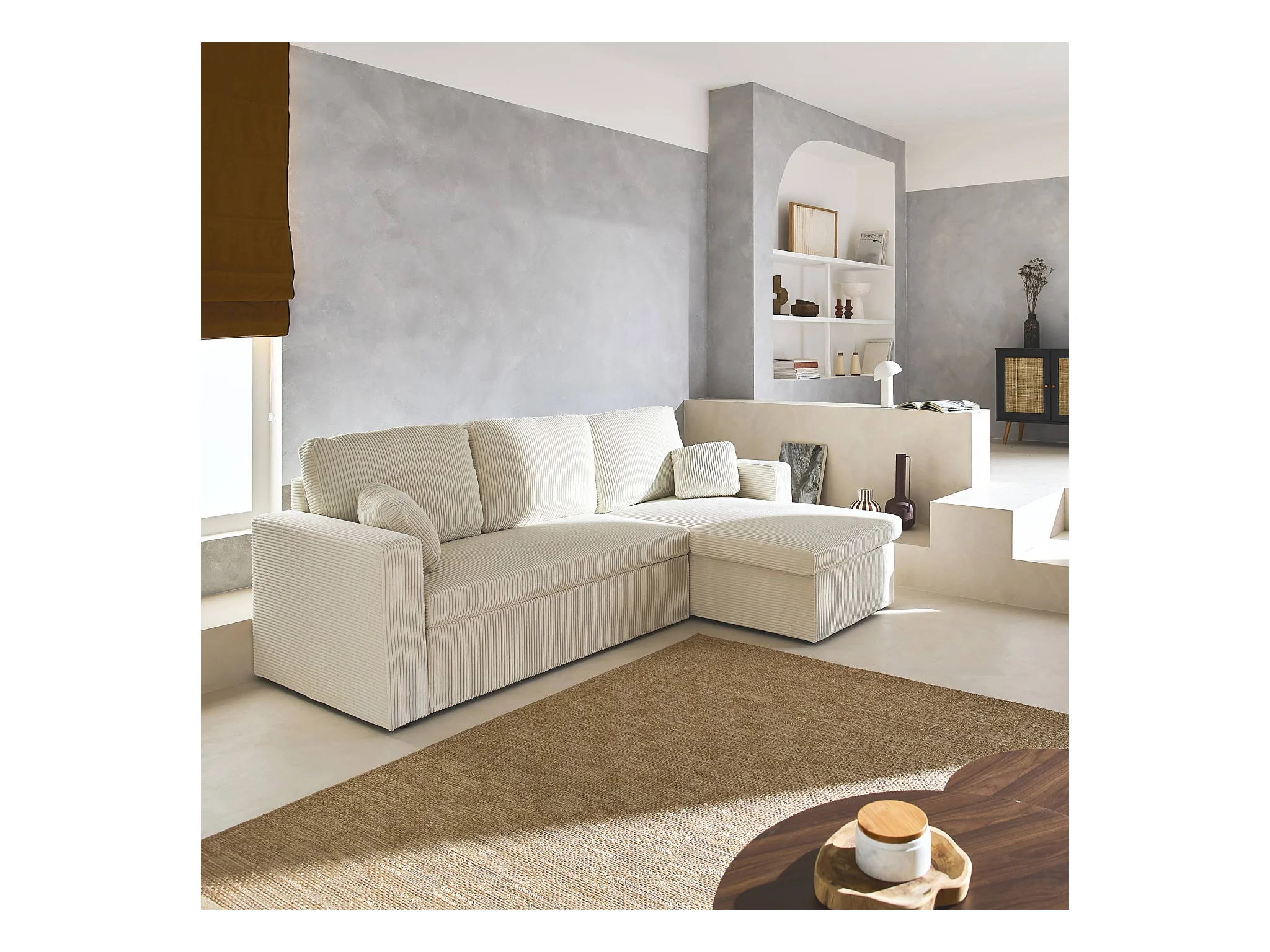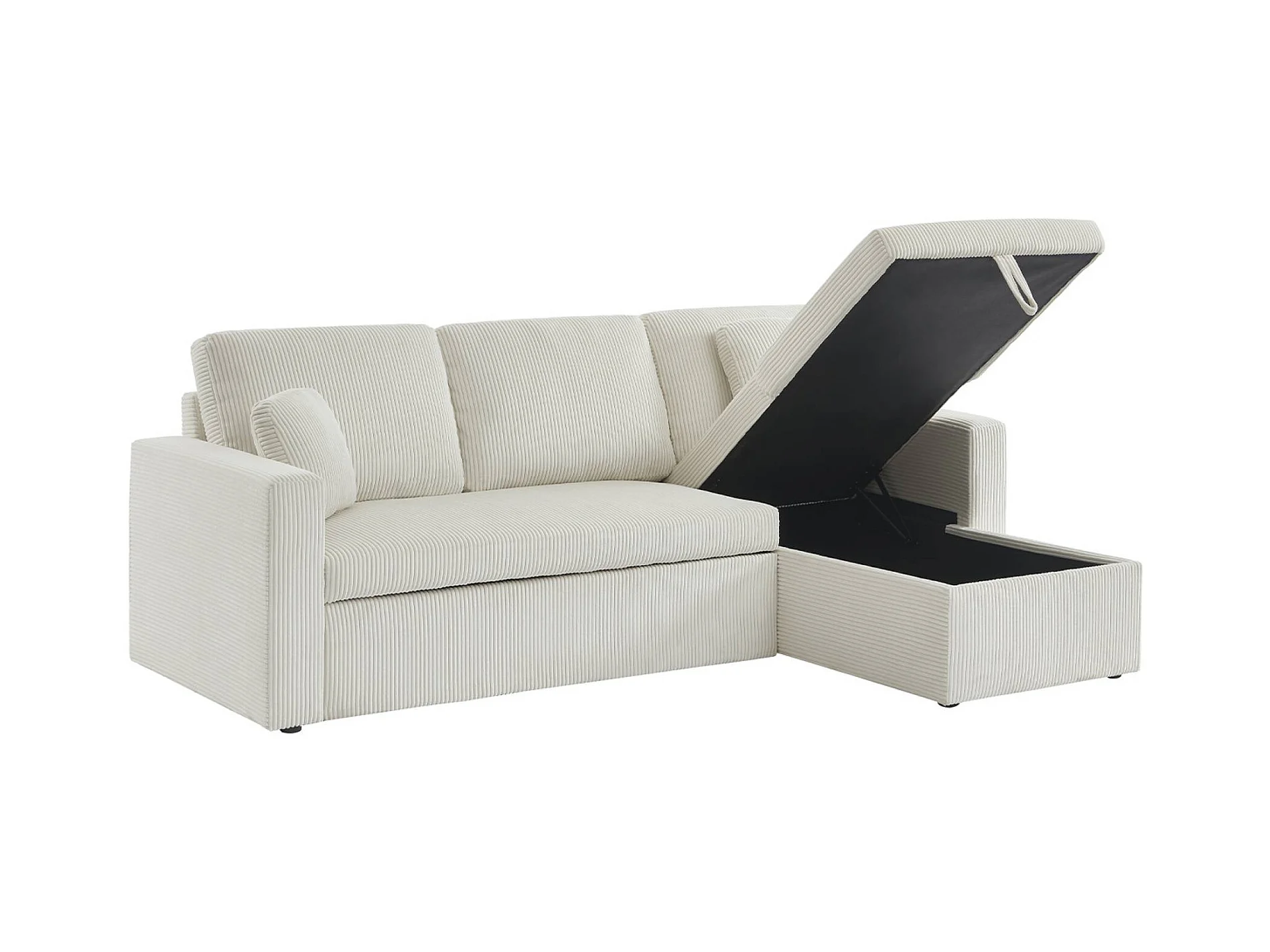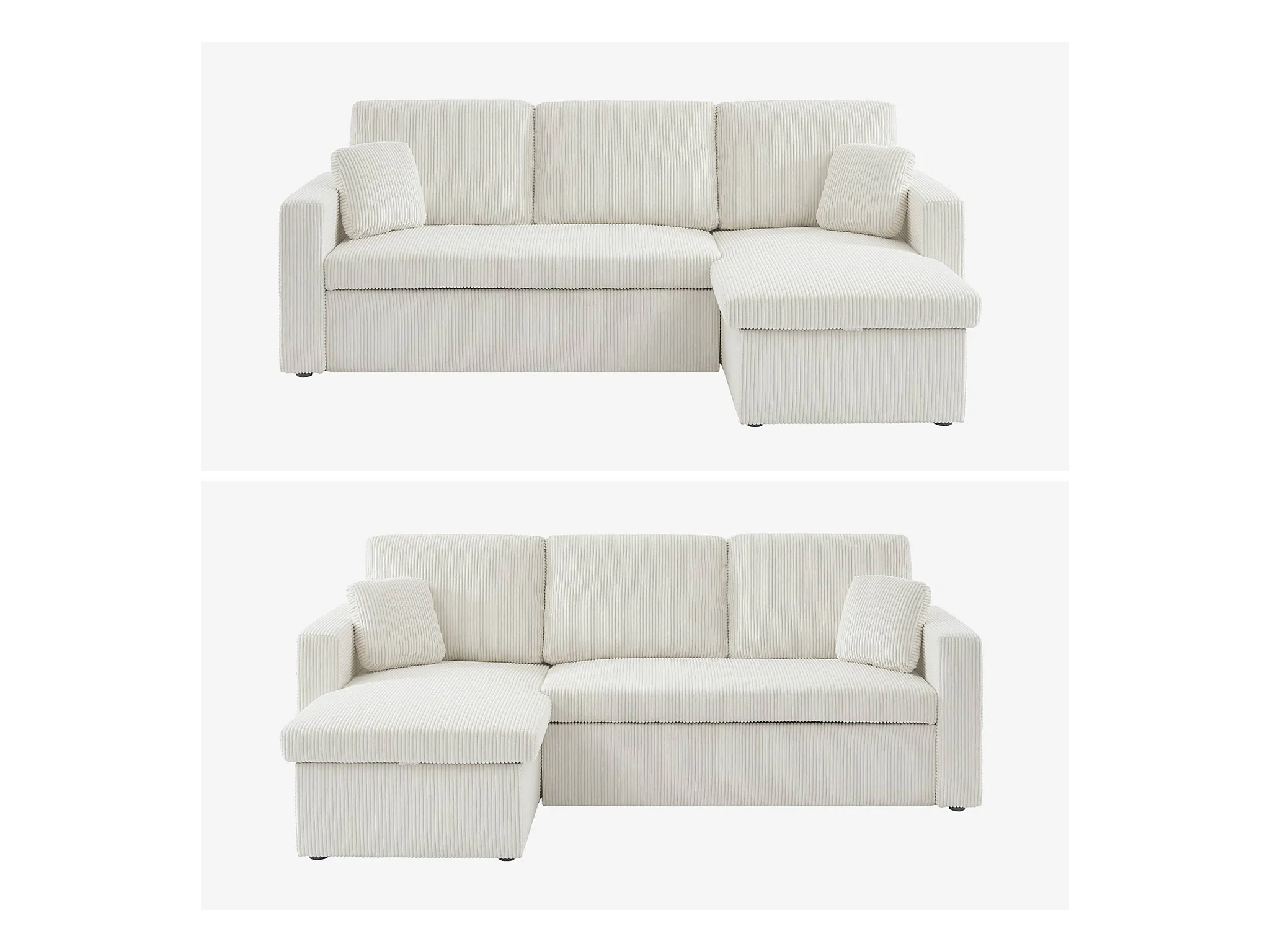 Canapé d'angle convertible et réversible. velours côtelé grosse côte blanc crème. 3 places