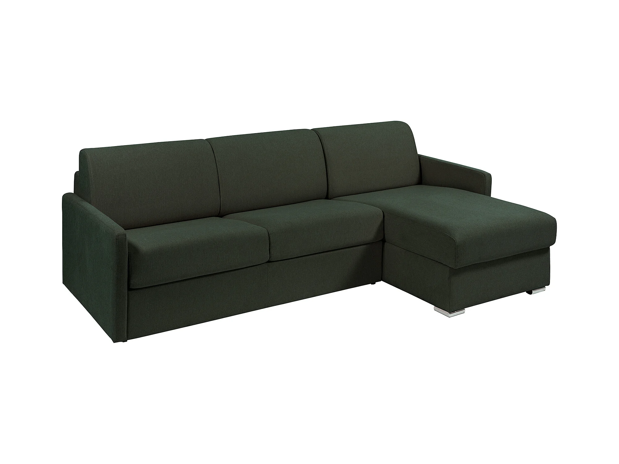 Canapé d'angle convertible express et réversible en tissu vert sapin - Couchage 140 cm - Matelas 14 cm - CALIFE