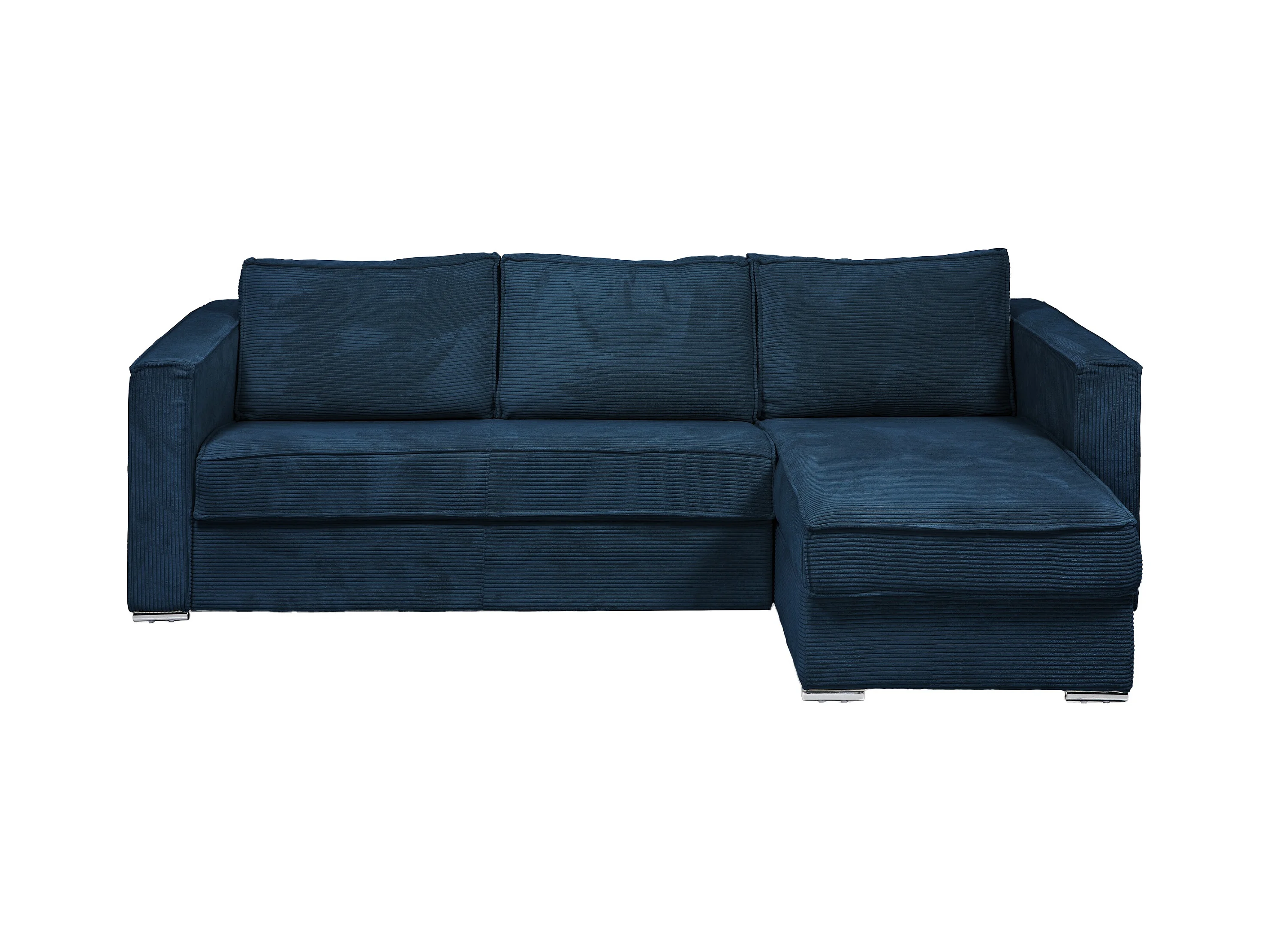 Canapé d'angle convertible express et réversible en velours côtelé bleu nuit - Couchage à lattes larges 160 cm - Matelas 14 cm LORETO