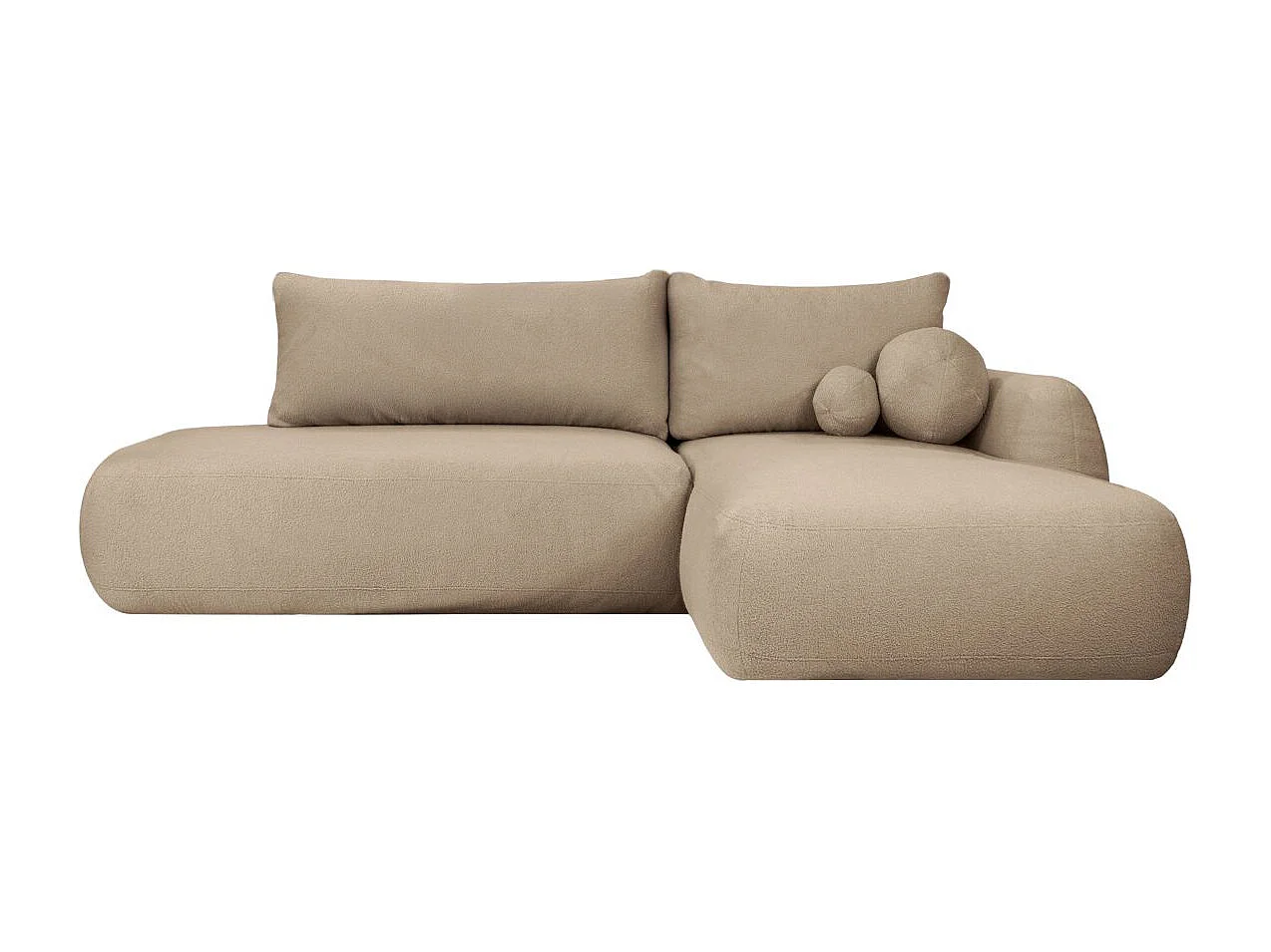 Canapé d'angle convertible FABIO 5 places en tissu bouclette - angle droit - Gris anthracite
