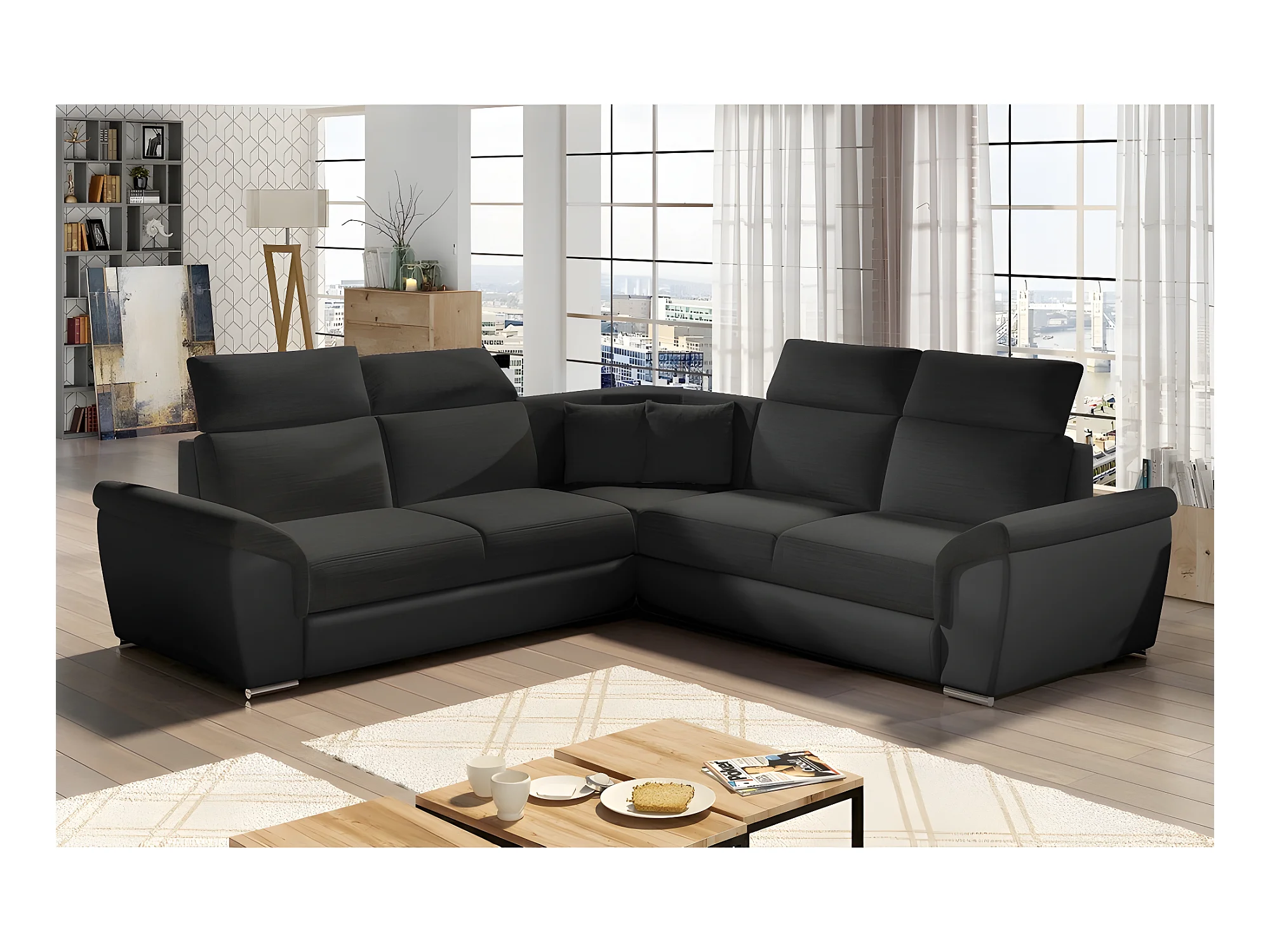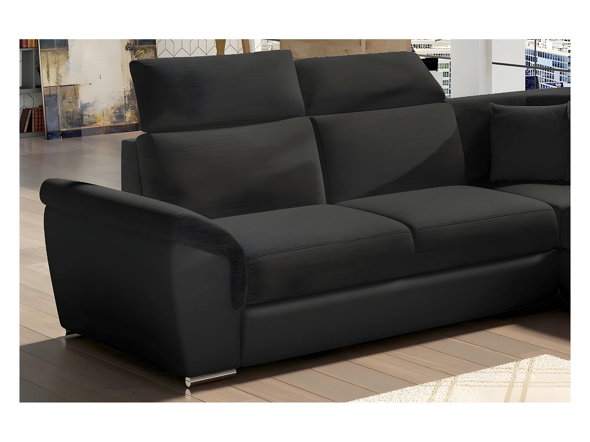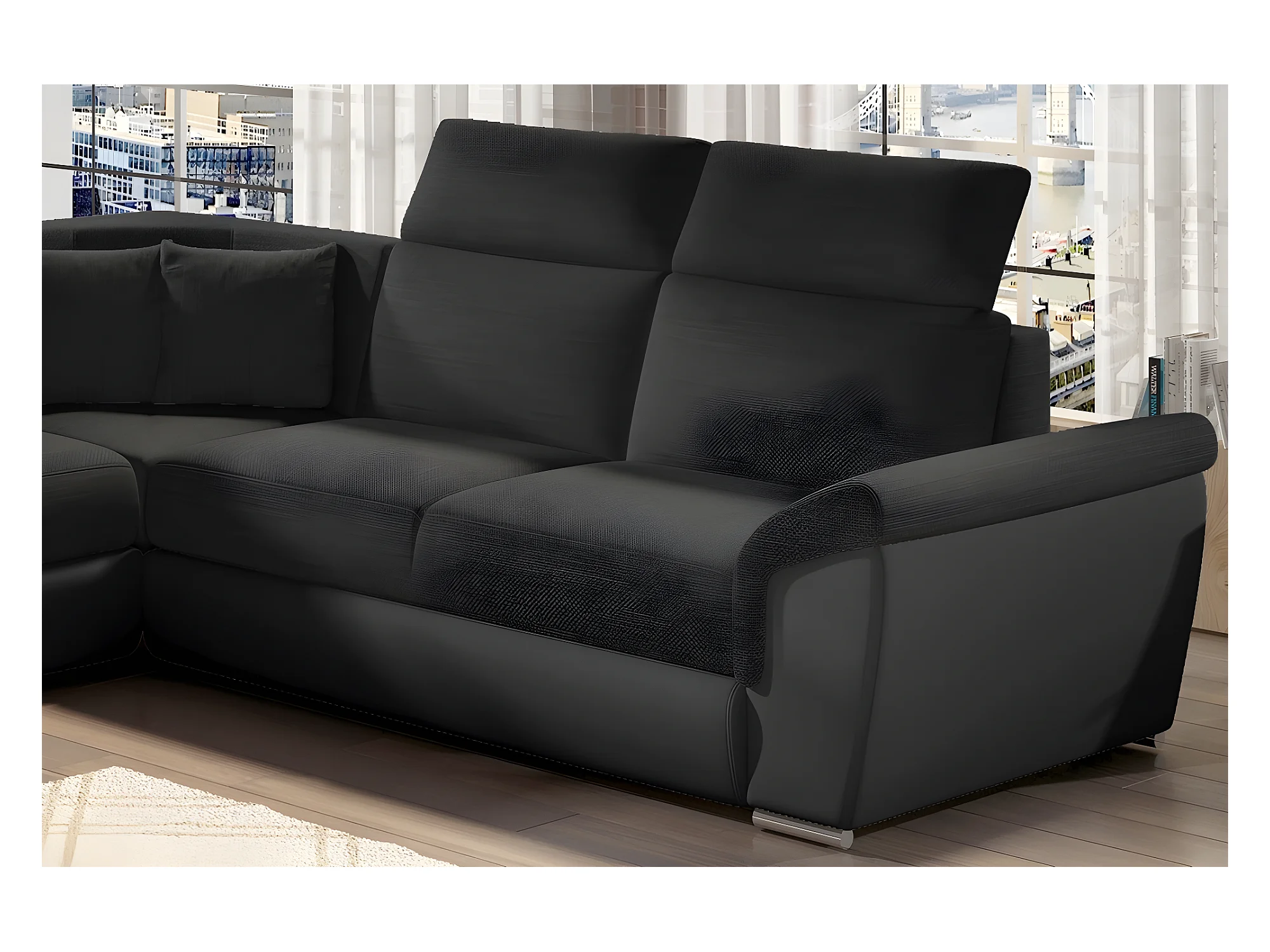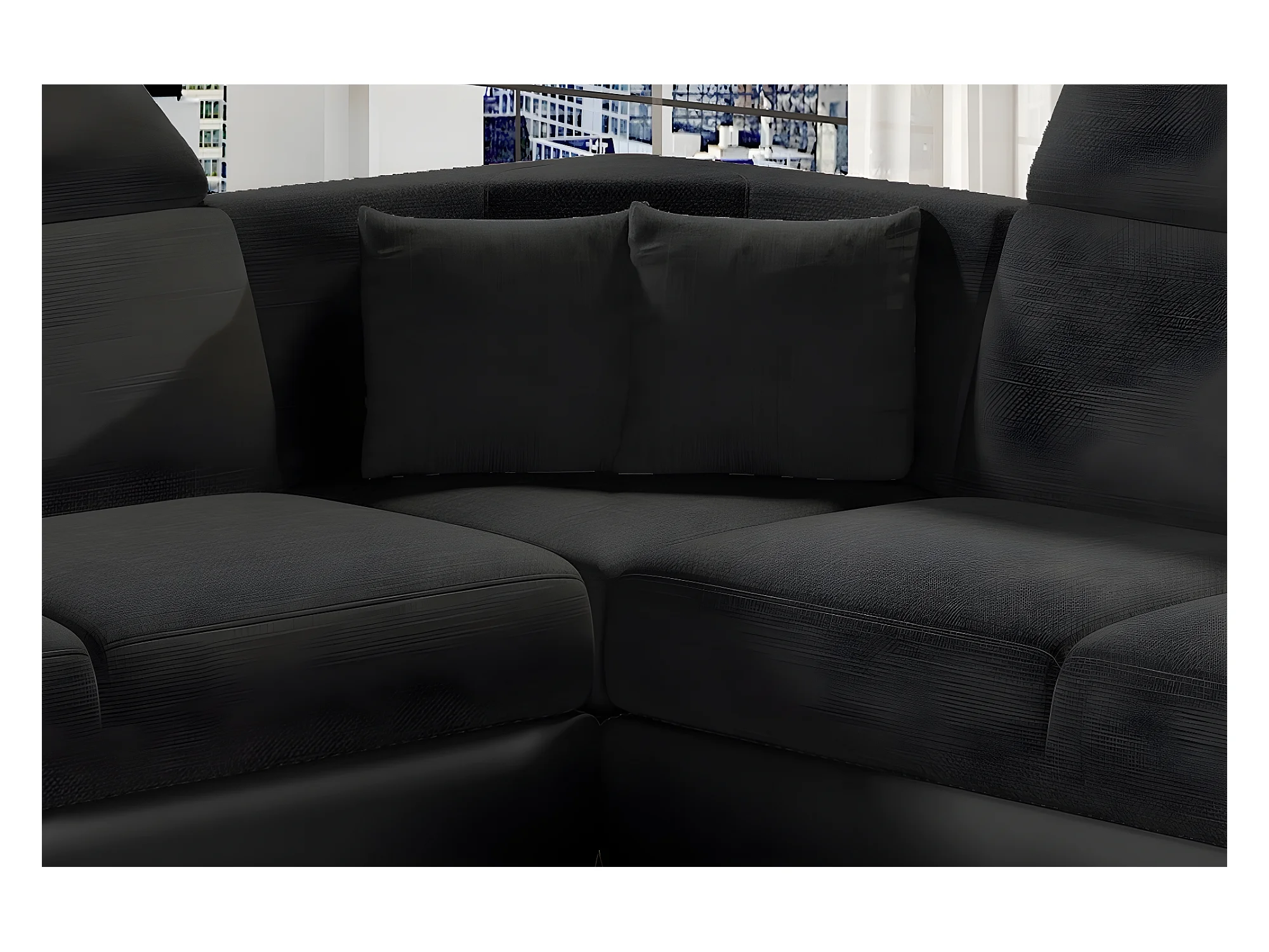 Canapé d'angle - convertible - FELIPE - en tissu noir et simili cuir noir, 5/6 places