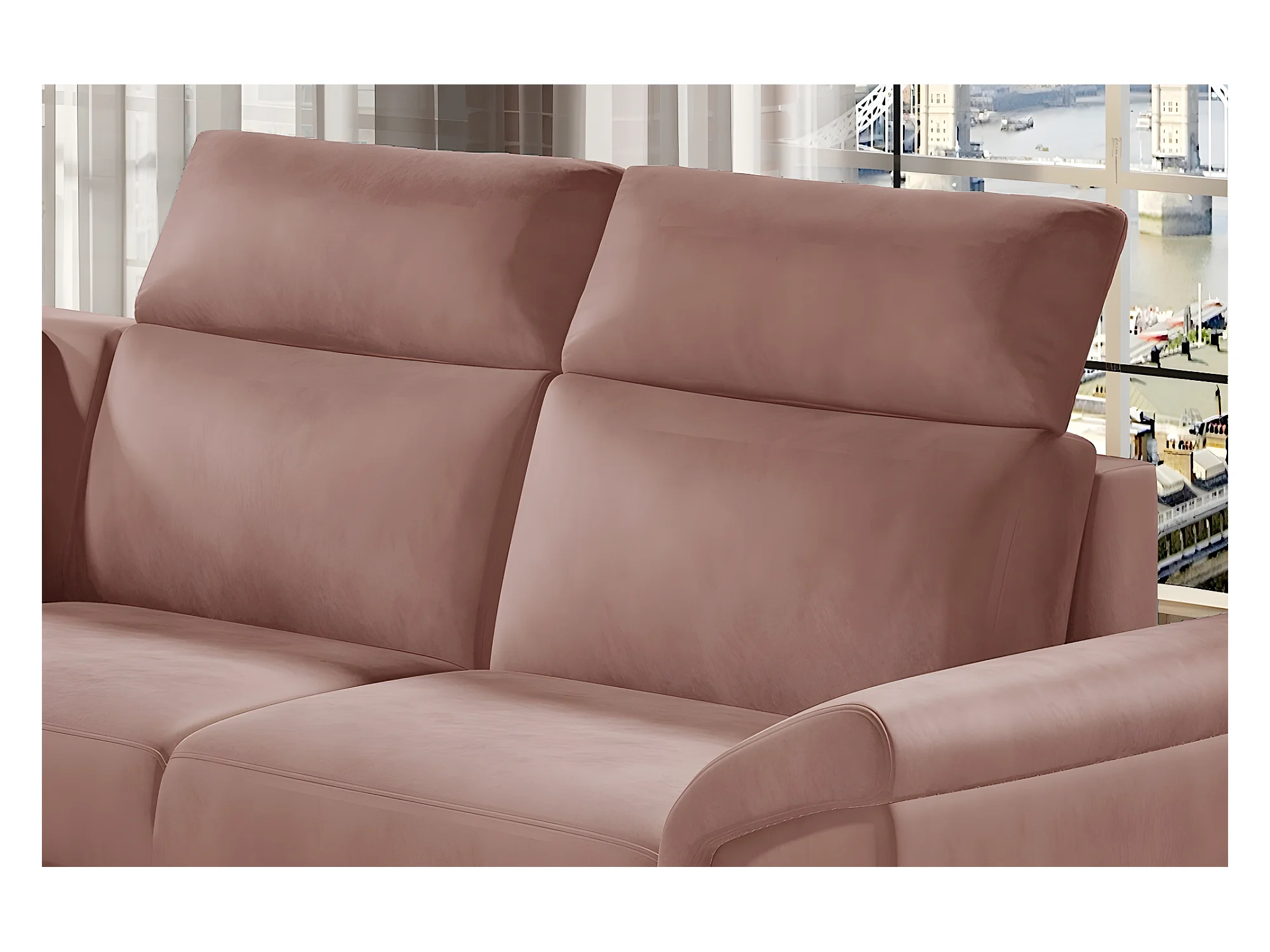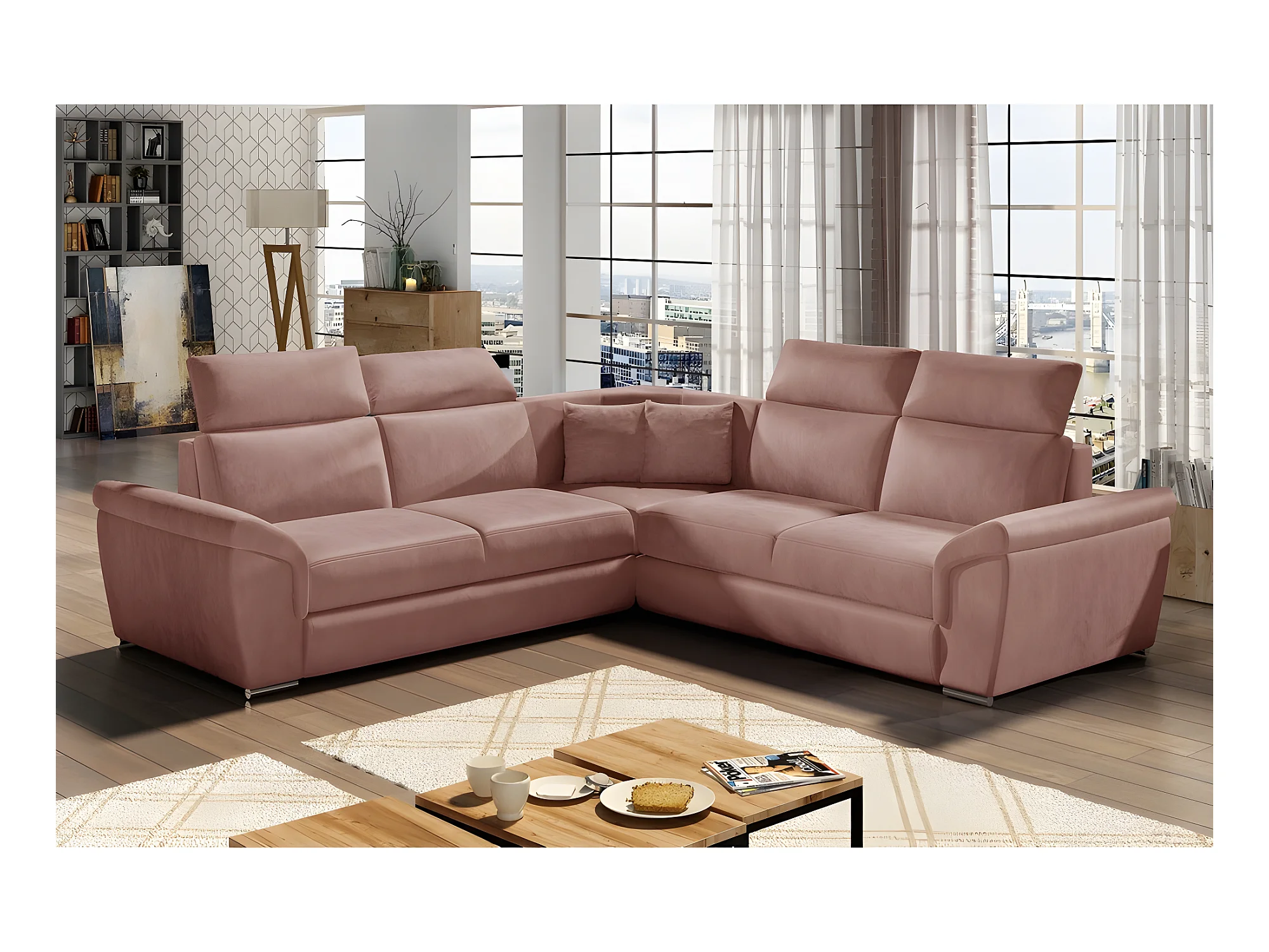 Canapé d'angle - convertible - FELIPE VELOURS - en tissu luxe rose pale, 5/6 places