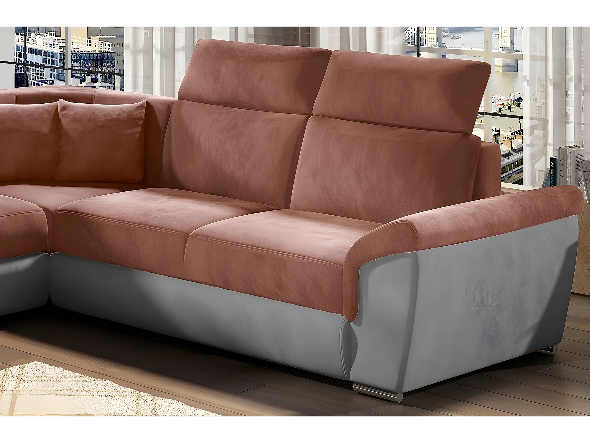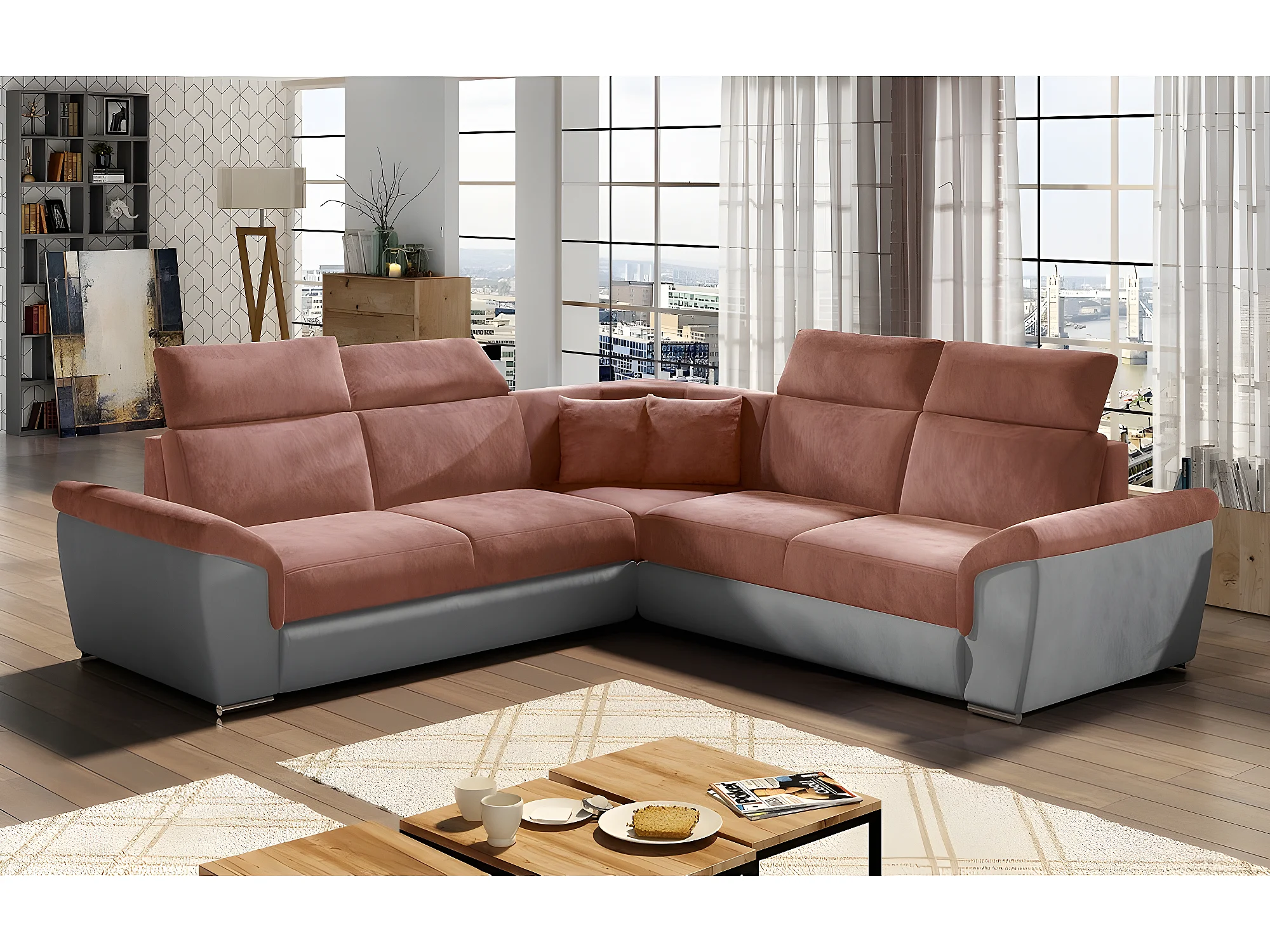 Canapé d'angle - convertible - FELIPE VELOURS - en tissu luxe rose pale et gris, 5/6 places