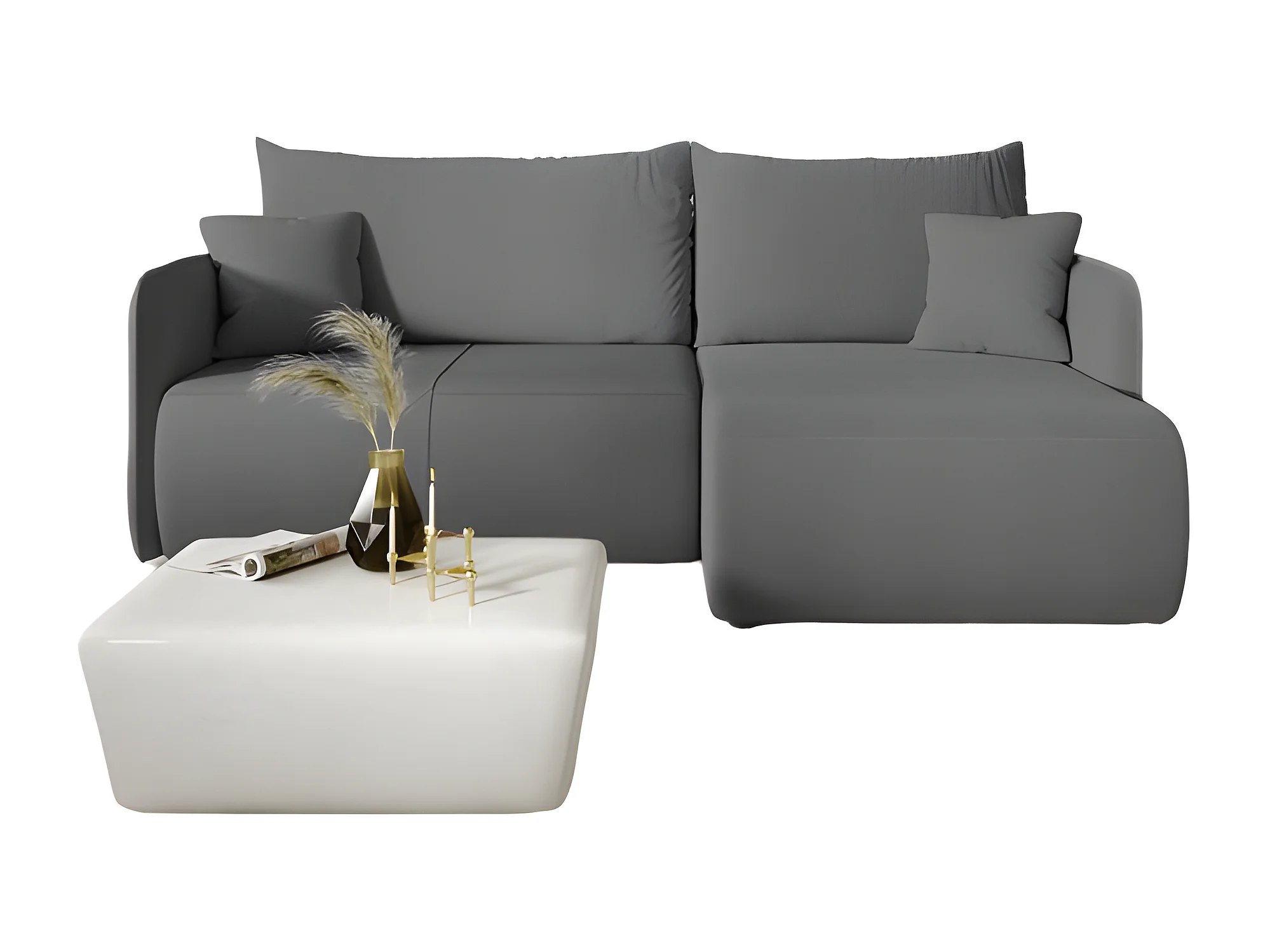 Canapé d'angle convertible FORIA en L en tissu hydrophobe gris foncé