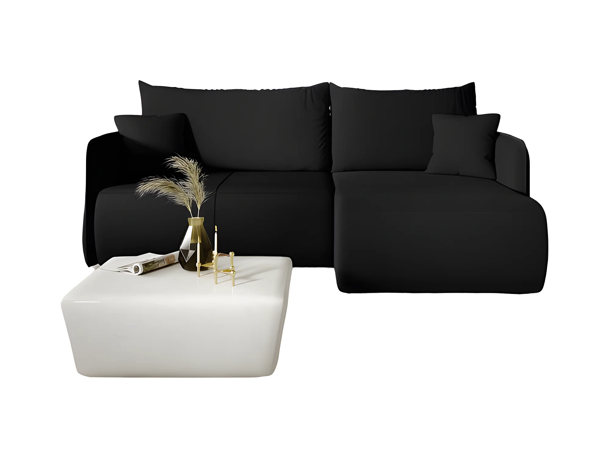 Canapé d'angle convertible FORIA en L en tissu hydrophobe noir