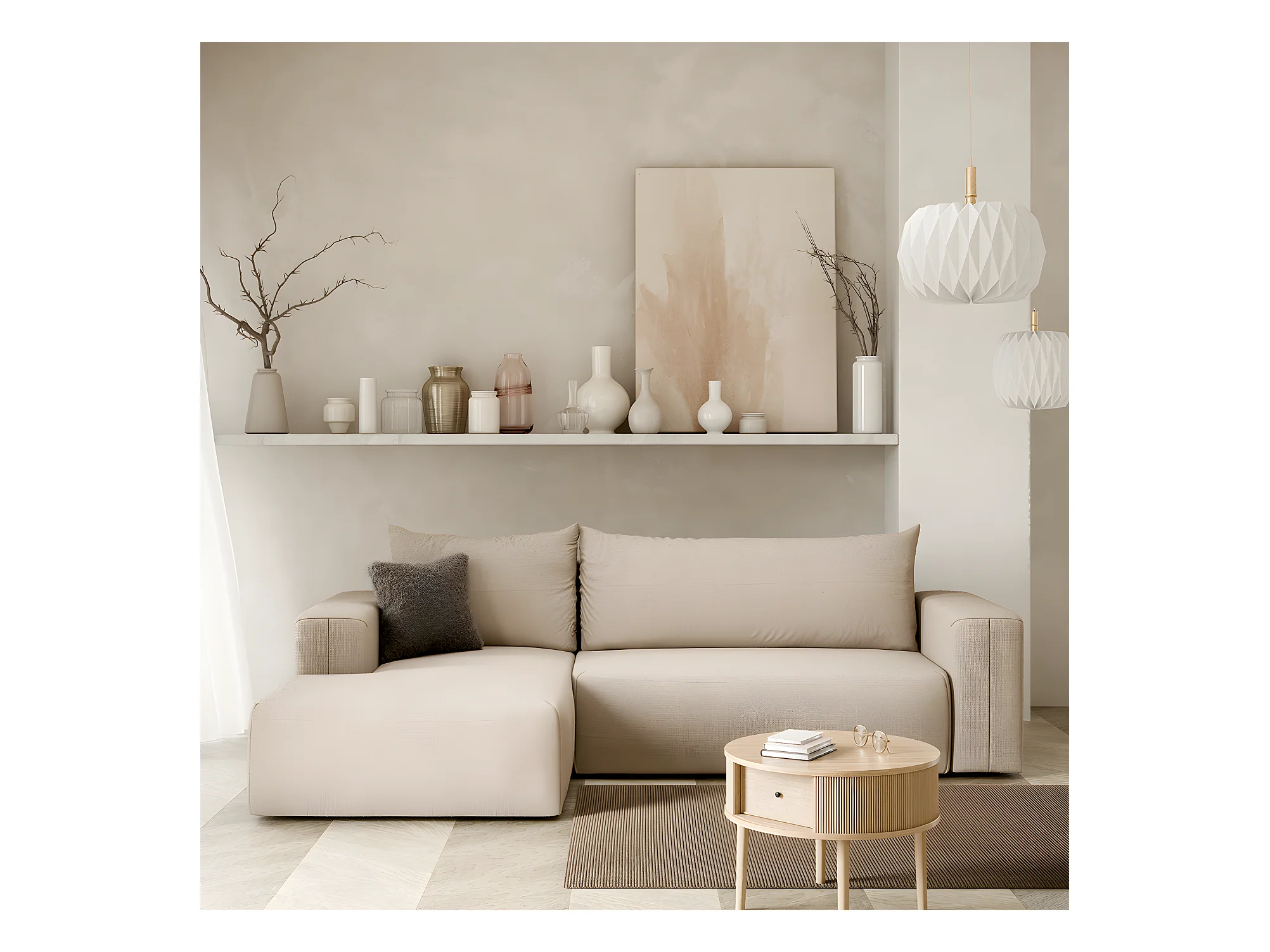 Canapé d'angle convertible gauche 3 places coffre Bliss Beige