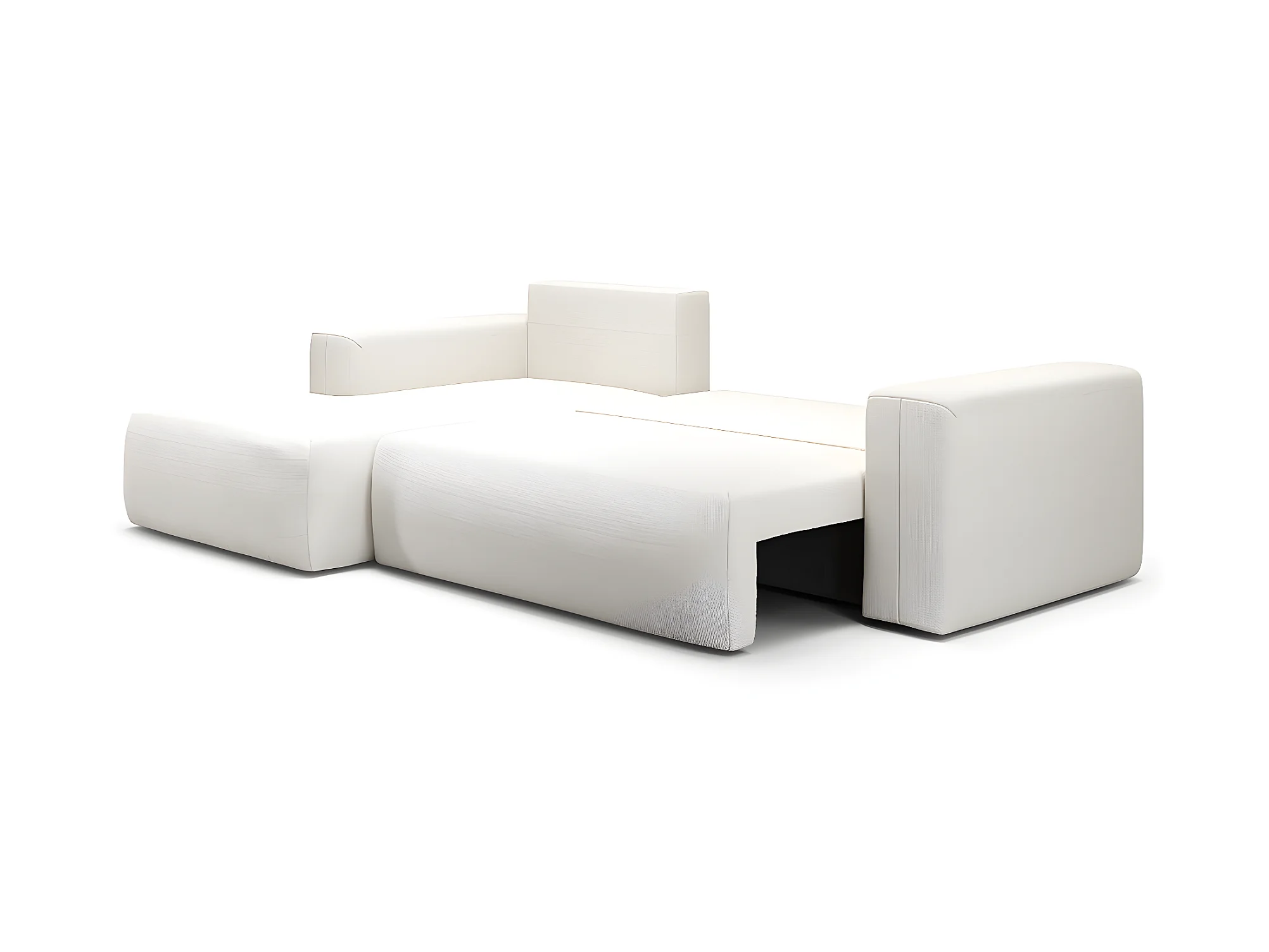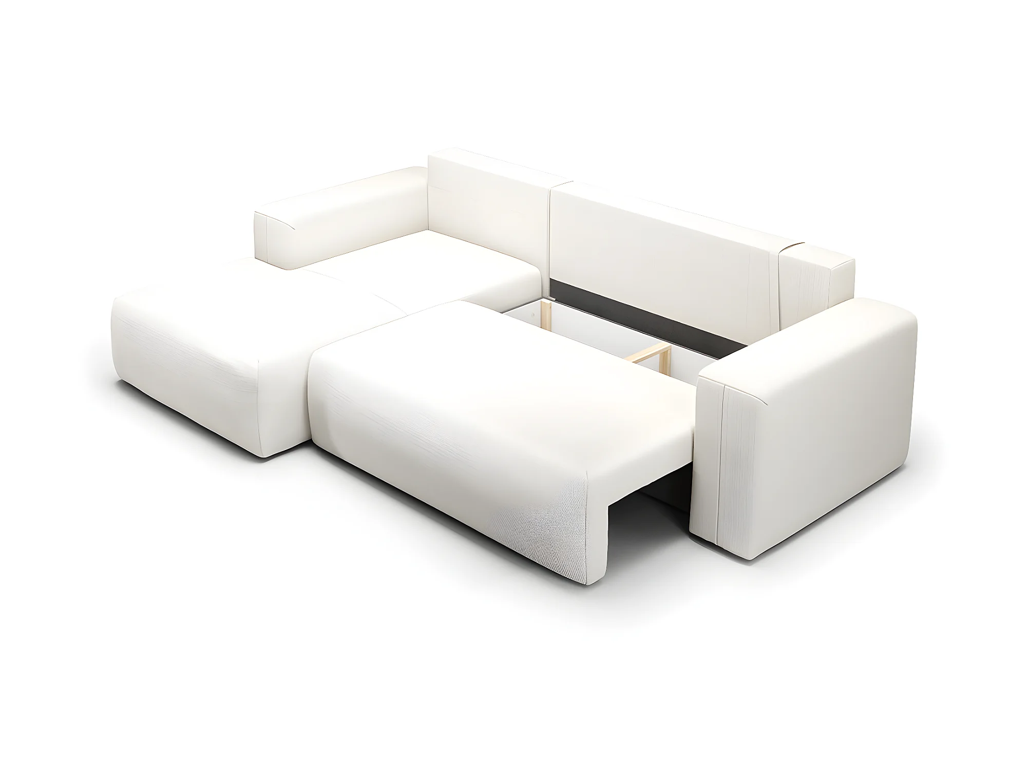 Canapé d'angle convertible gauche 3 places coffre Bliss Blanc Cassé