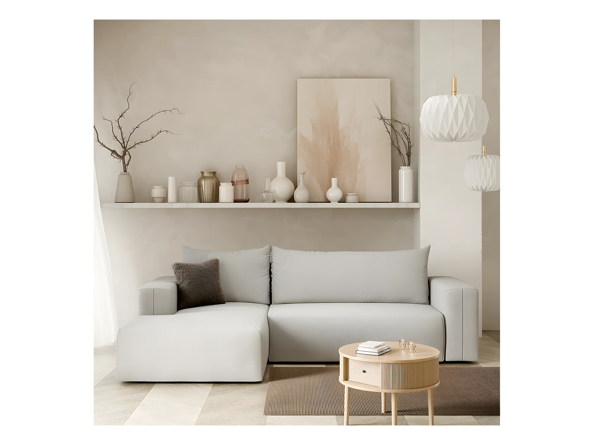 Canapé d'angle convertible gauche 3 places coffre Bliss Gris clair