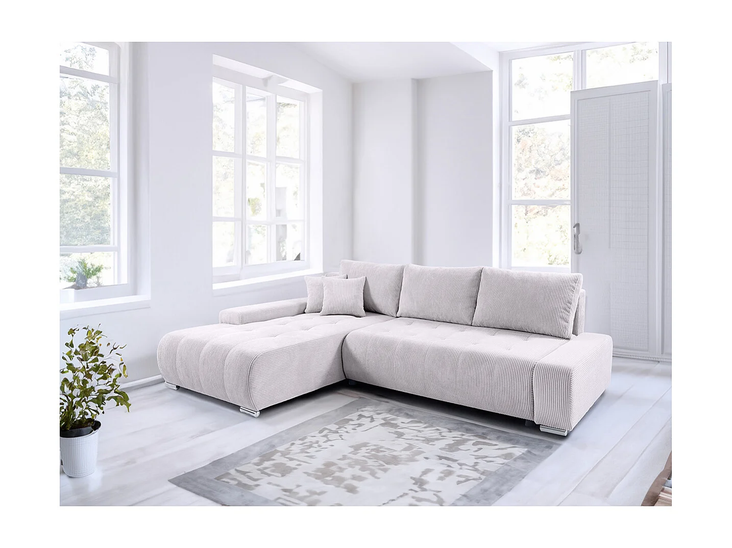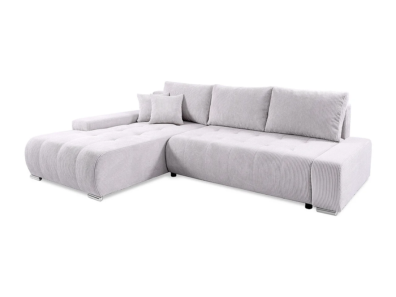 Canapé d'angle convertible gauche 4 places coffre Jonas velours côtelé Blanc Cassé