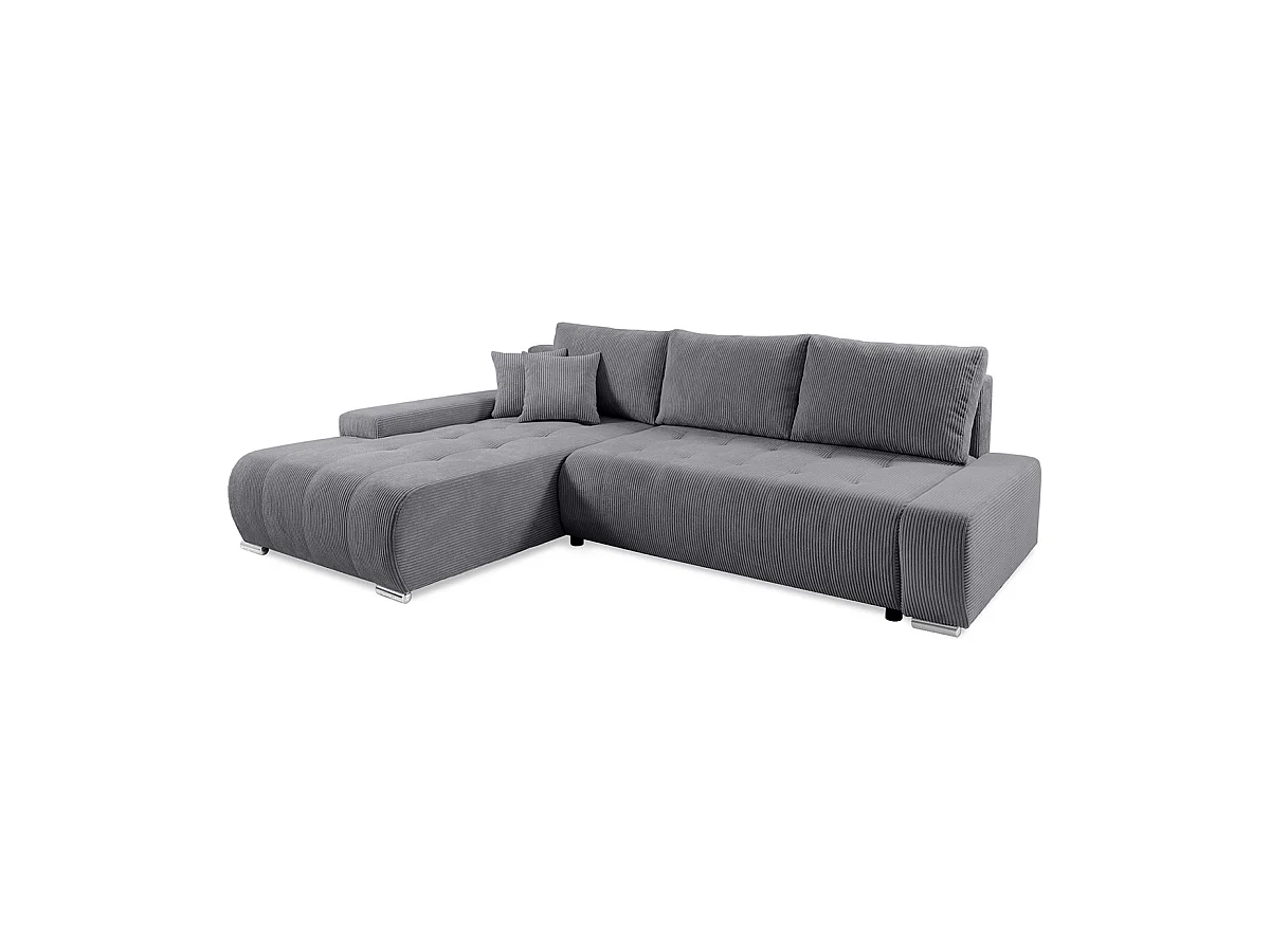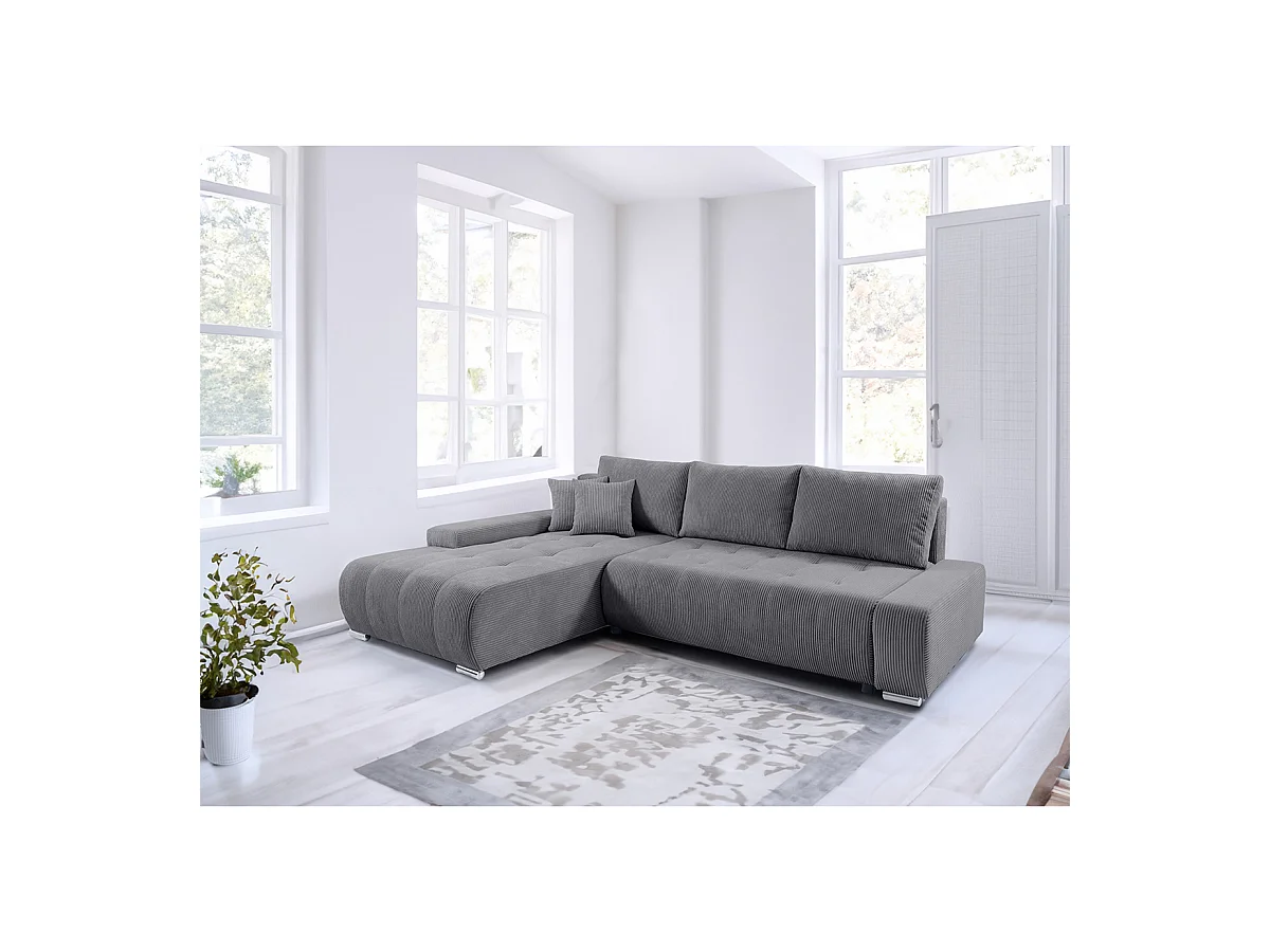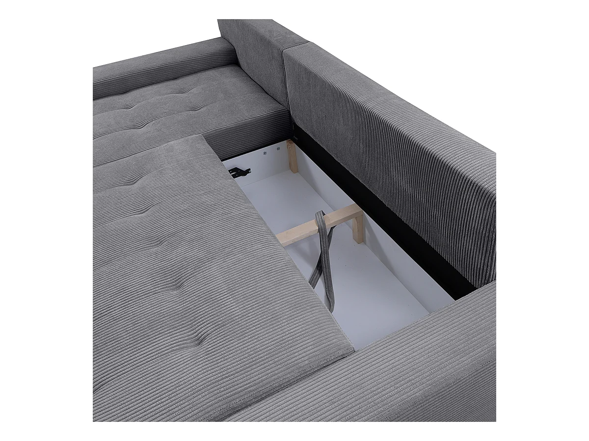 Canapé d'angle convertible gauche 4 places coffre Jonas velours côtelé Gris