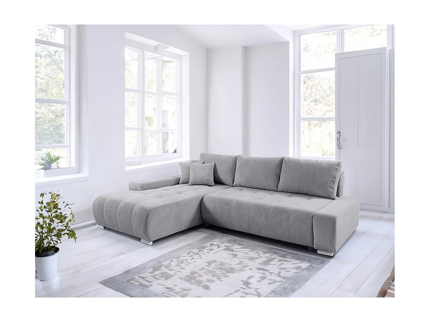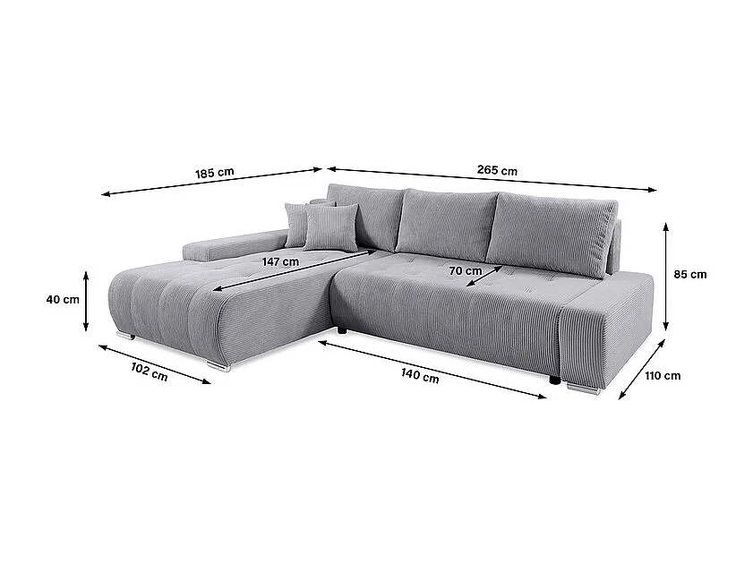 Canapé d'angle convertible gauche 4 places coffre Jonas velours côtelé Gris Clair