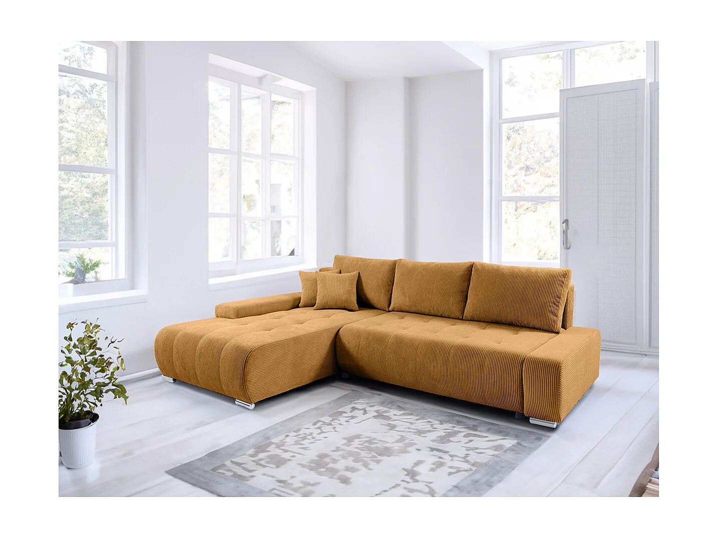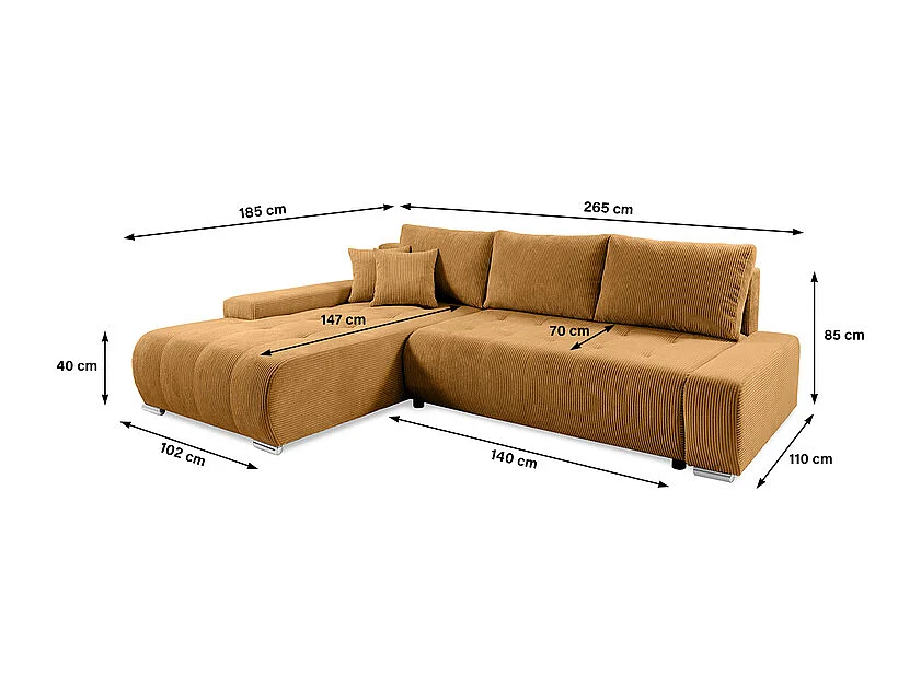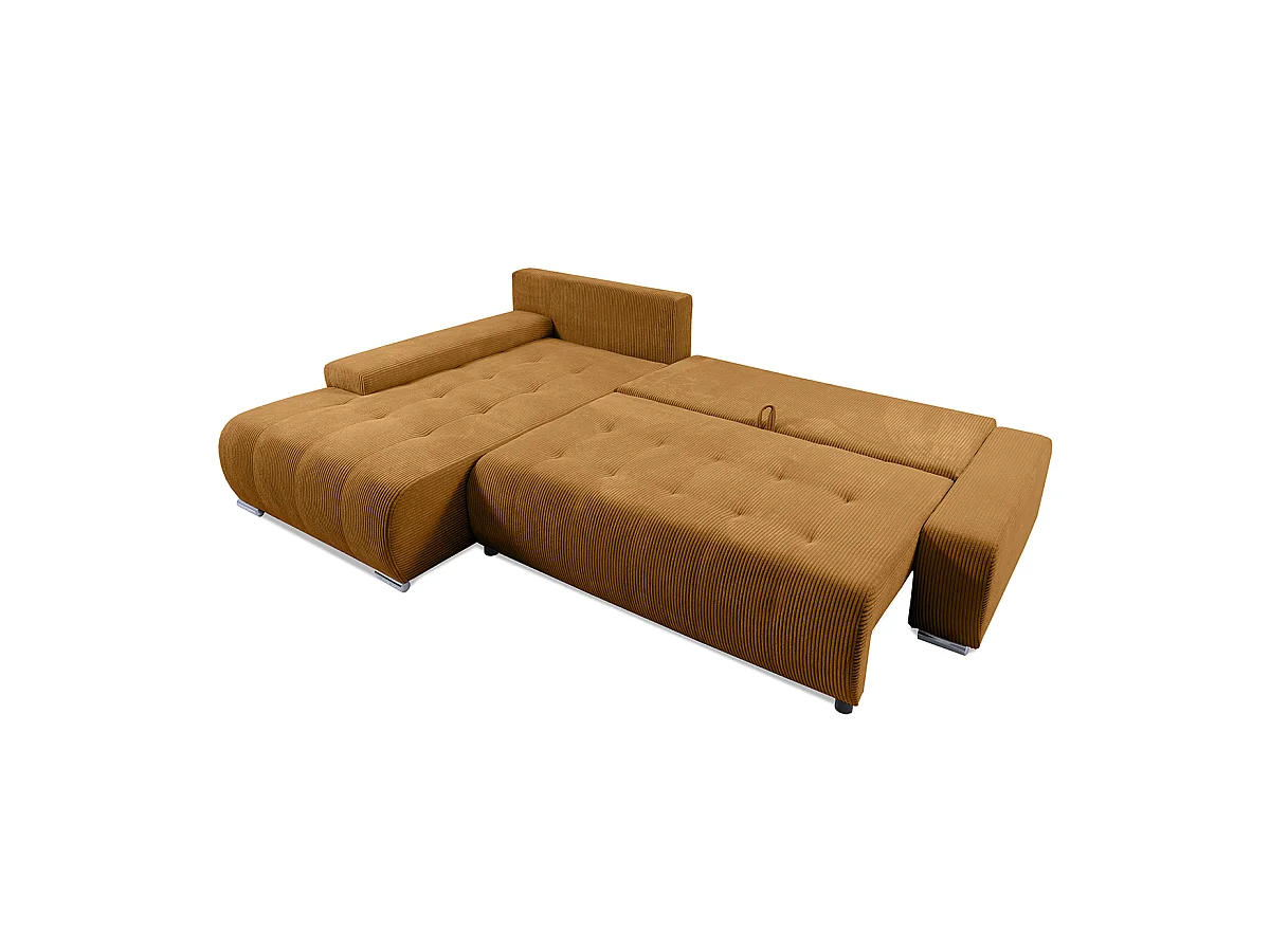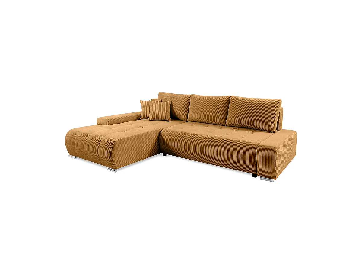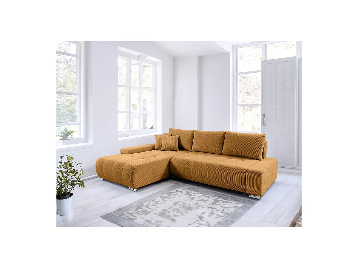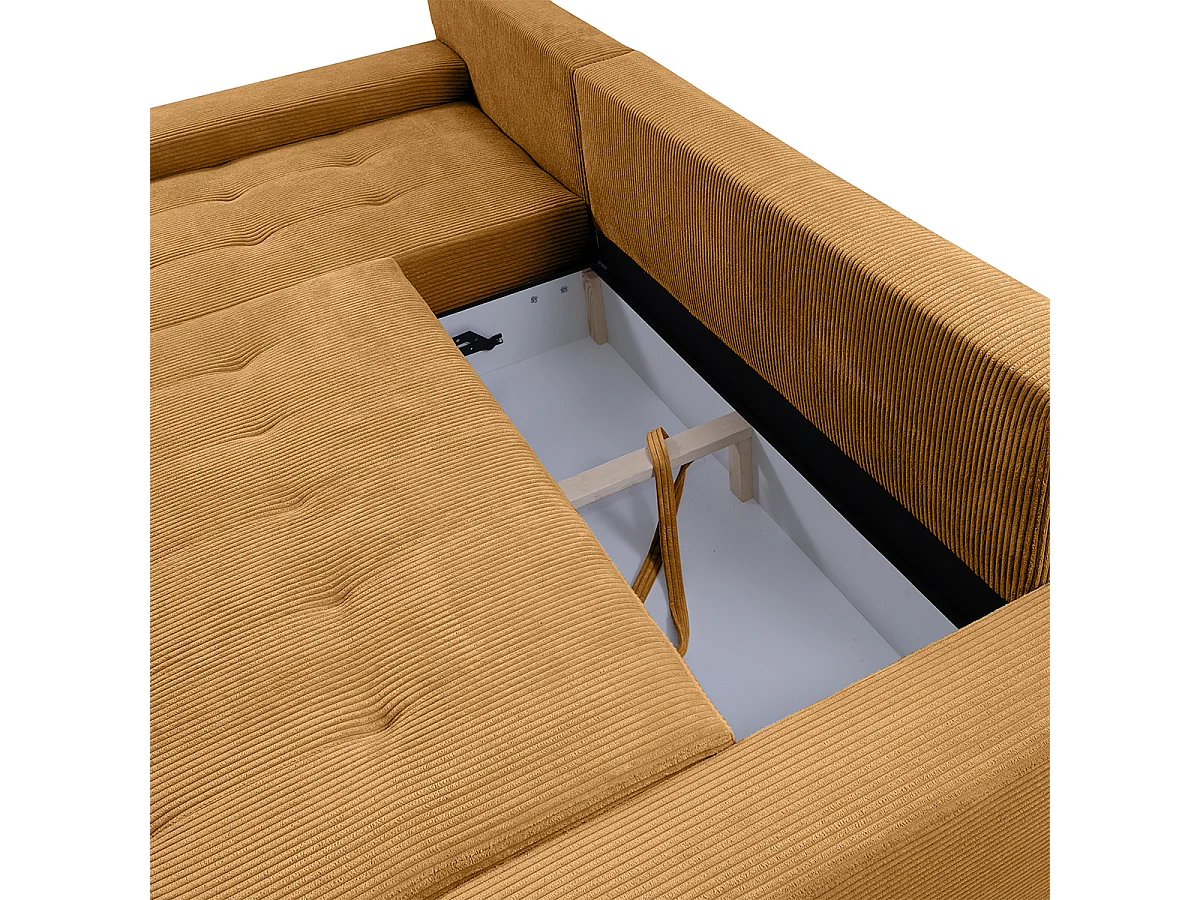Canapé d'angle convertible gauche 4 places coffre Jonas velours côtelé Jaune