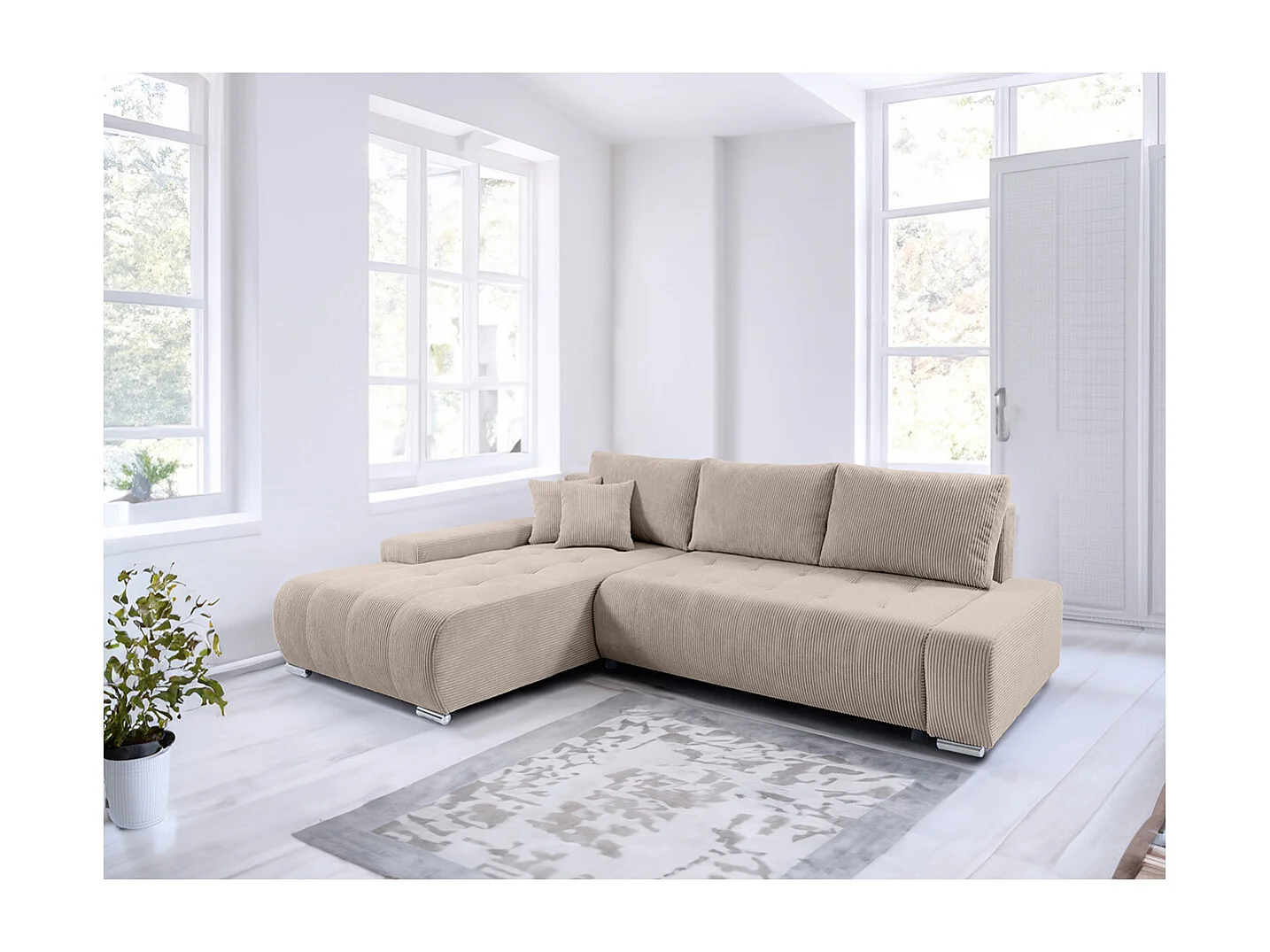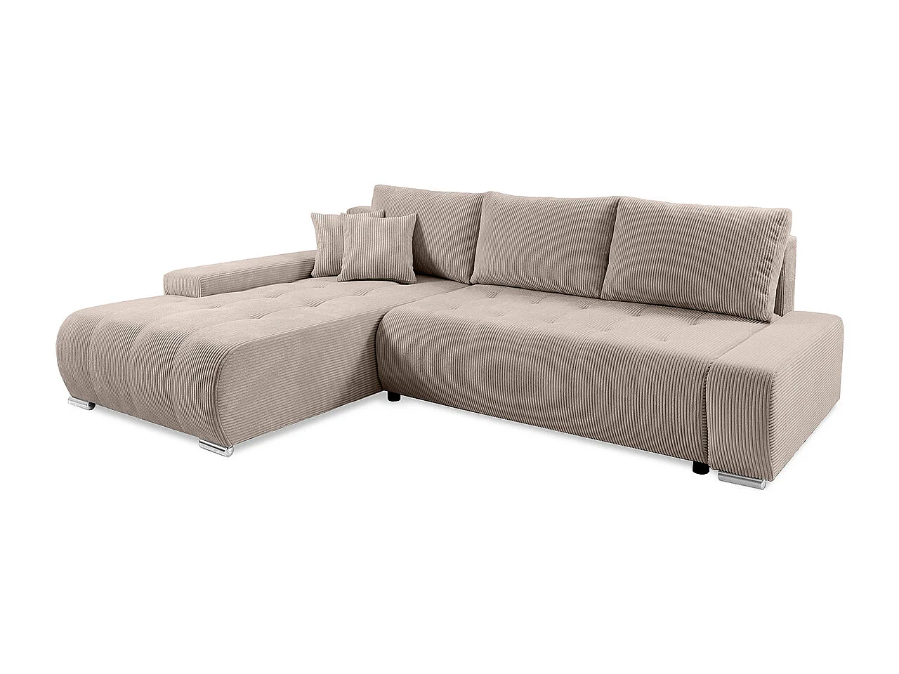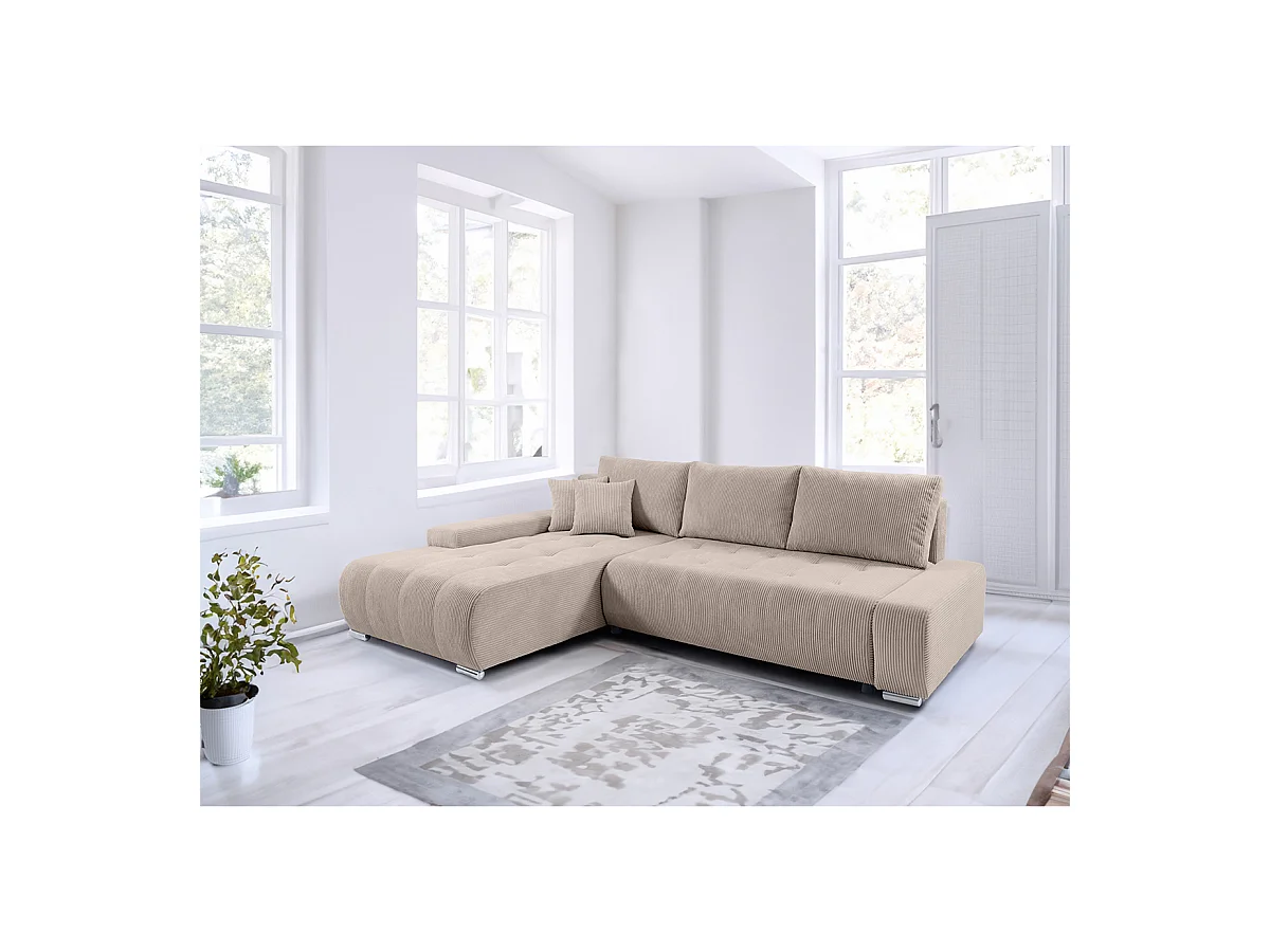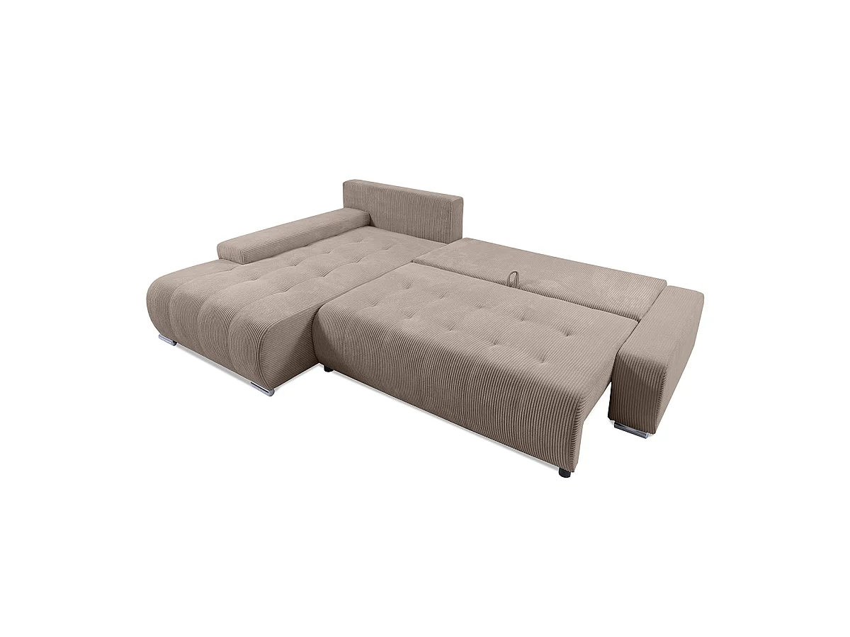 Canapé d'angle convertible gauche 4 places coffre Jonas velours côtelé Taupe