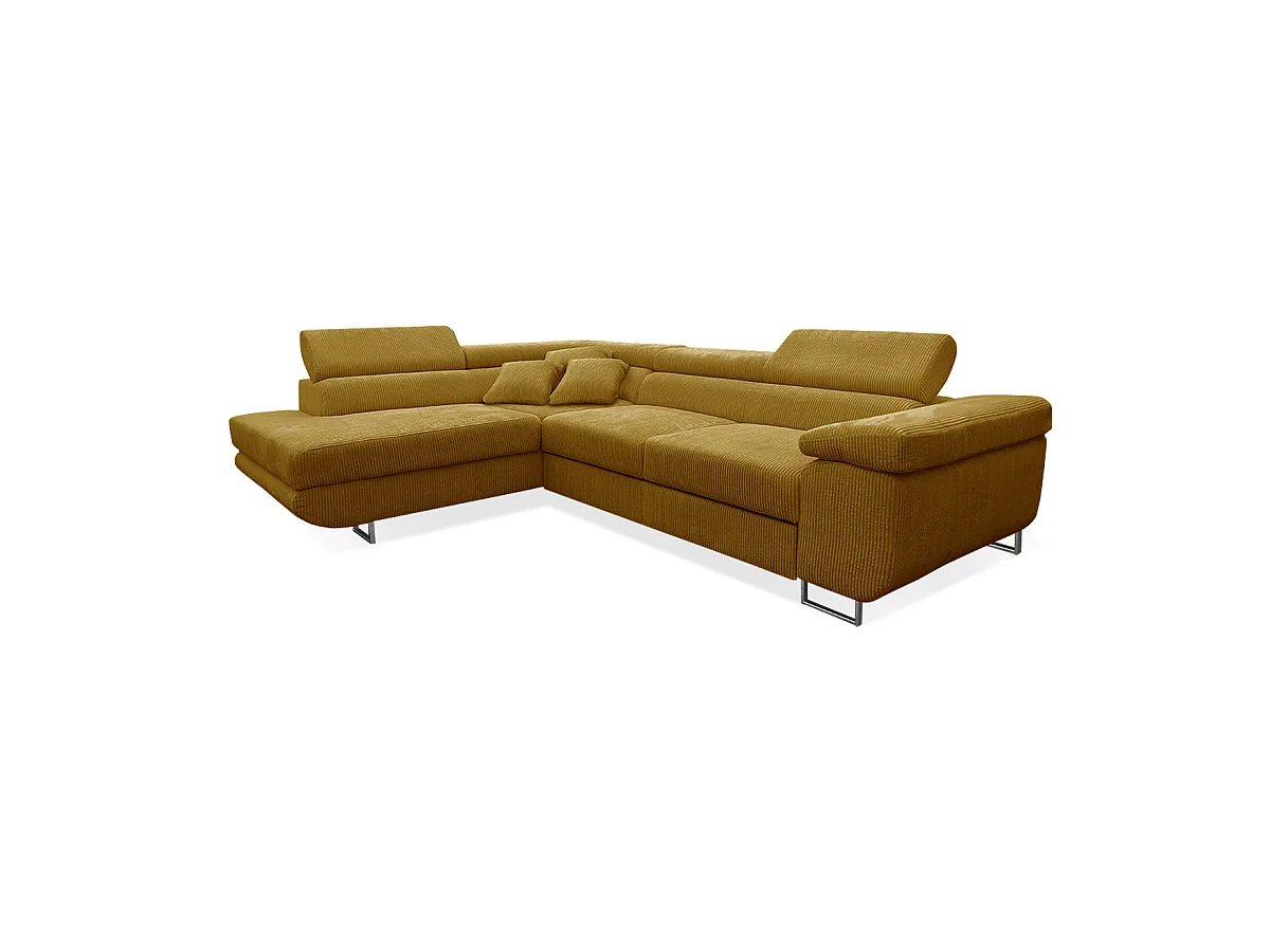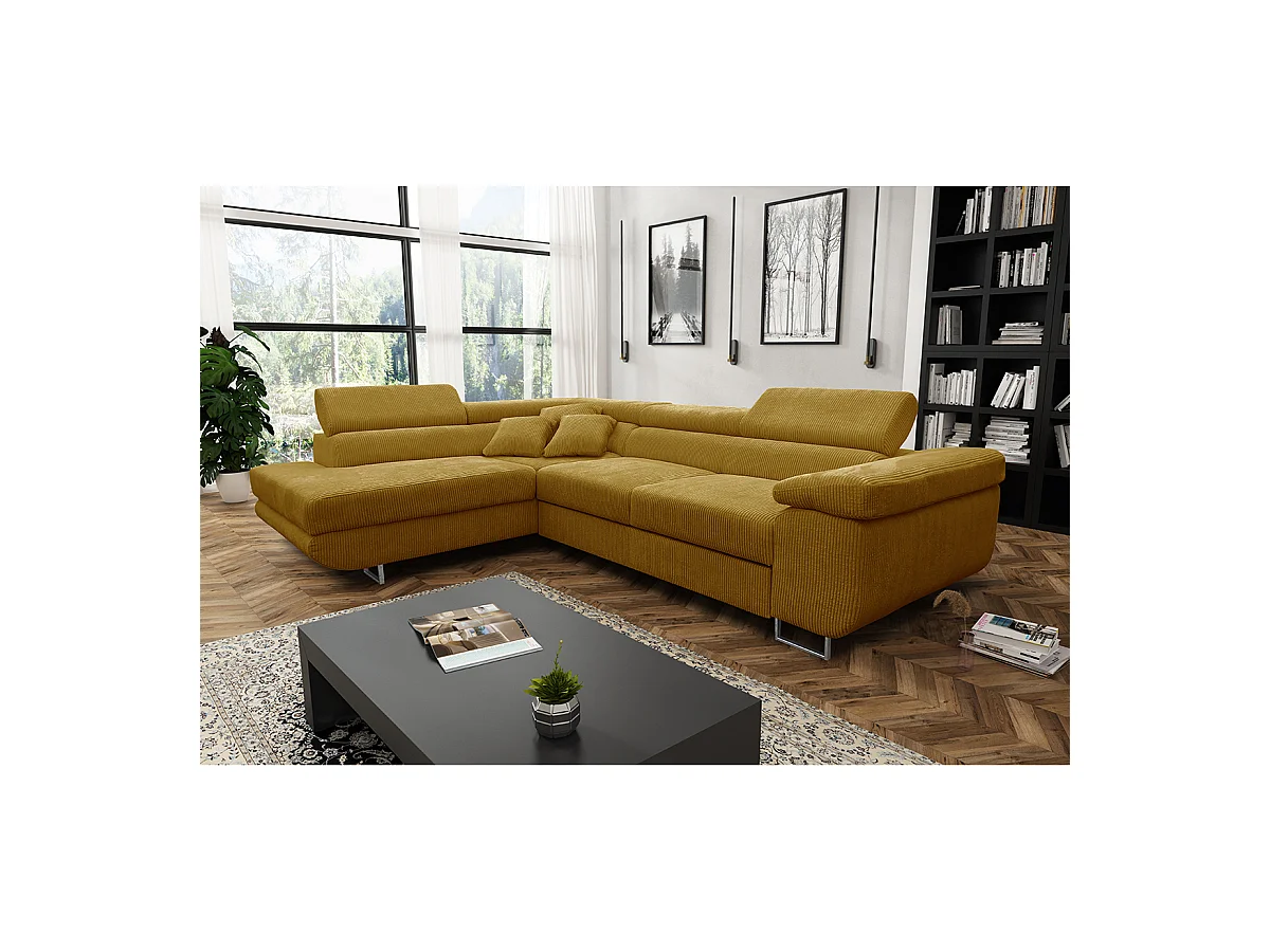 Canapé d'angle convertible gauche 4 places coffre Martin velours côtelé Jaune
