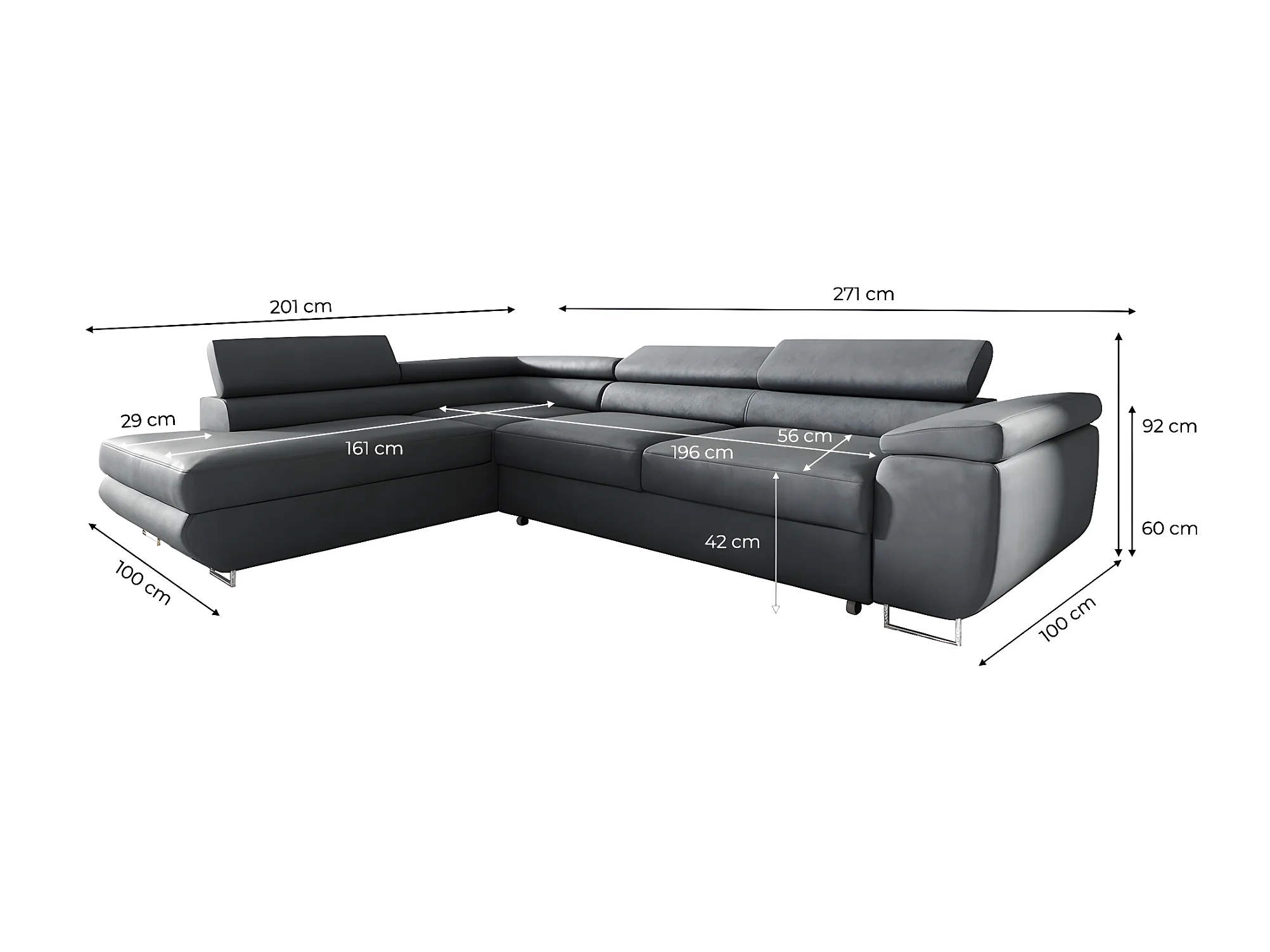 Canapé d'angle convertible gauche 4 places Lyam Gris foncé