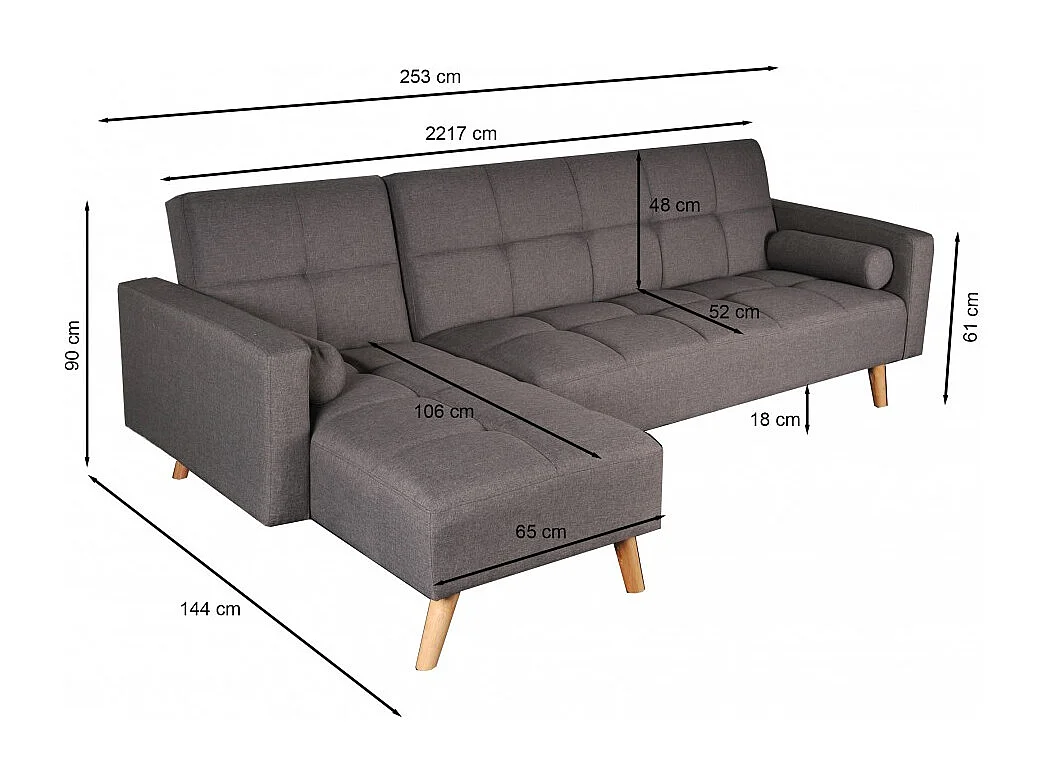 Canapé d'angle convertible gauche ASGARD / GRIS