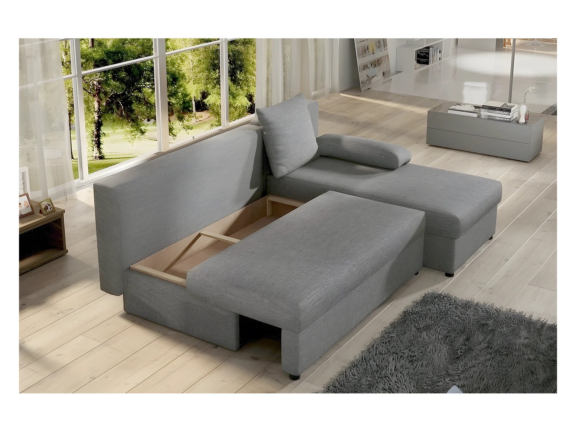 Canapé d'angle convertible - GILO - en tissu luxe 3/4 places, gris, angle droit (vu de face)
