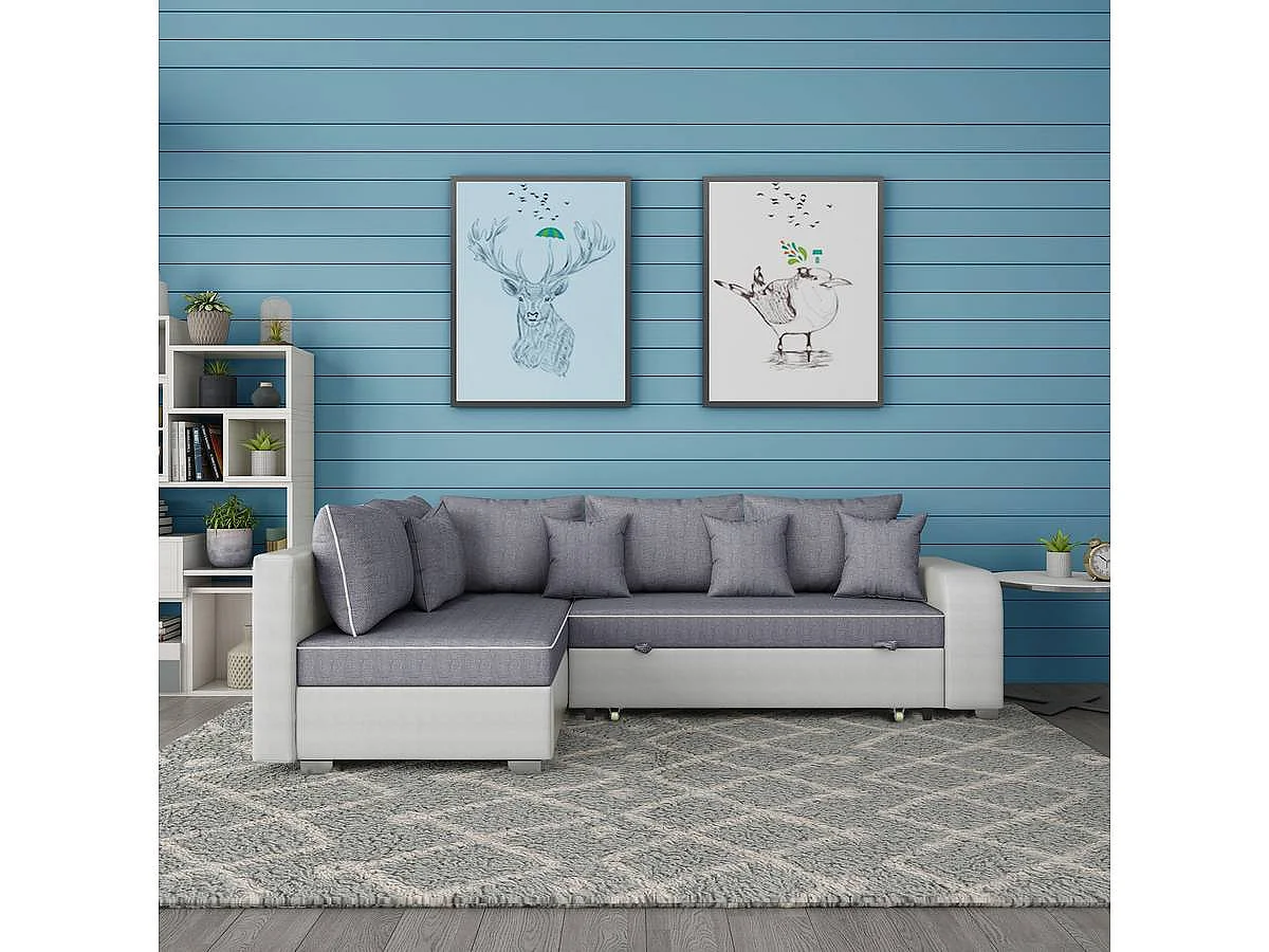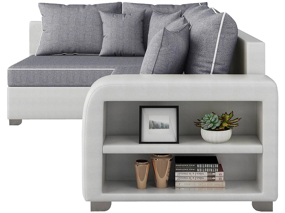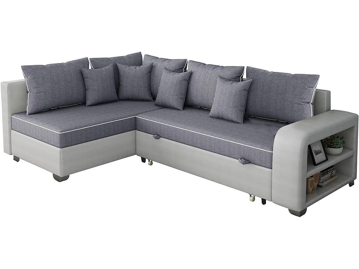 Canapé d'angle convertible "Gregory" - Avec étagères - 4 Places - Gris/Blanc - Angle gauche