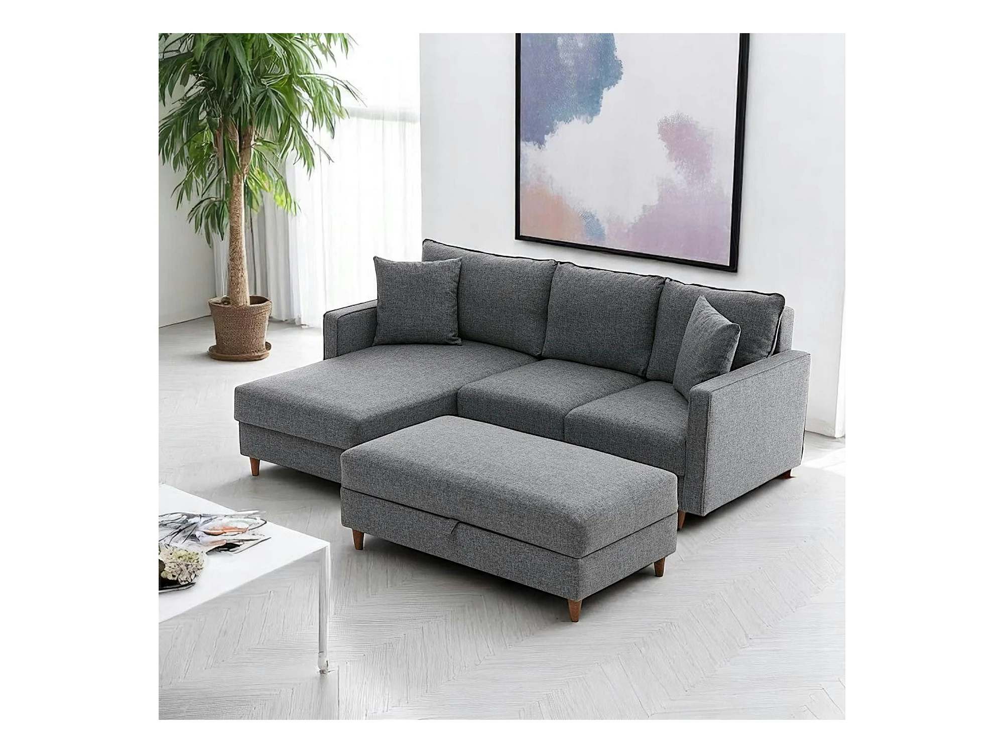 Canapé d'angle convertible gris - côté gauche COMO