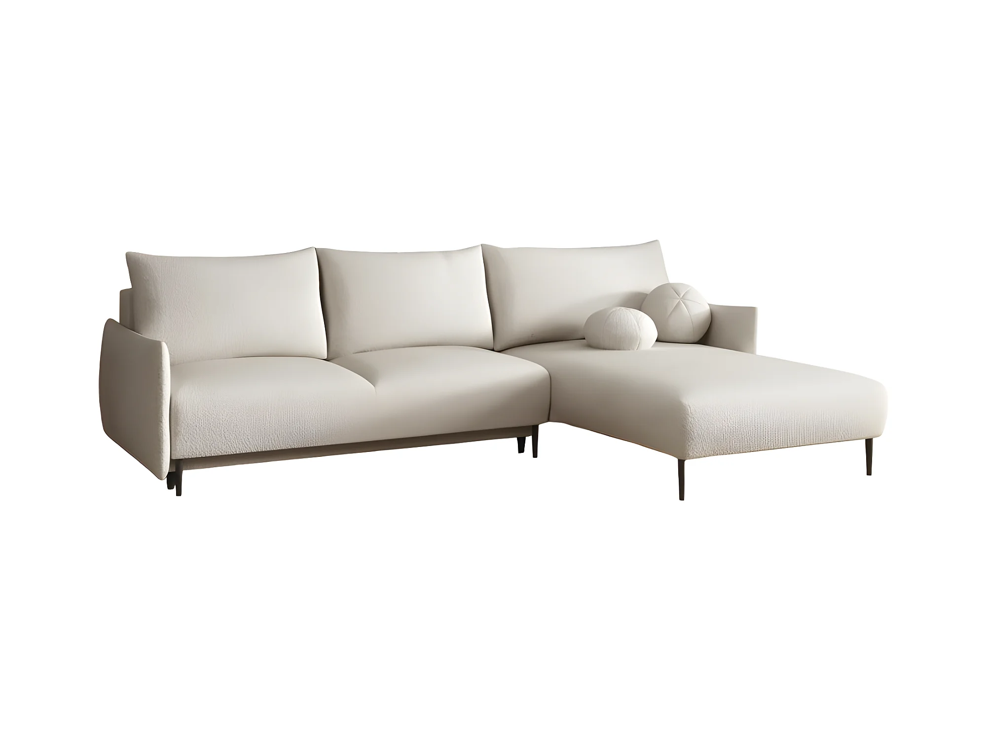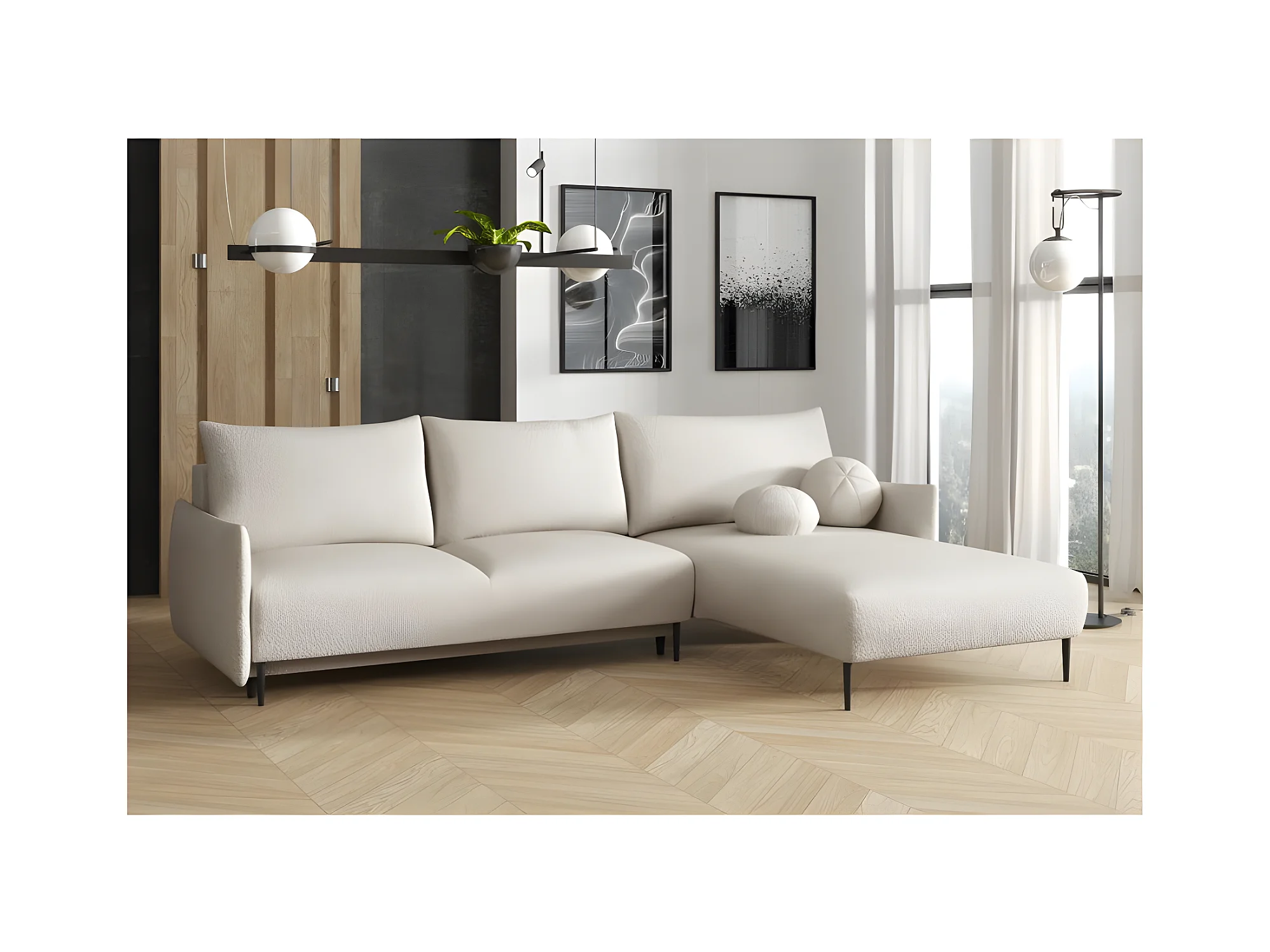Canapé d'angle convertible LAMBIA en tissu bouclette blanc cassé
