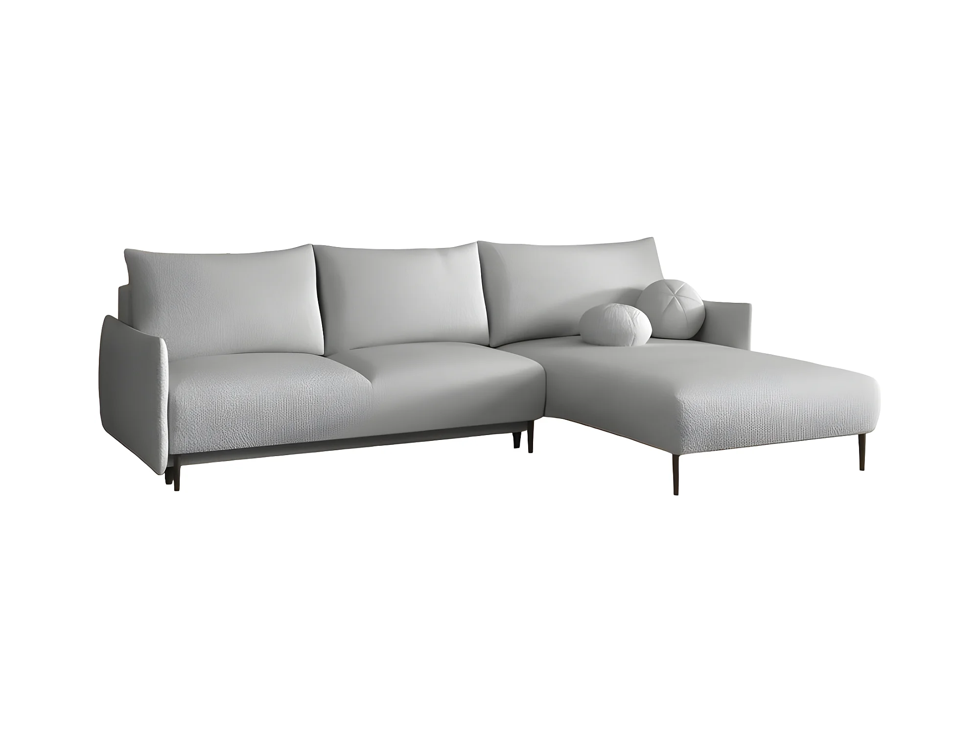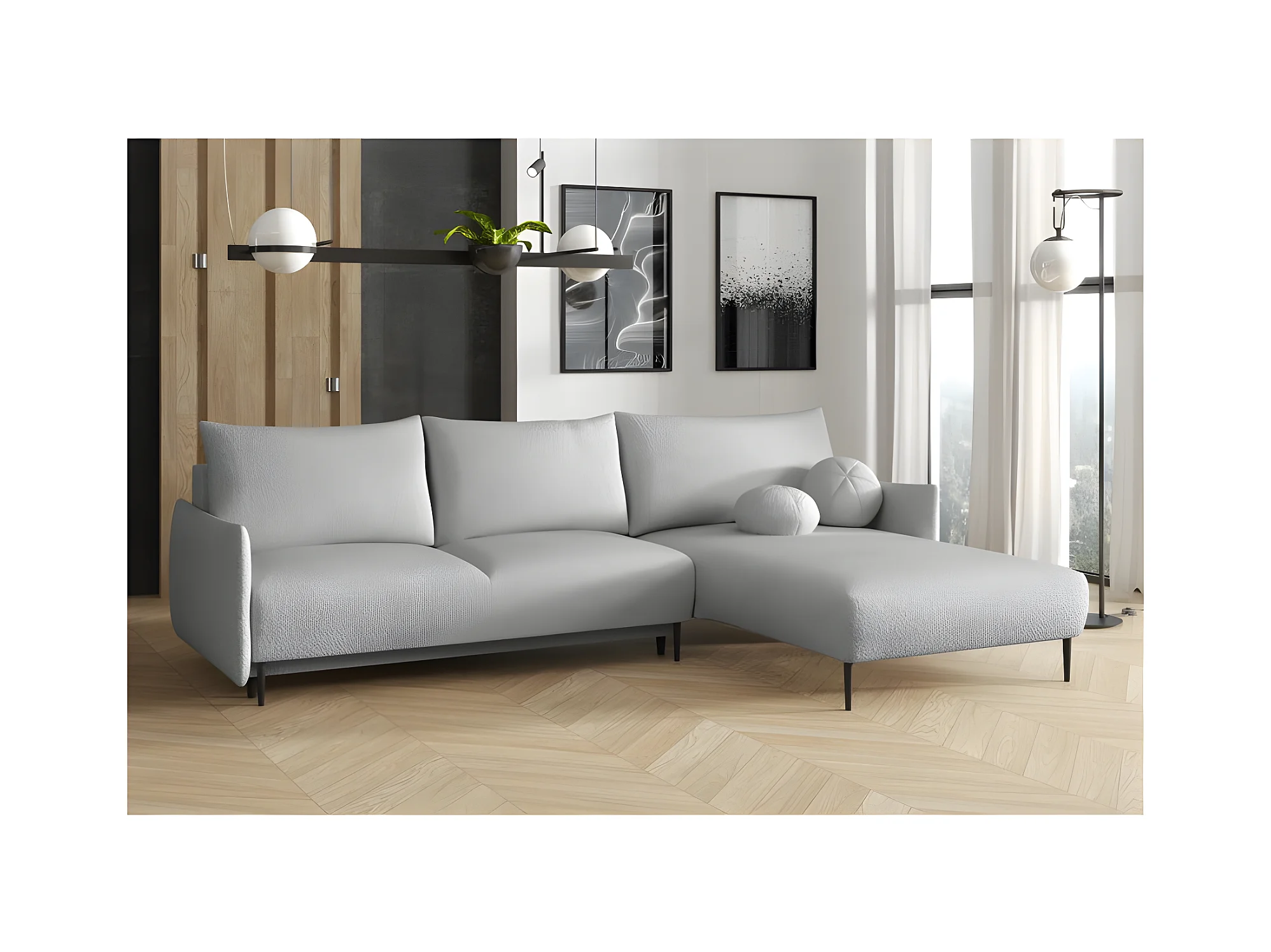 Canapé d'angle convertible LAMBIA en tissu bouclette gris clair