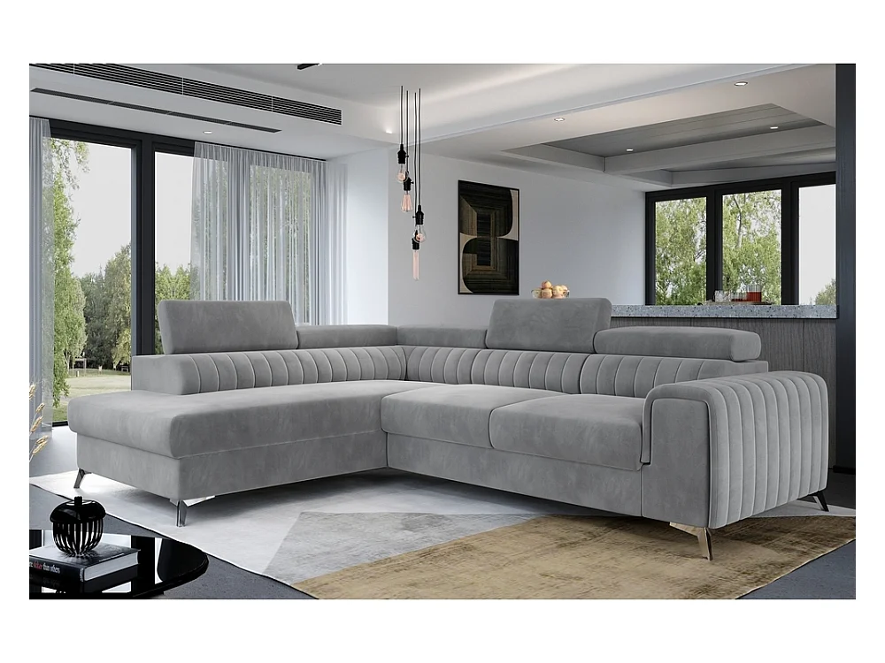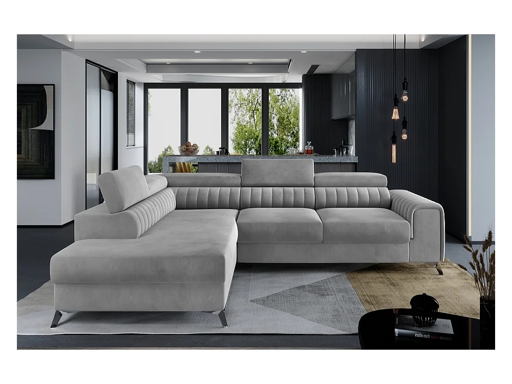 Canapé d'angle convertible en tissu Luxe gris avec rangement - LARRY VELOURS