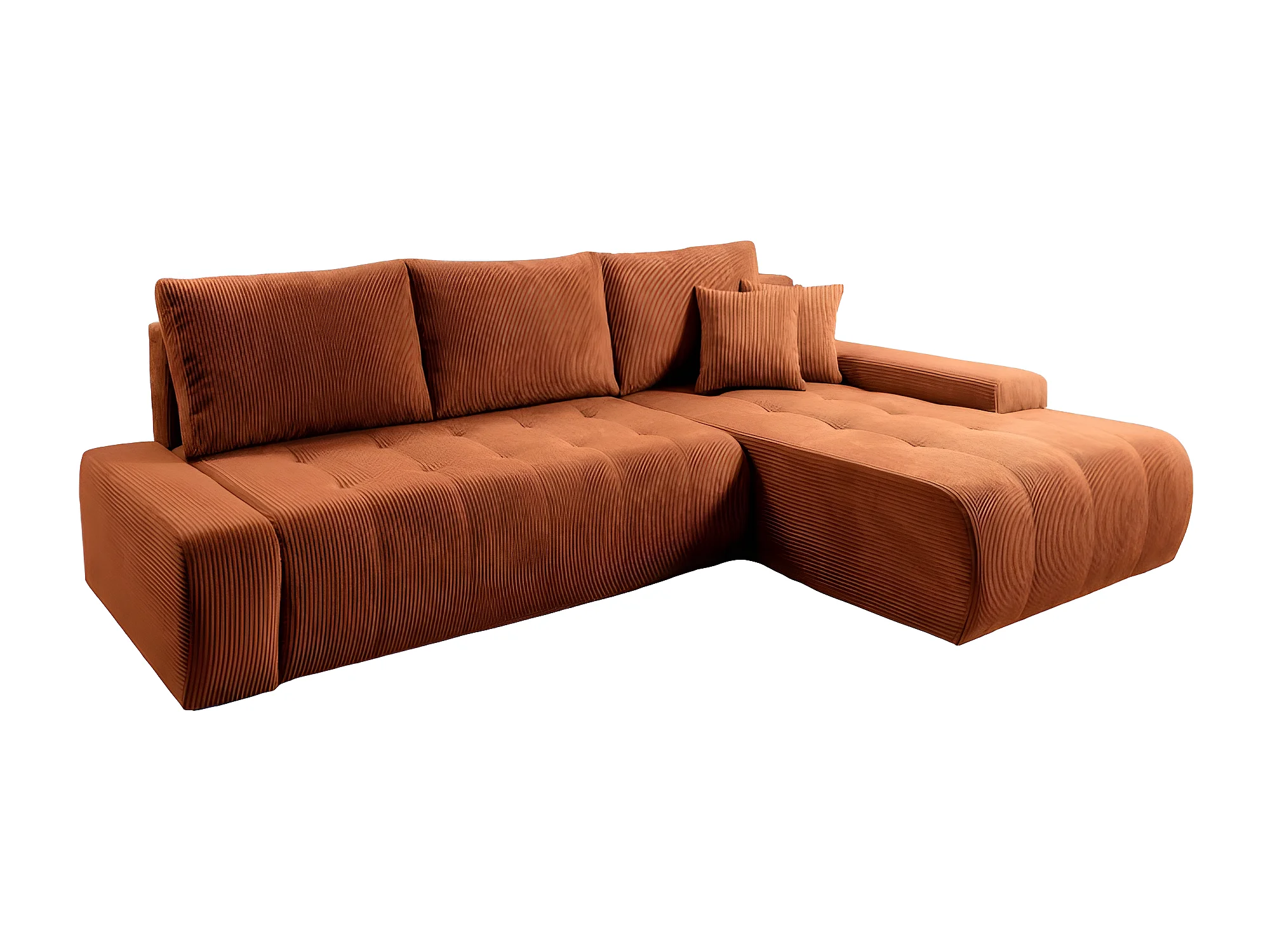 Canapé d'angle convertible MELOTI en velours côtelé terracotta