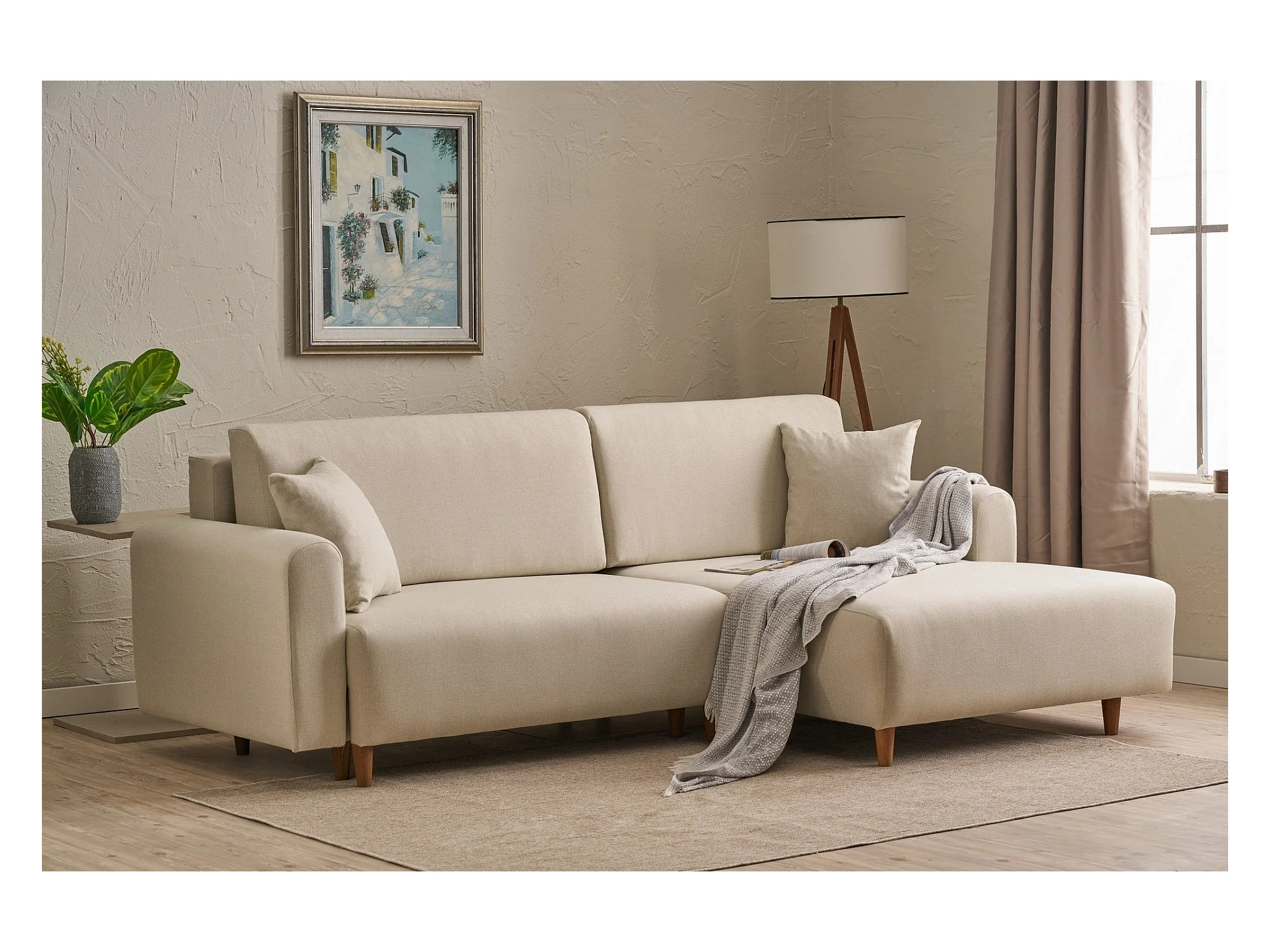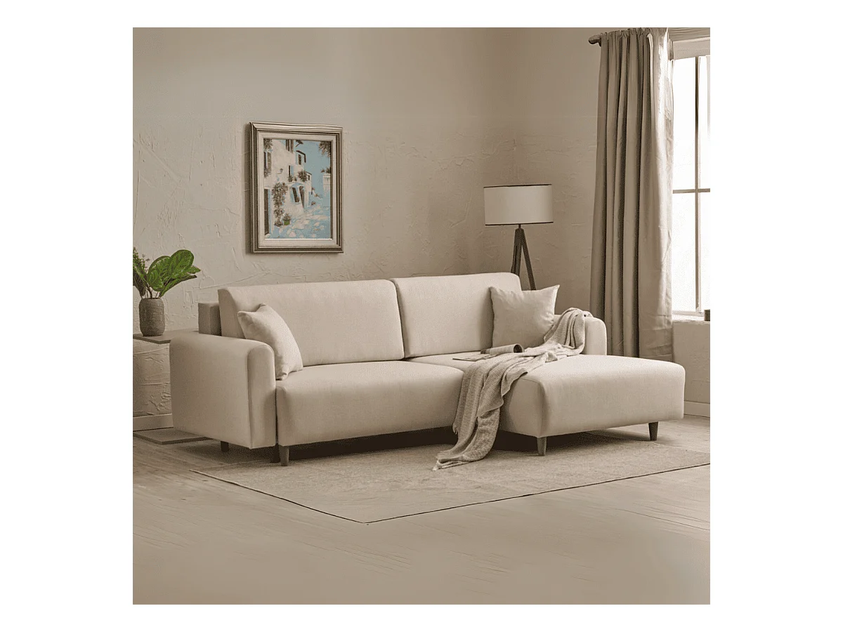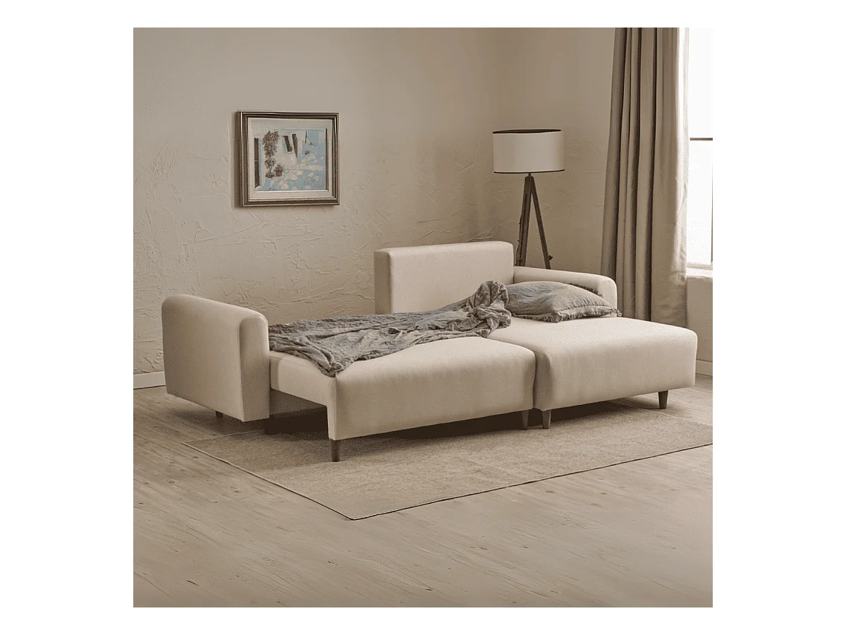 Canapé d'angle convertible méridienne à droite en tissu L246 cm - MANE