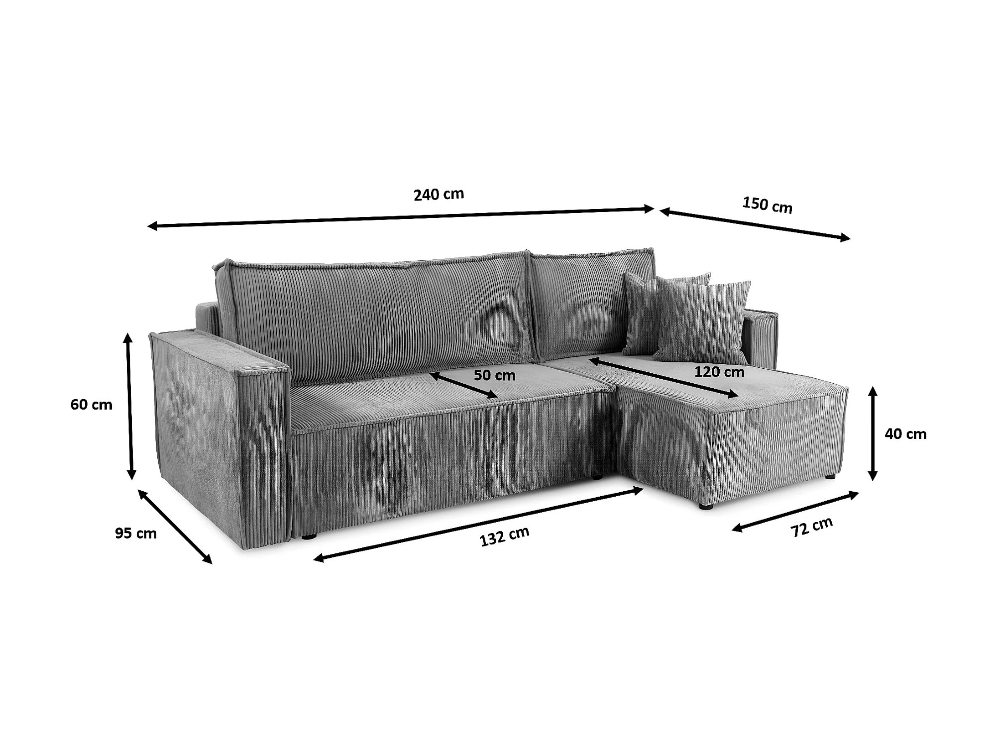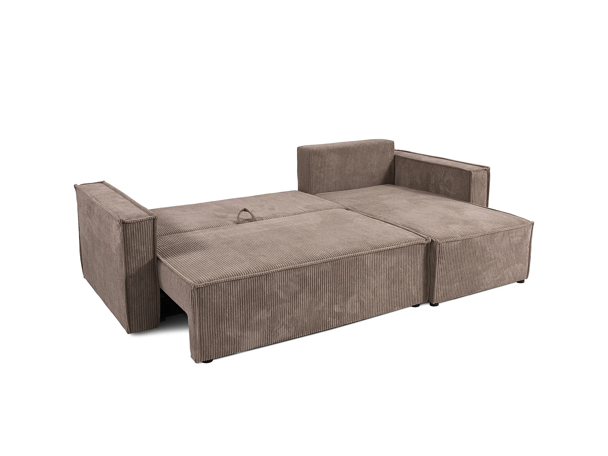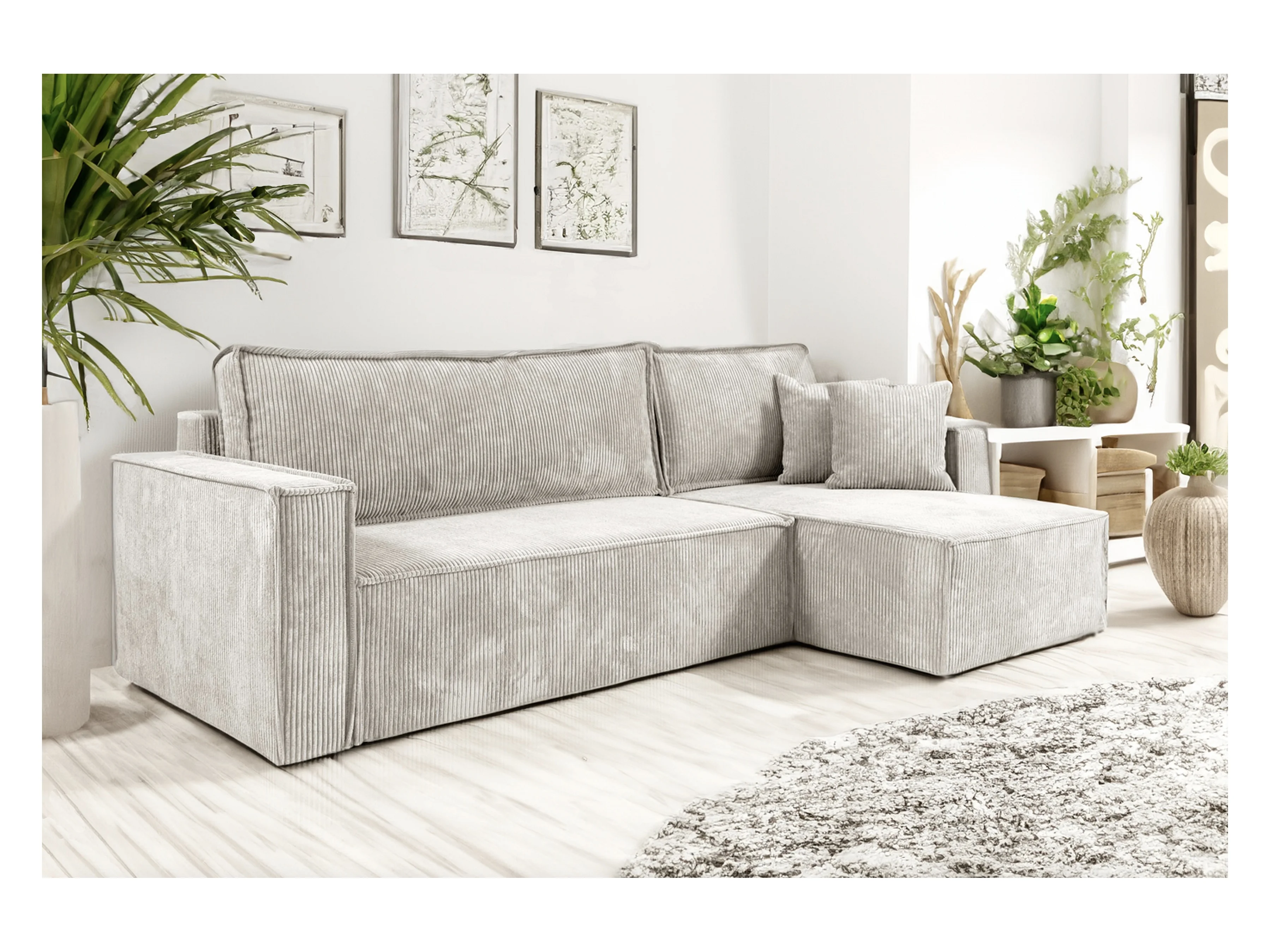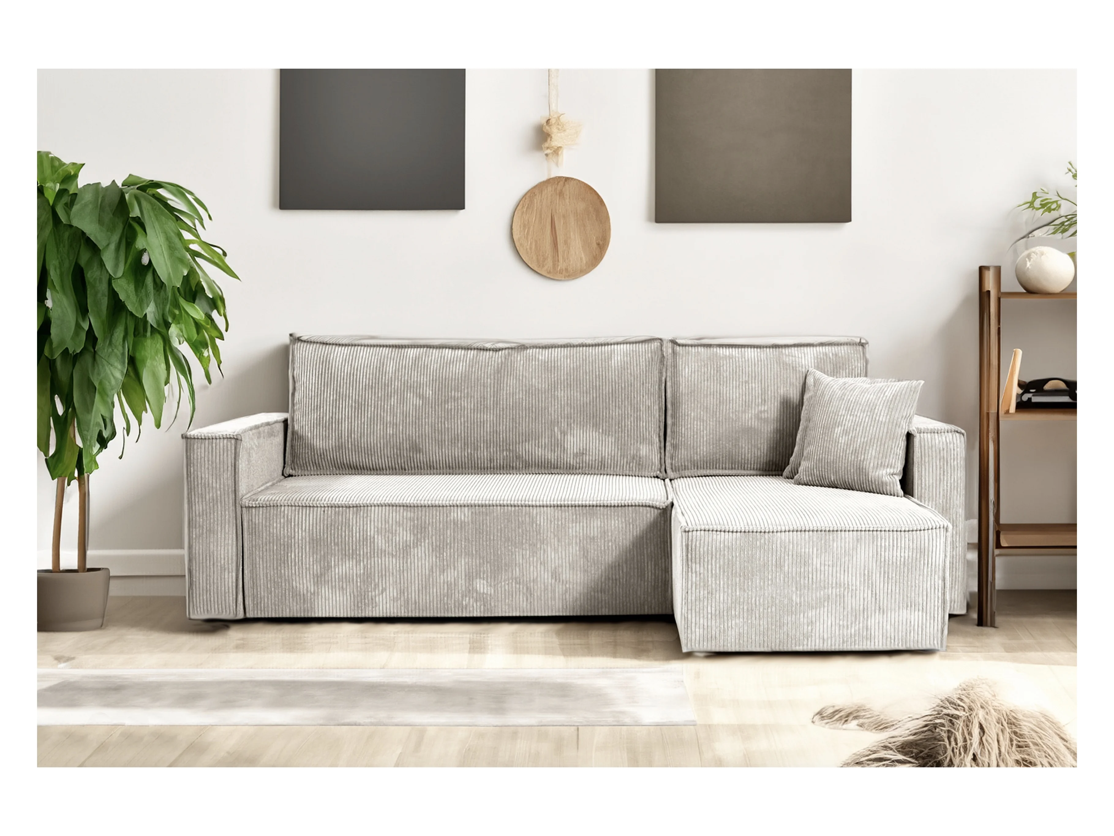 Canapé d'angle Convertible Nero en Velours côtelé avec lit et Coffre de Rangement (Beige)