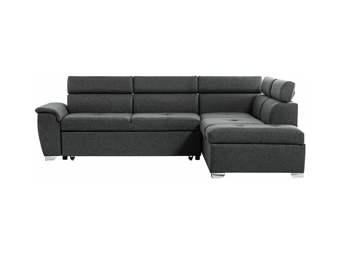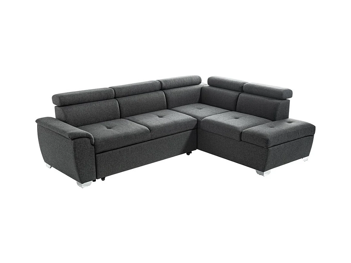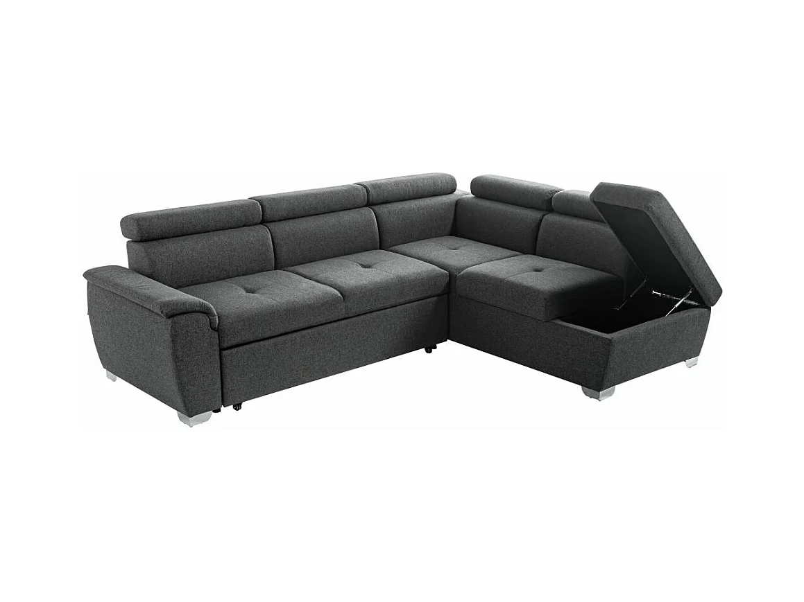 Canapé d'angle droit convertible Paola 4 places avec coffre en tissu - Gris anthracite - L261 x P198 x H80cm - Loungitude