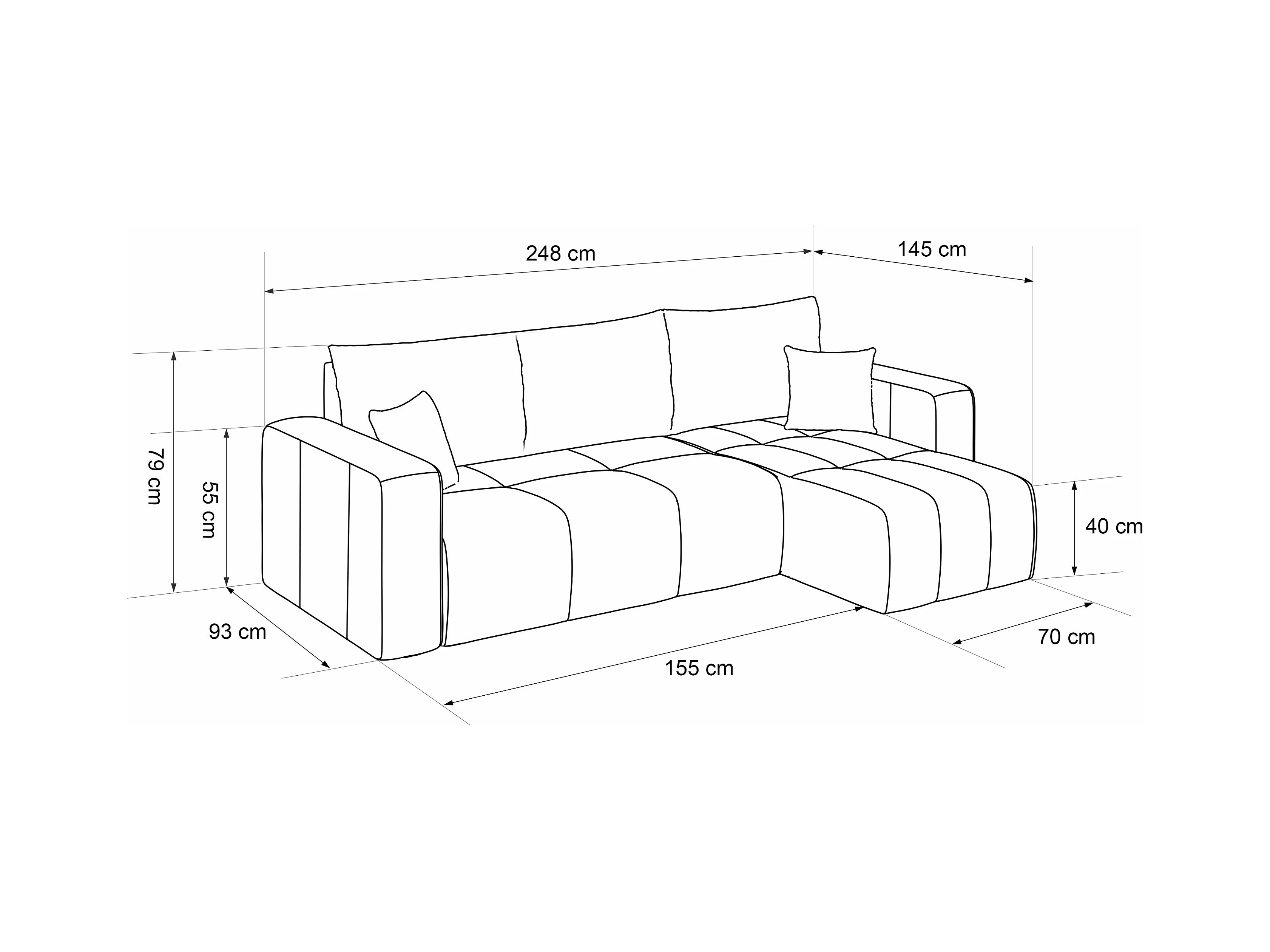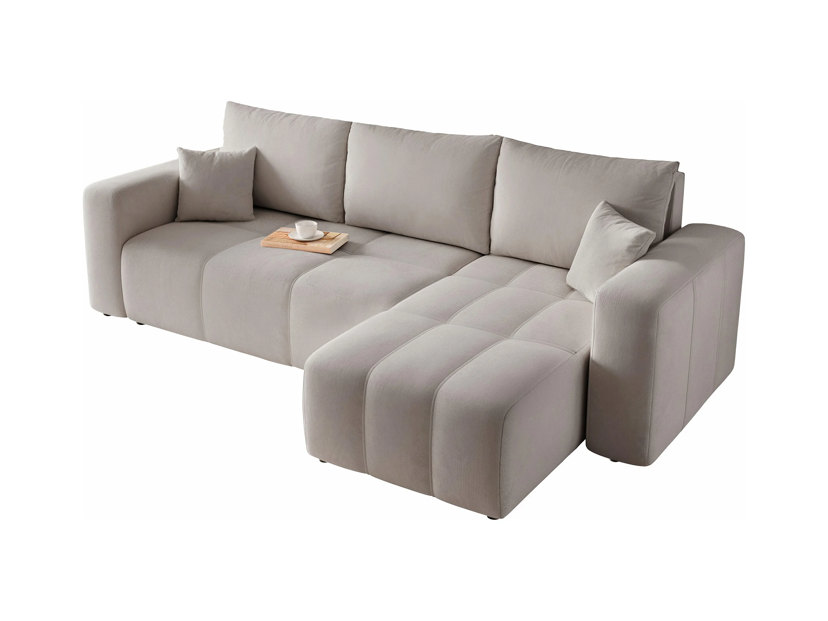 Canapé d'angle Convertible Pedro 3-Places avec Espace de Rangement en tissu Gris