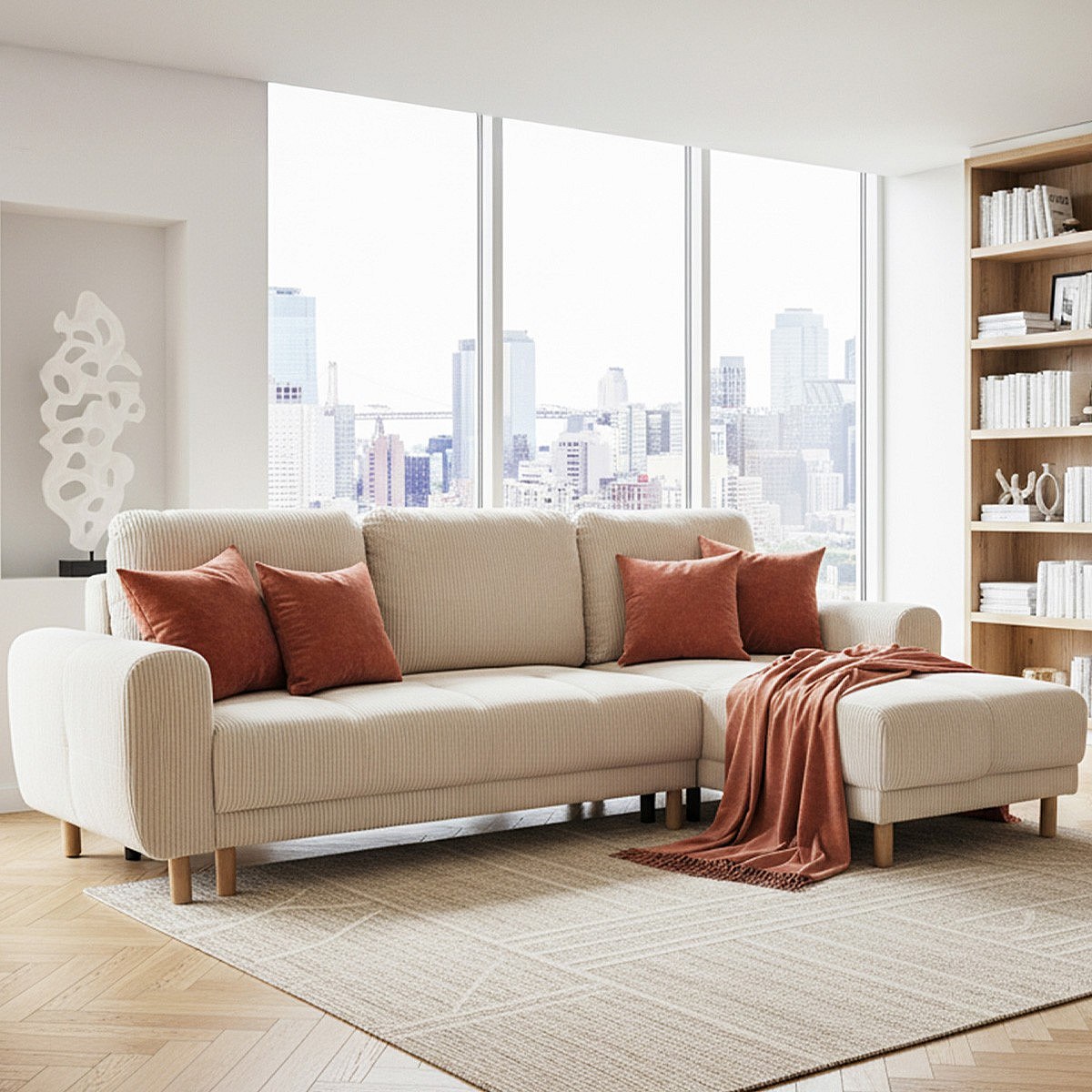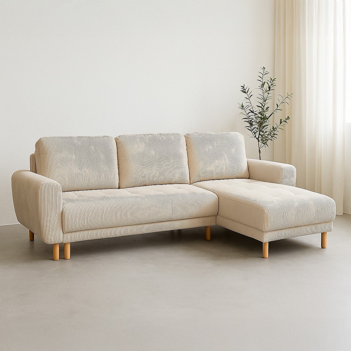 Canapé d'angle convertible réversible 3/4 places en velours côtelé beige - Alva