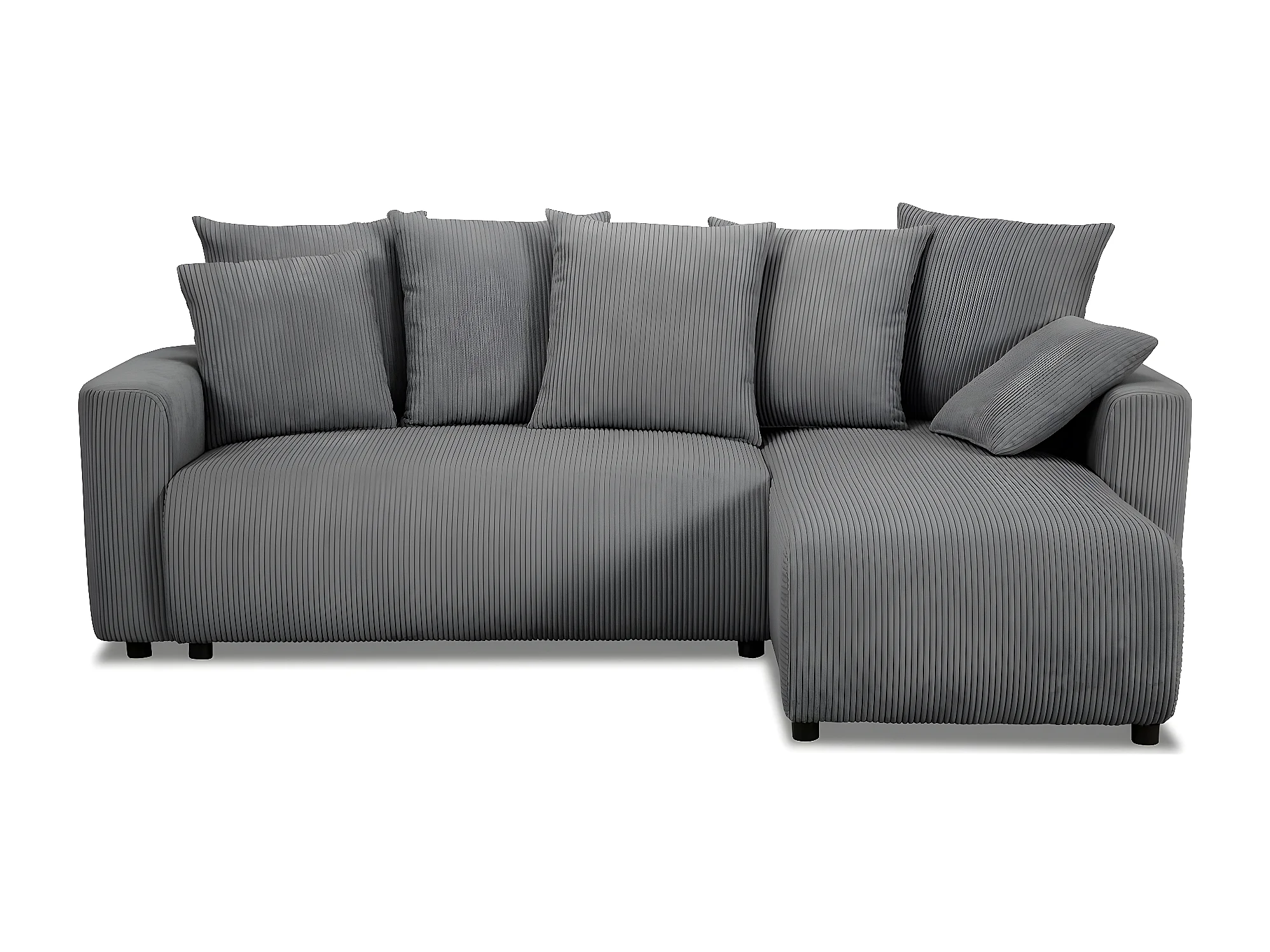 Canapé d'angle convertible réversible 3/4 places en velours côtelé gris anthracite avec coffre de rangement - Uma