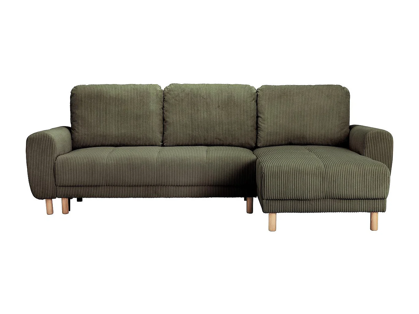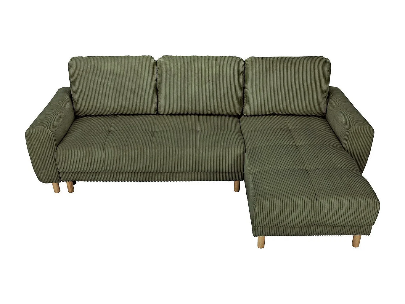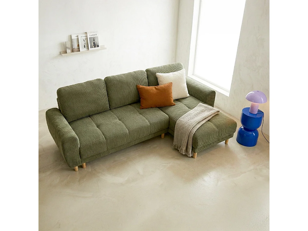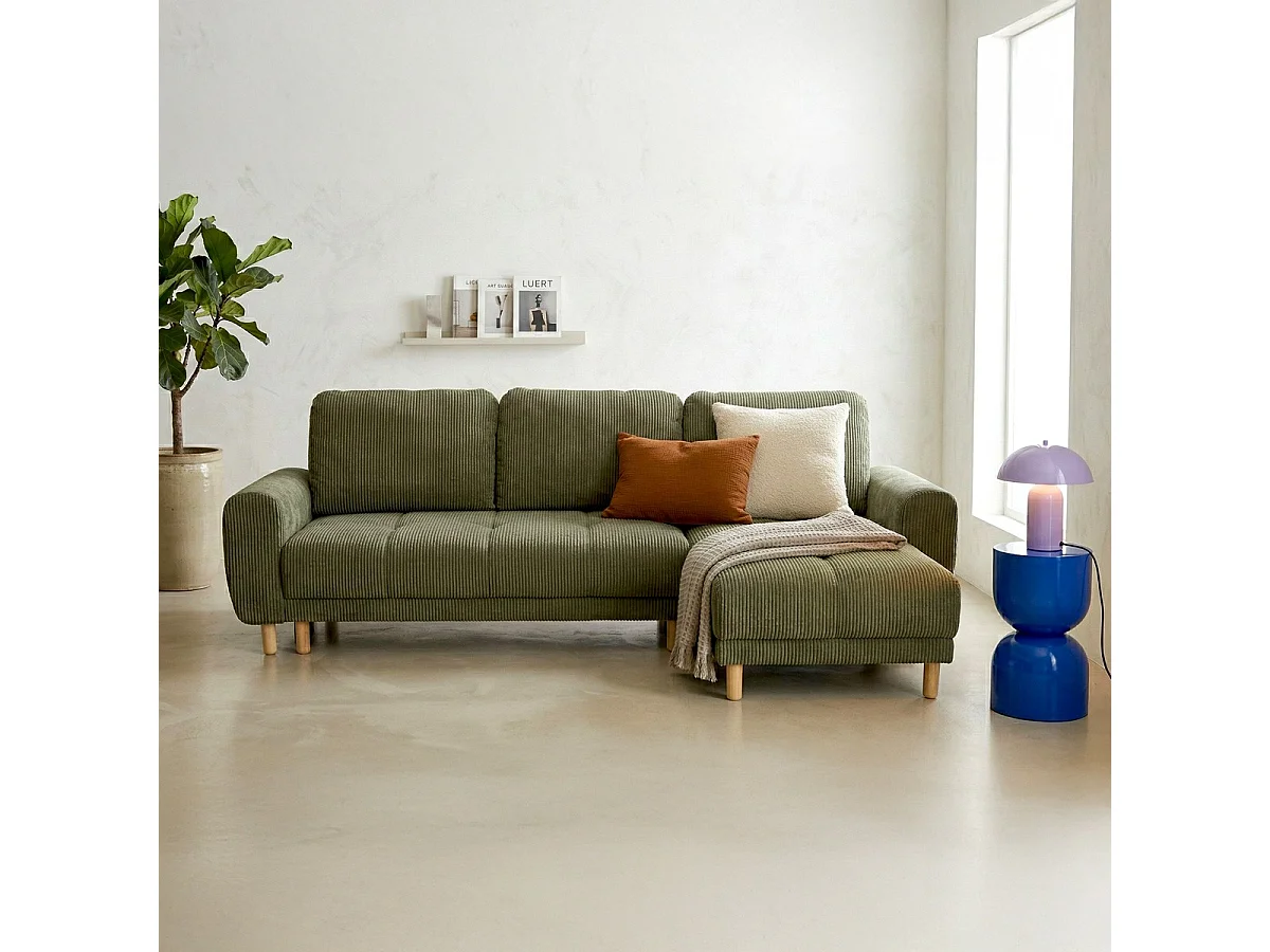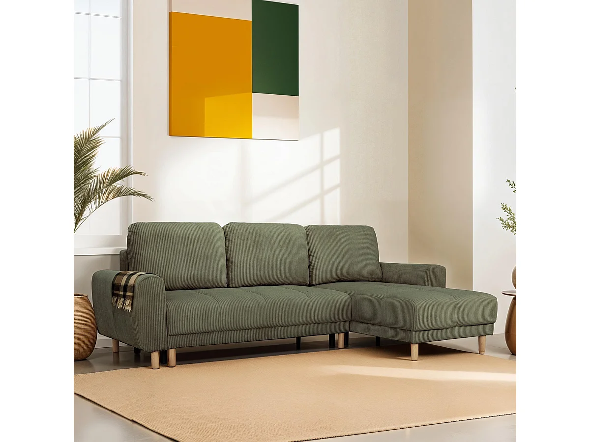 Canapé d'angle convertible réversible 3/4 places en velours côtelé vert kaki - Alva