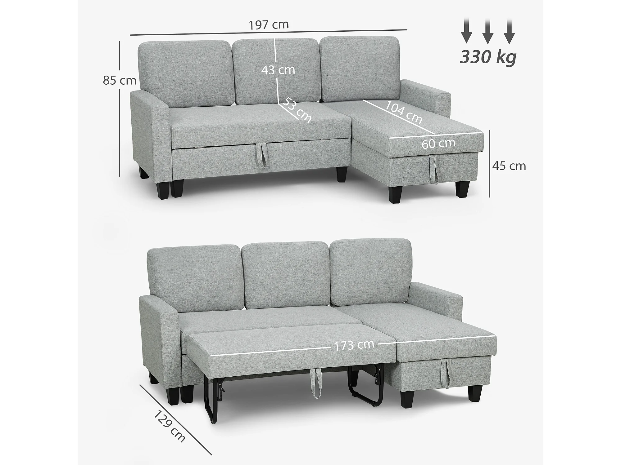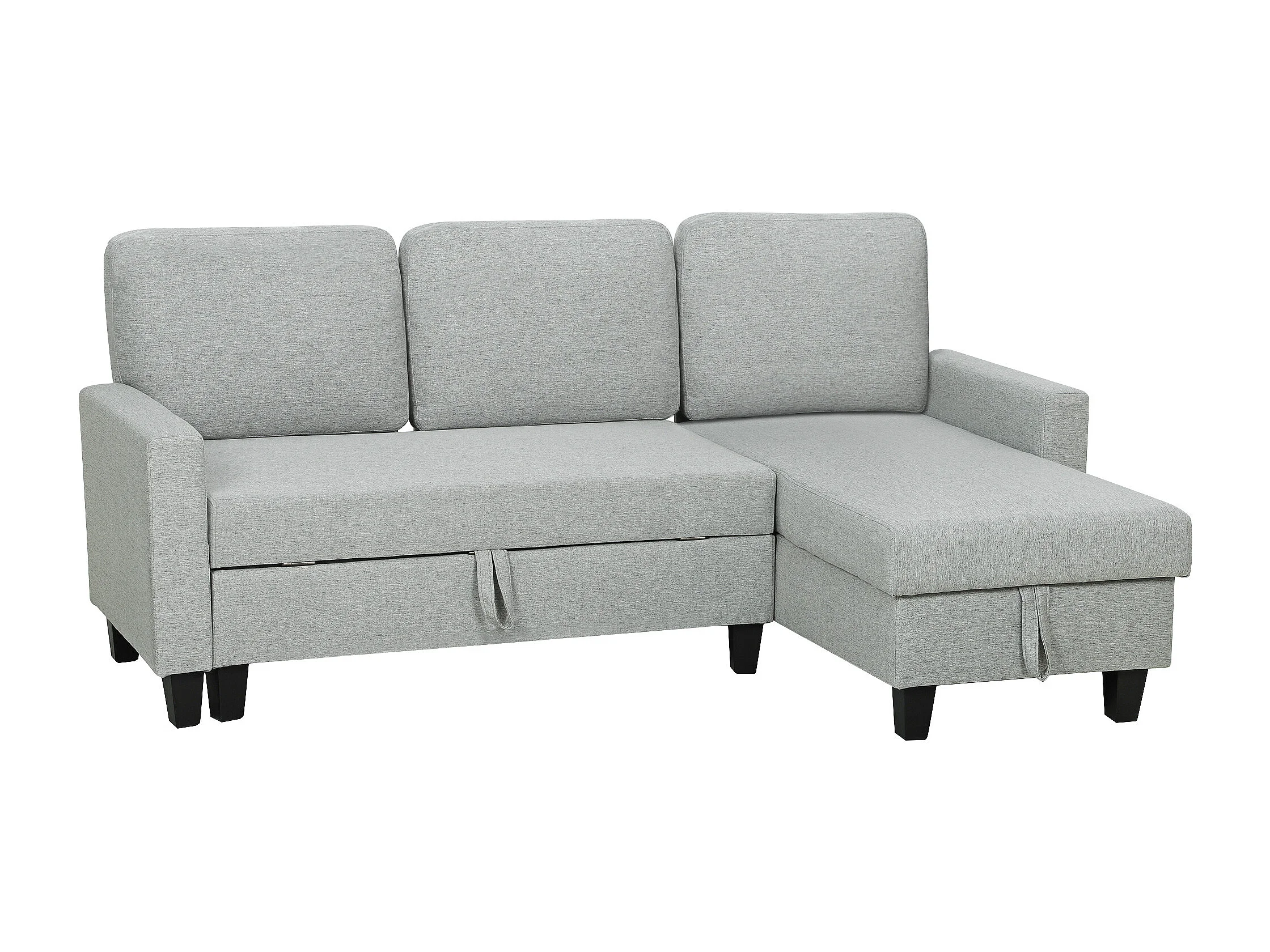 Canapé d'angle convertible réversible 3 places coffre de rangement intégré tissu toucher lin gris clair