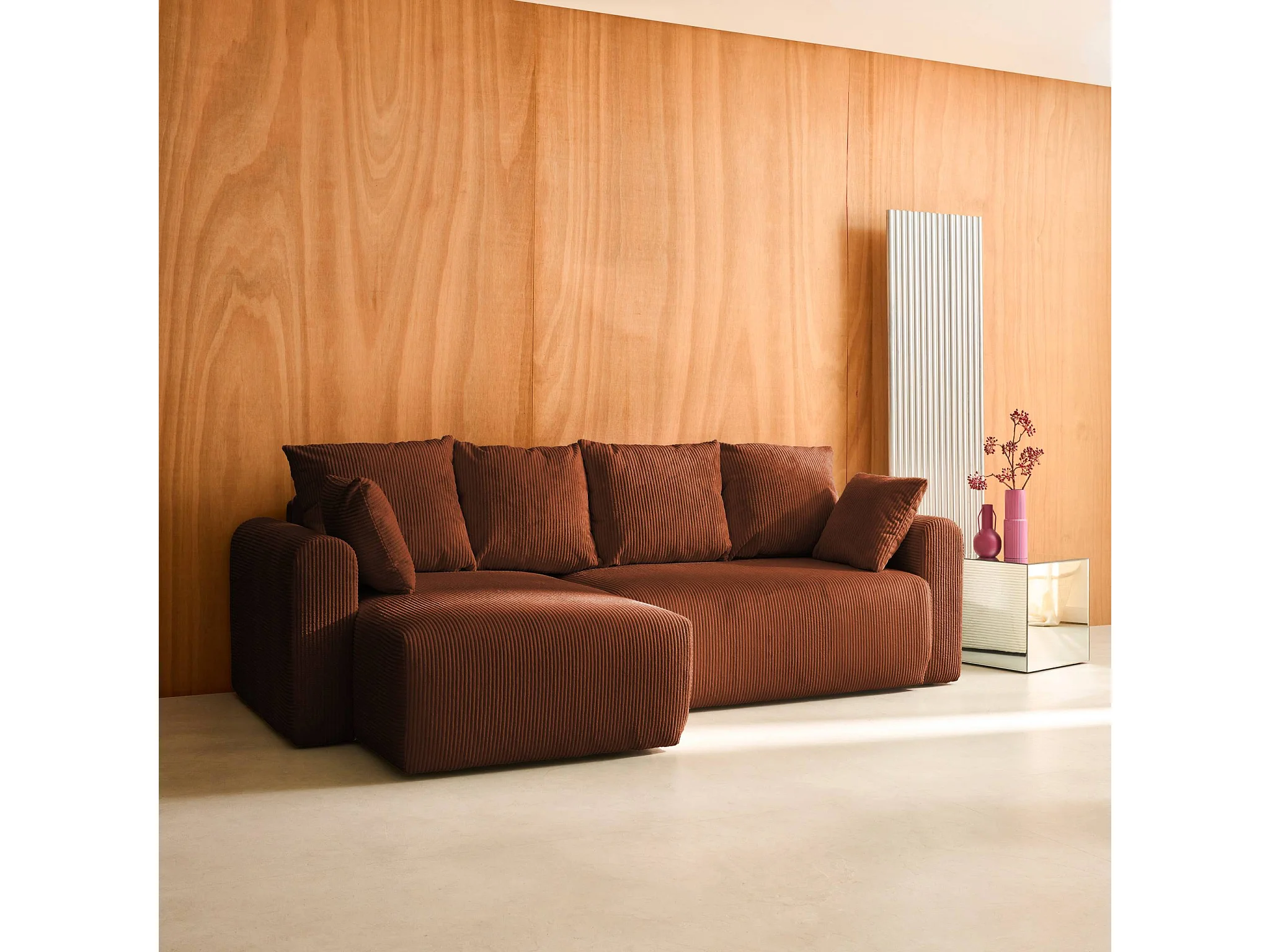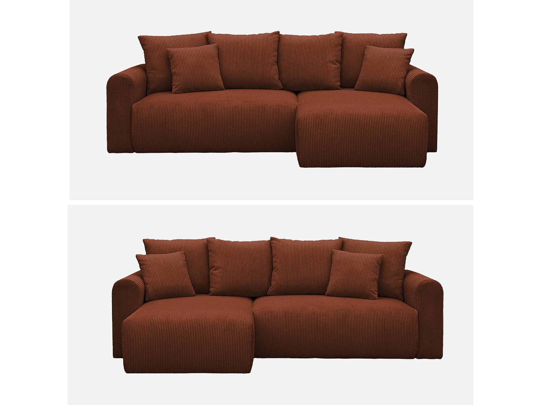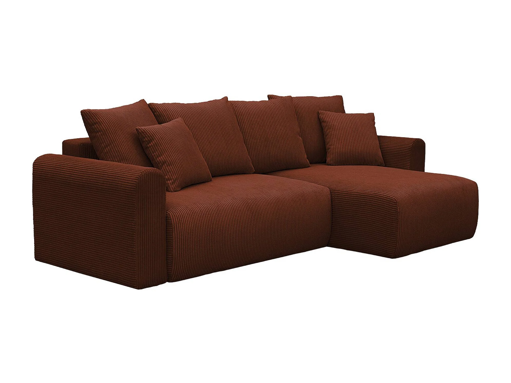 Canapé d'angle convertible réversible 3 places velours côtelé brique avec coffre de rangement - Almo