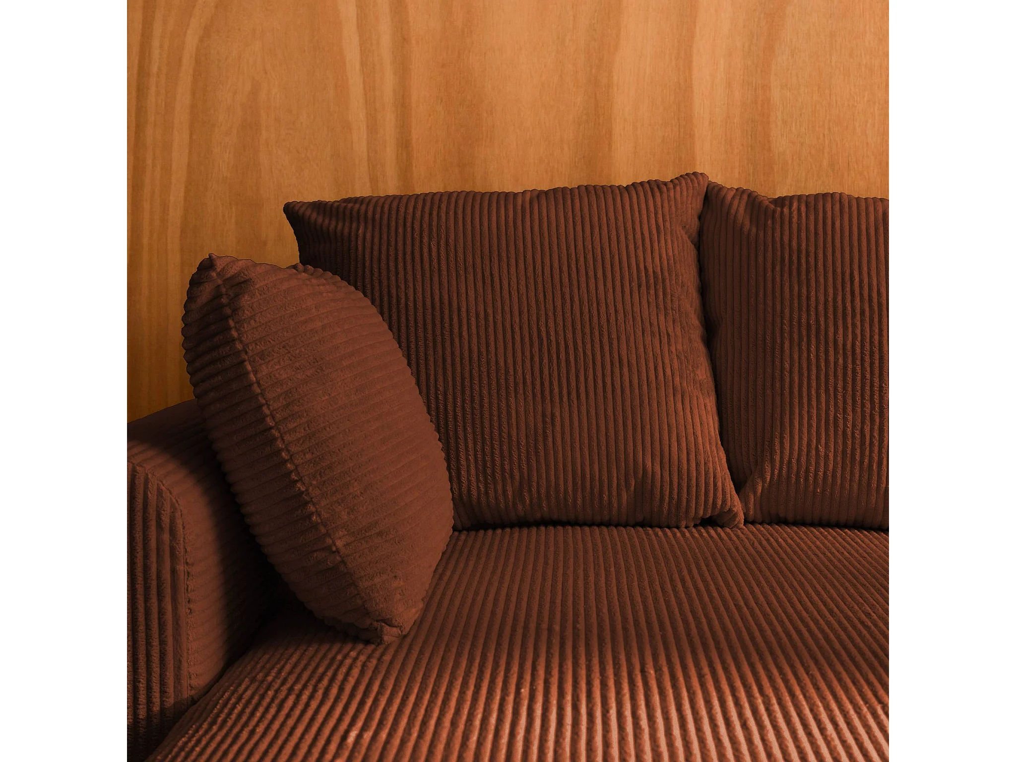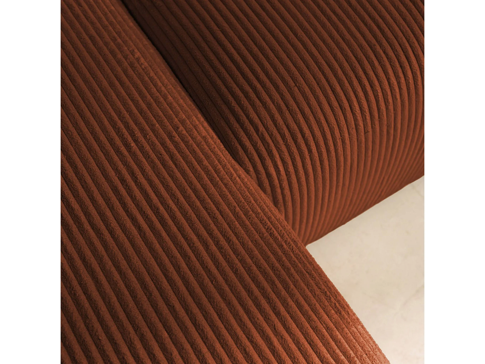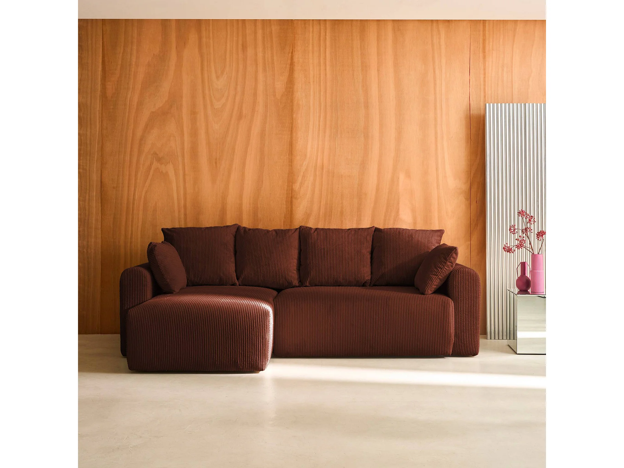 Canapé d'angle convertible réversible 3 places velours côtelé brique avec coffre de rangement - Almo