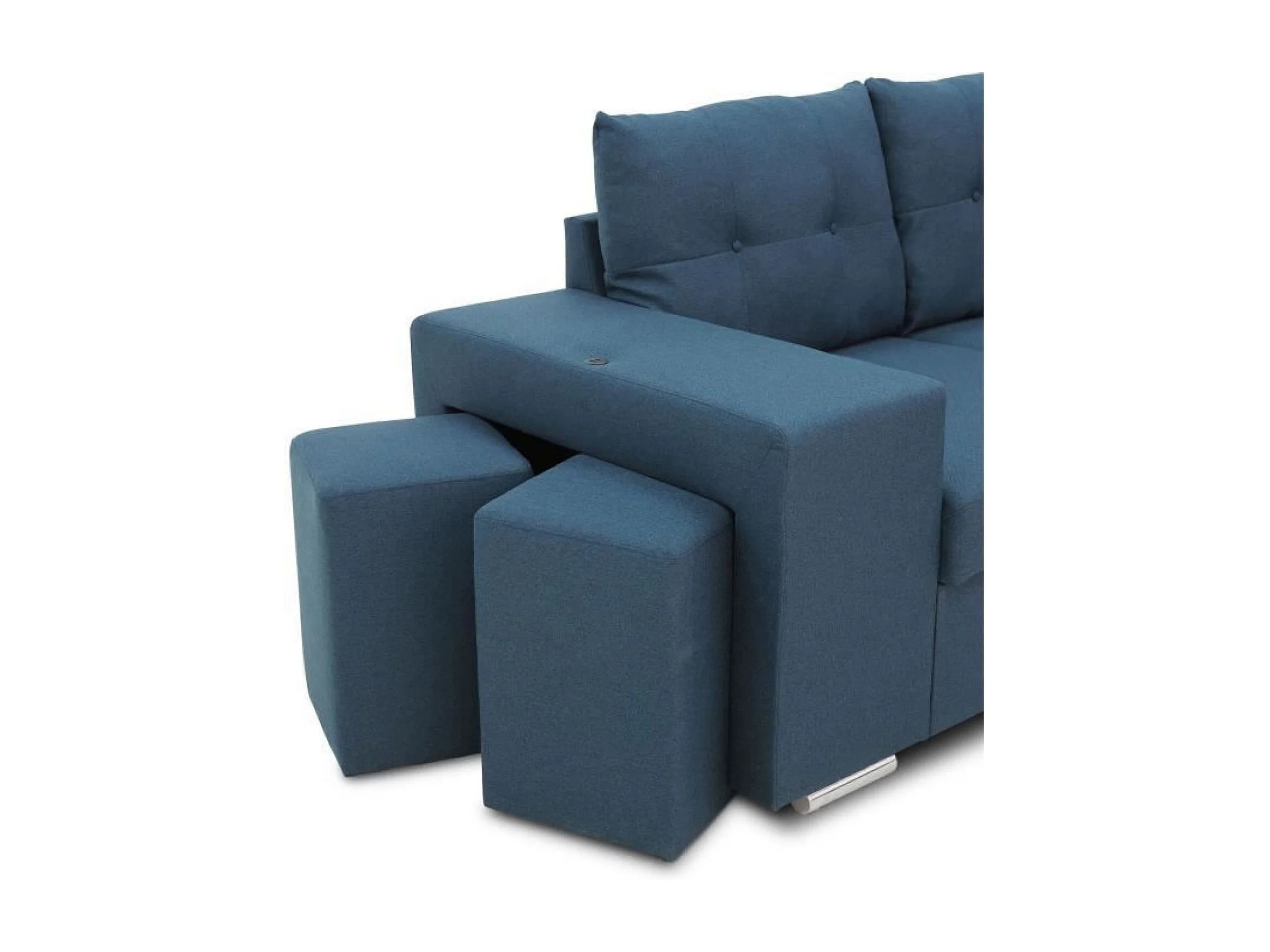 Canapé d'angle convertible réversible 4-5 places tissu bleu à coffre de rangement 245 x 205 x Hauteur 93 cm