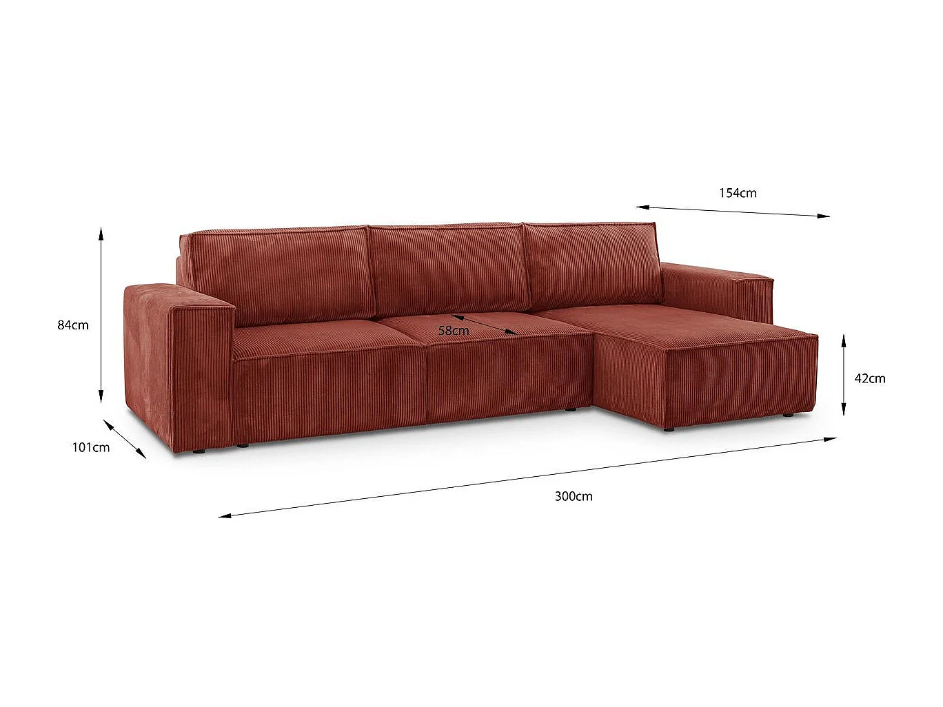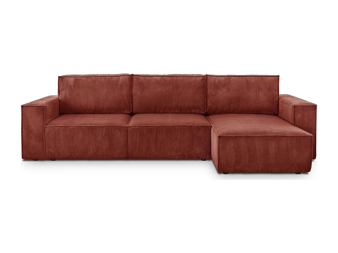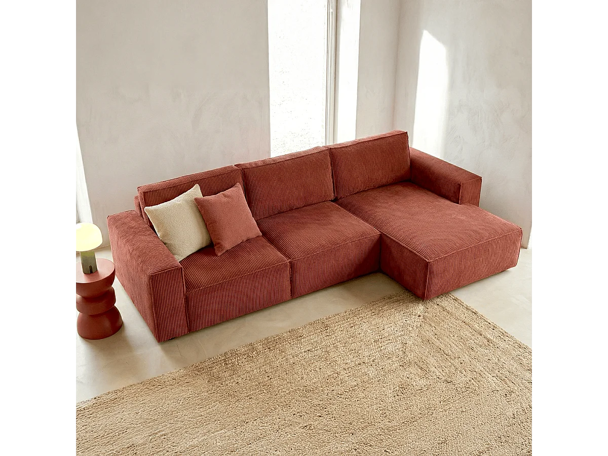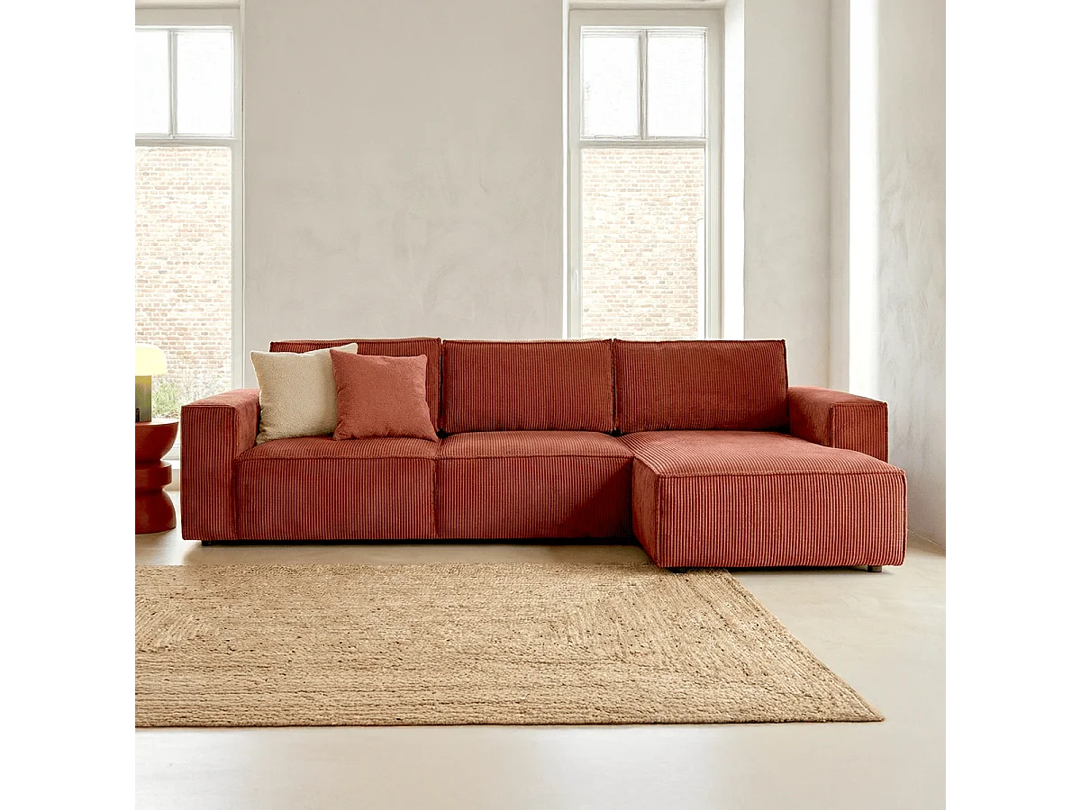 Canapé d'angle convertible réversible 5 places avec coffre de rangement en velours côtelé rouille - Harper