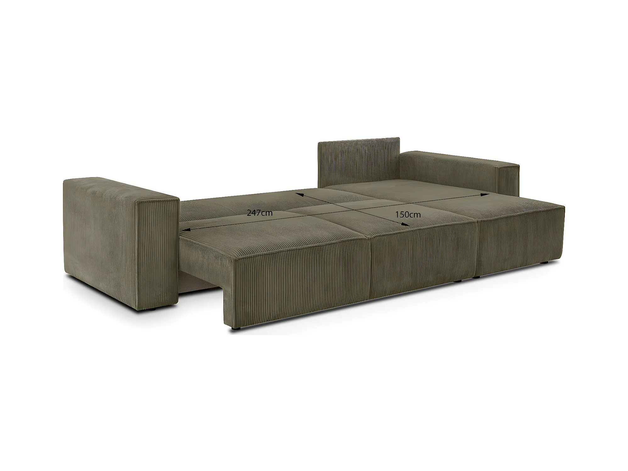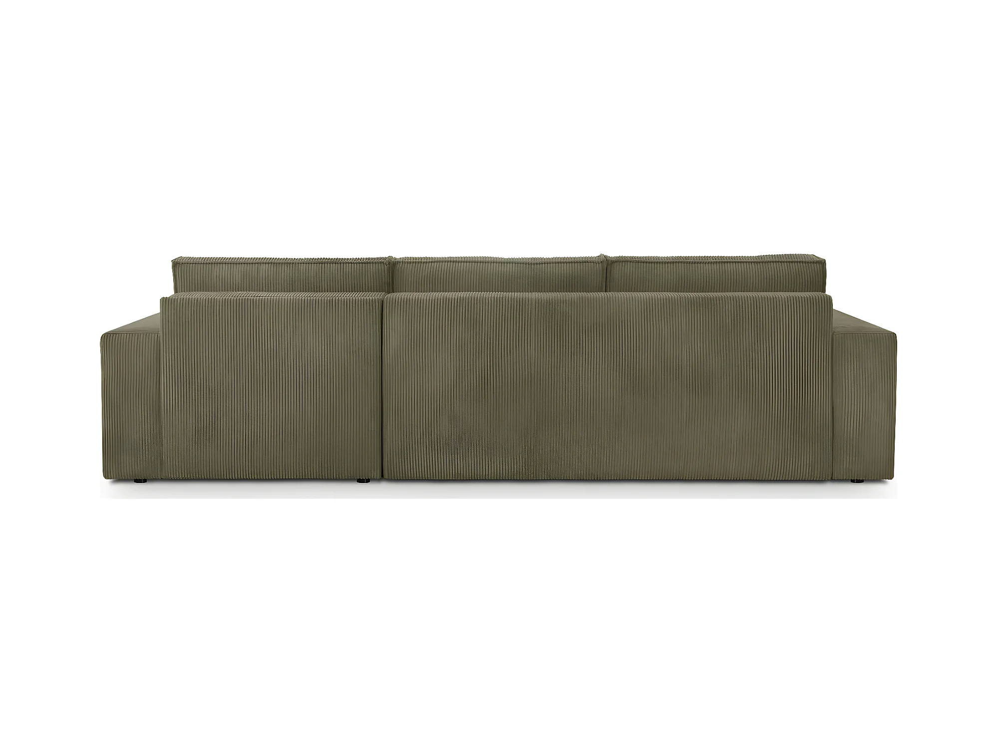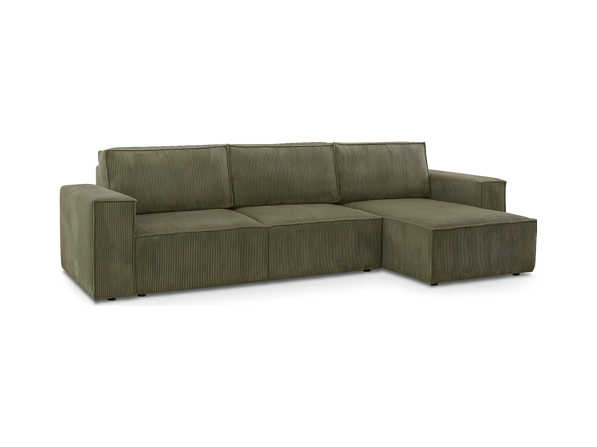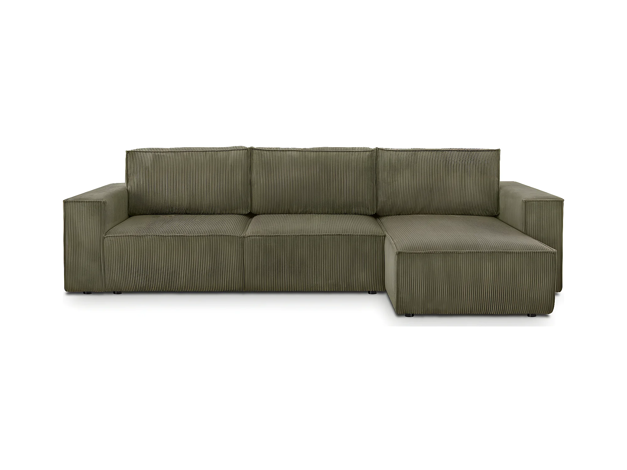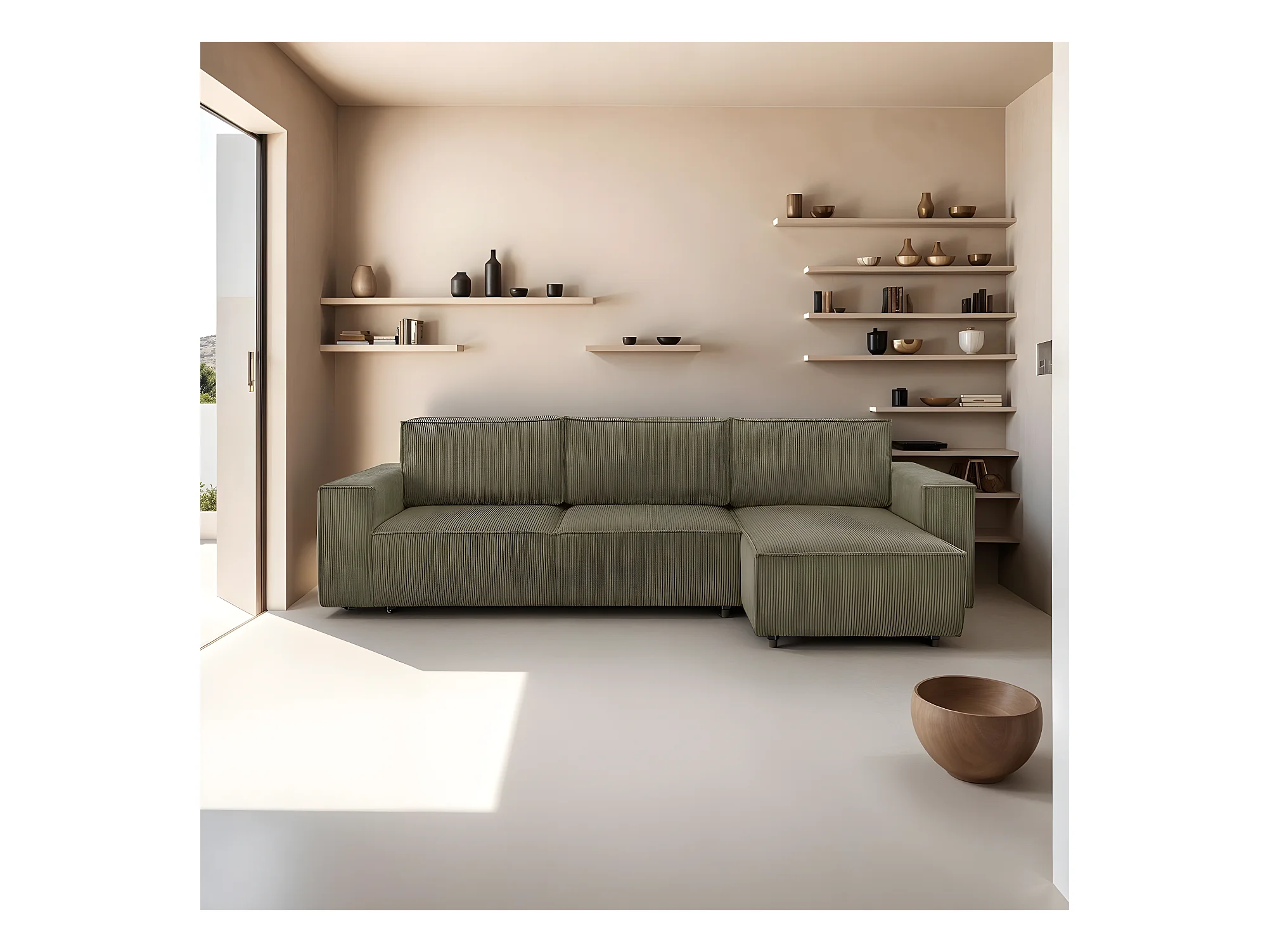 Canapé d'angle convertible réversible 5 places avec coffre de rangement en velours côtelé vert kaki - Harper