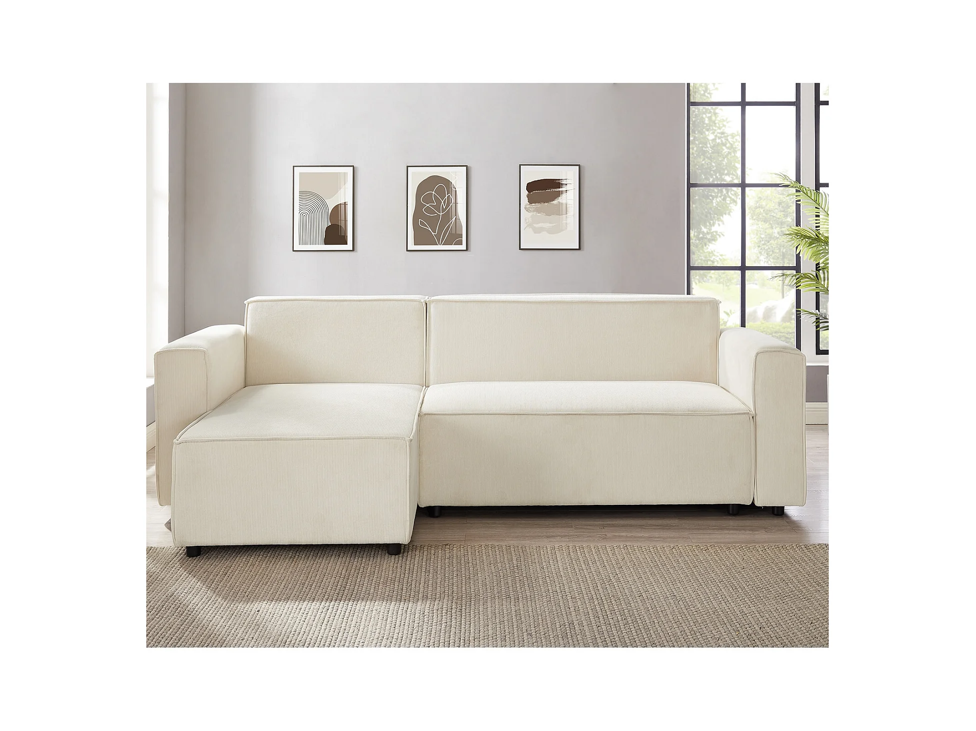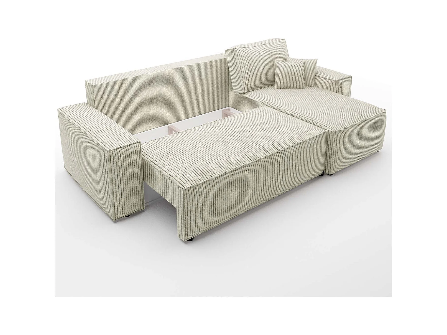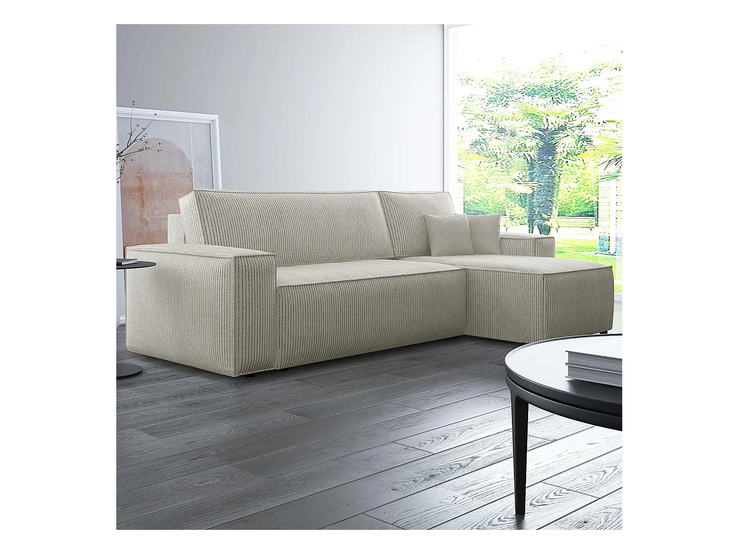 Canapé d'angle convertible réversible Lorenzo en velours côtelé Beige