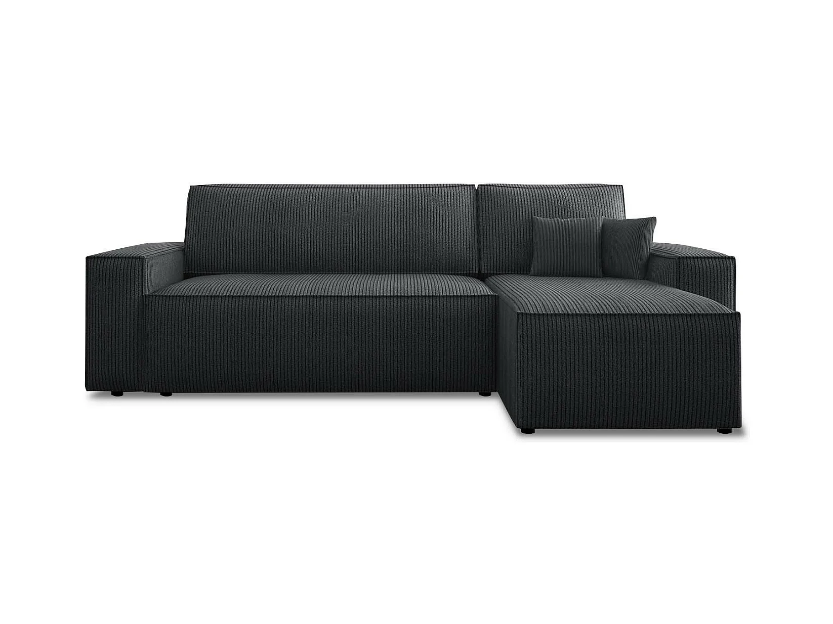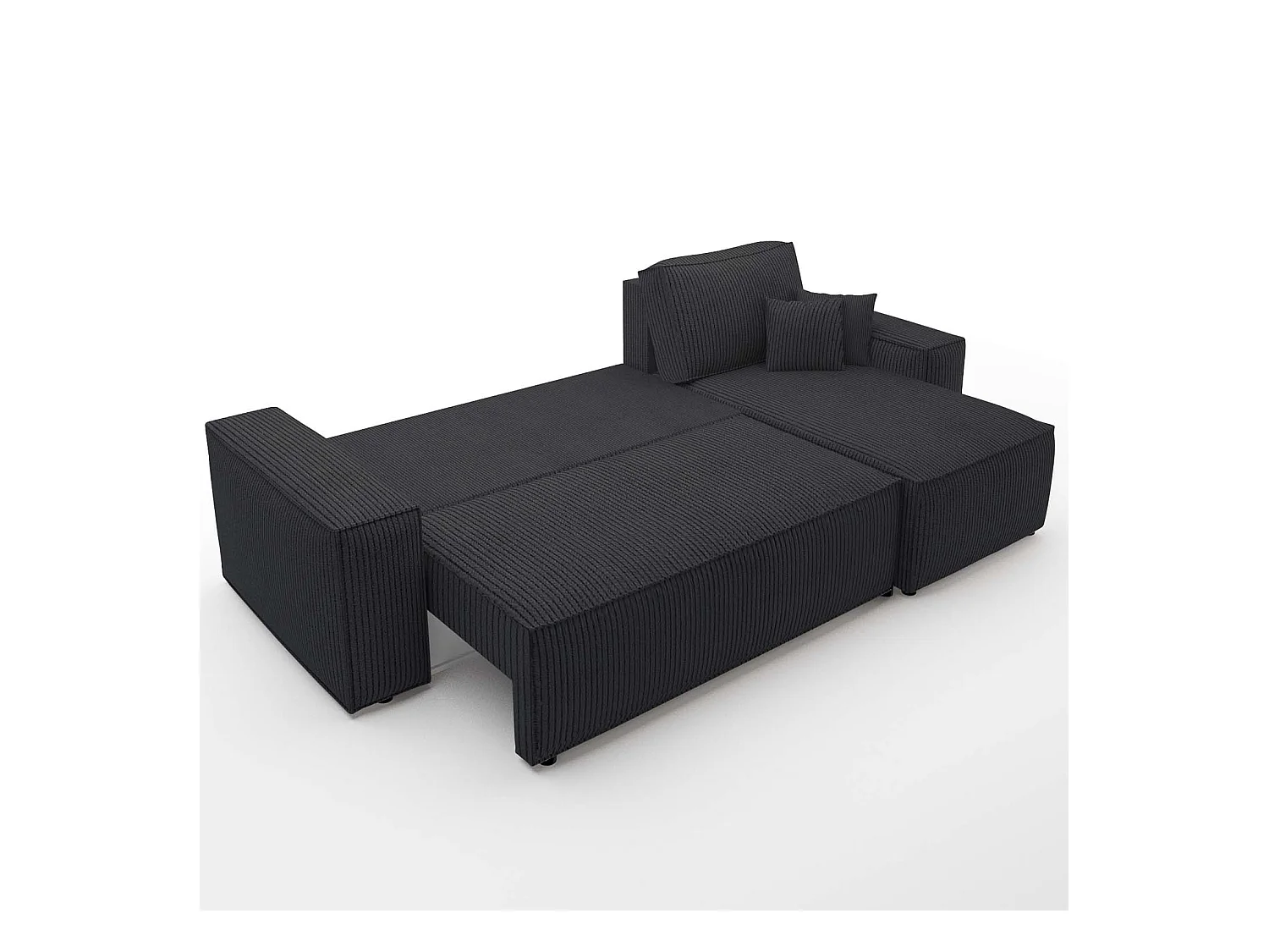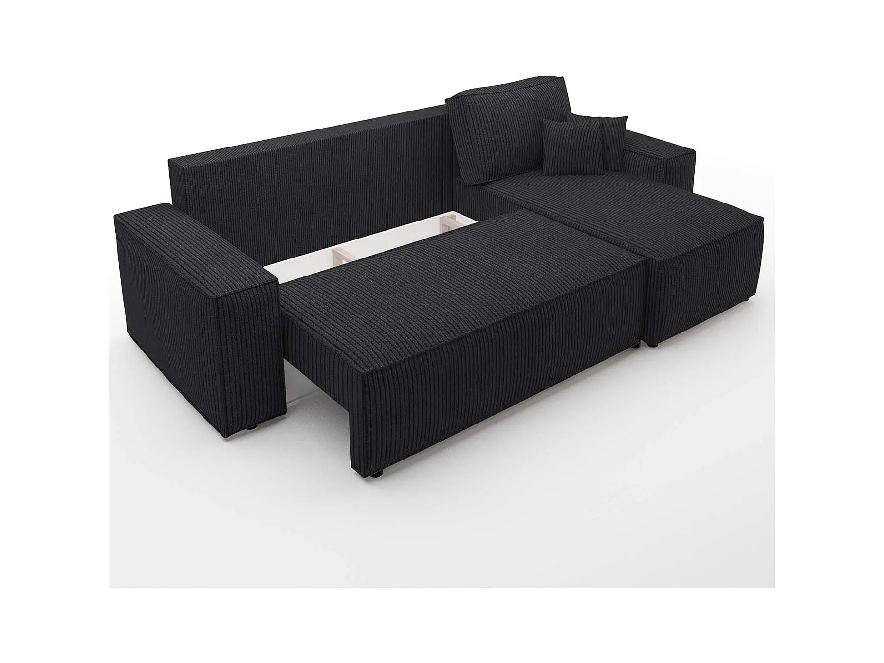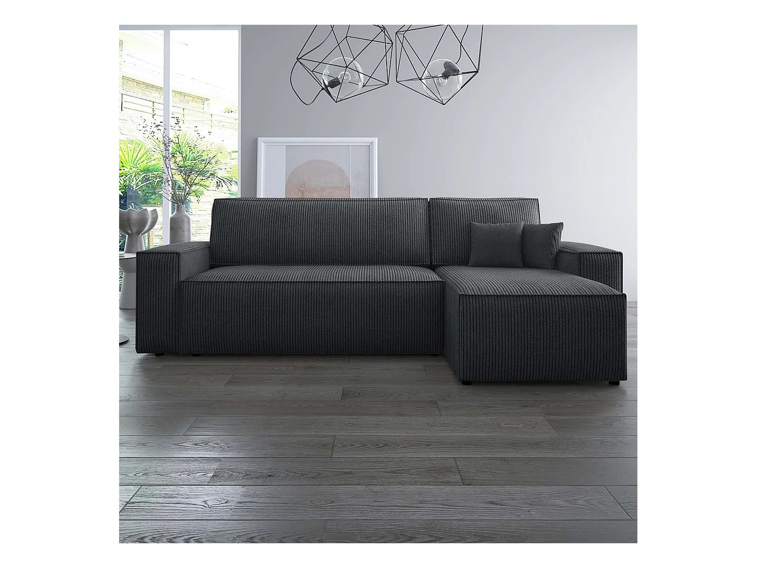 Canapé d'angle convertible réversible Lorenzo en velours côtelé Noir