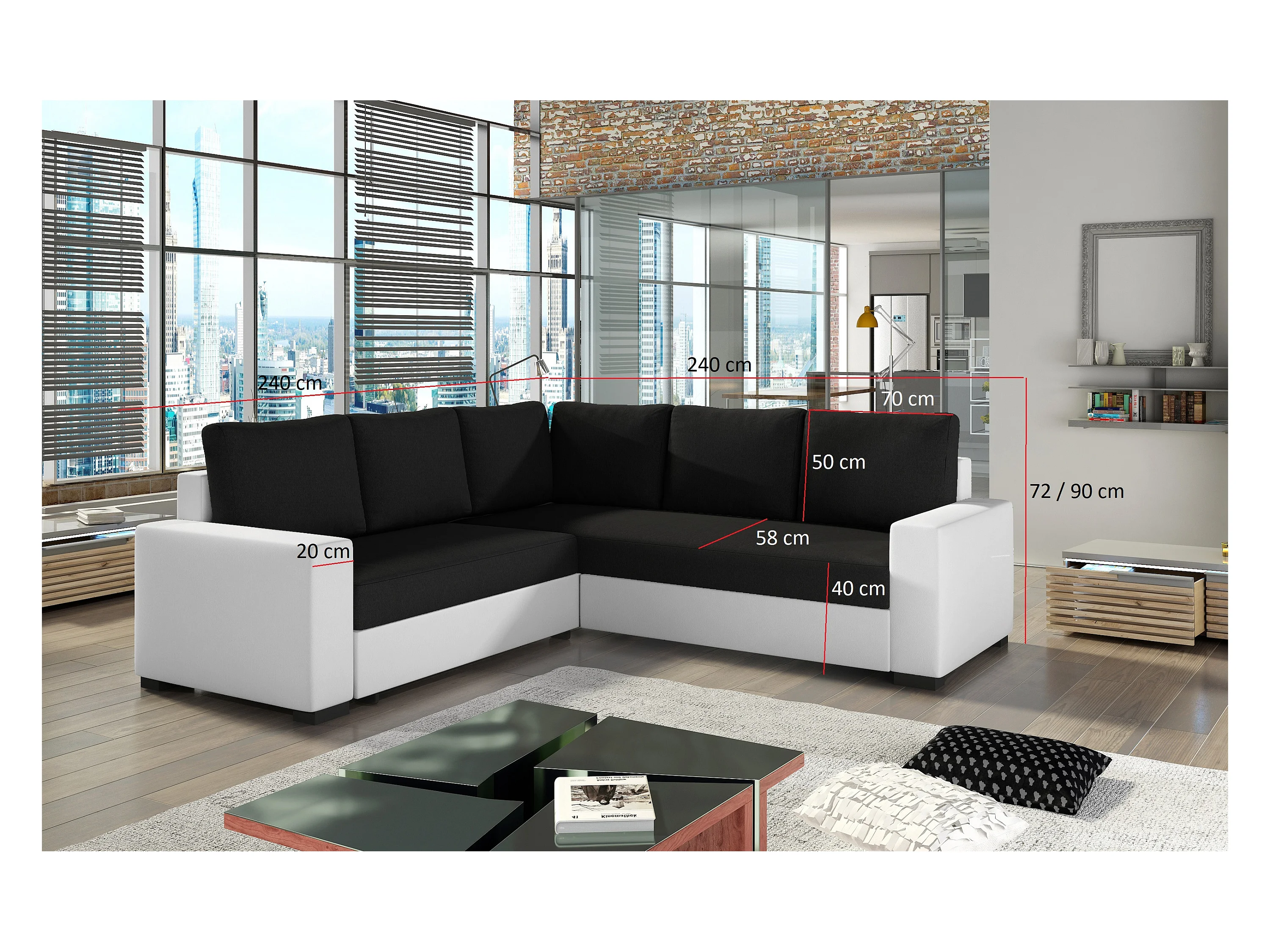 Canapé d'angle convertible simili gris et tissu gris foncé Travor 235cm