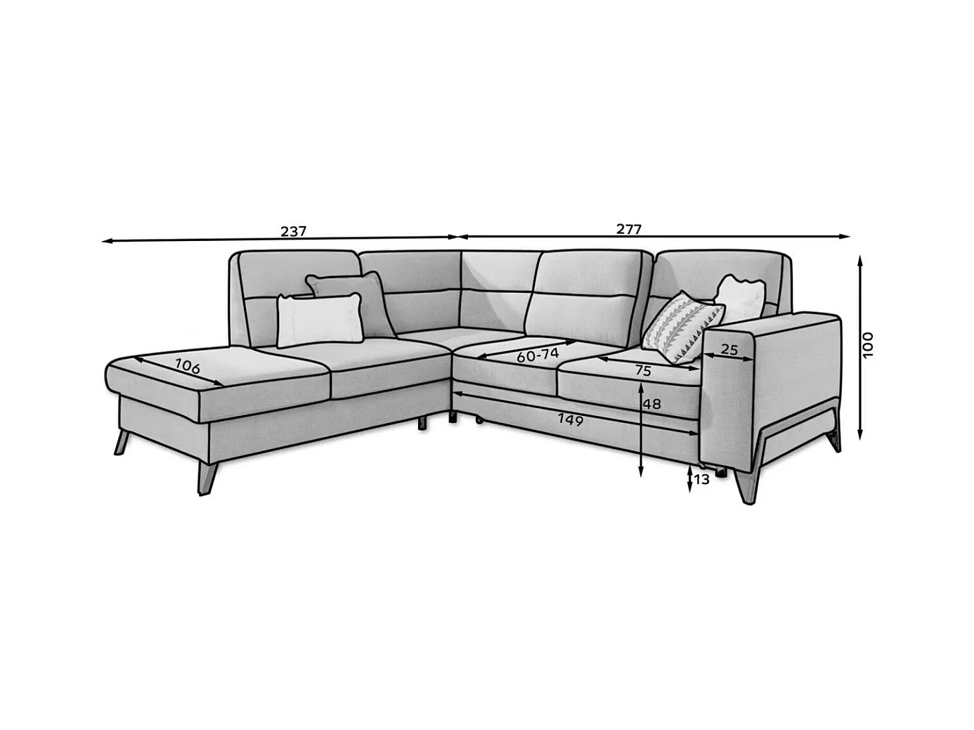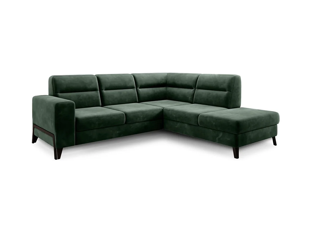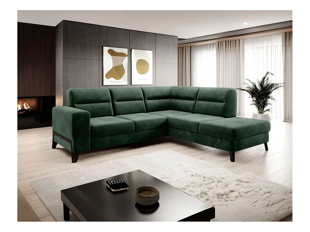 Canapé d'angle convertible tissu KAZAL - Dossiers réglables et pieds acier noir-Vert épinard-angle droit