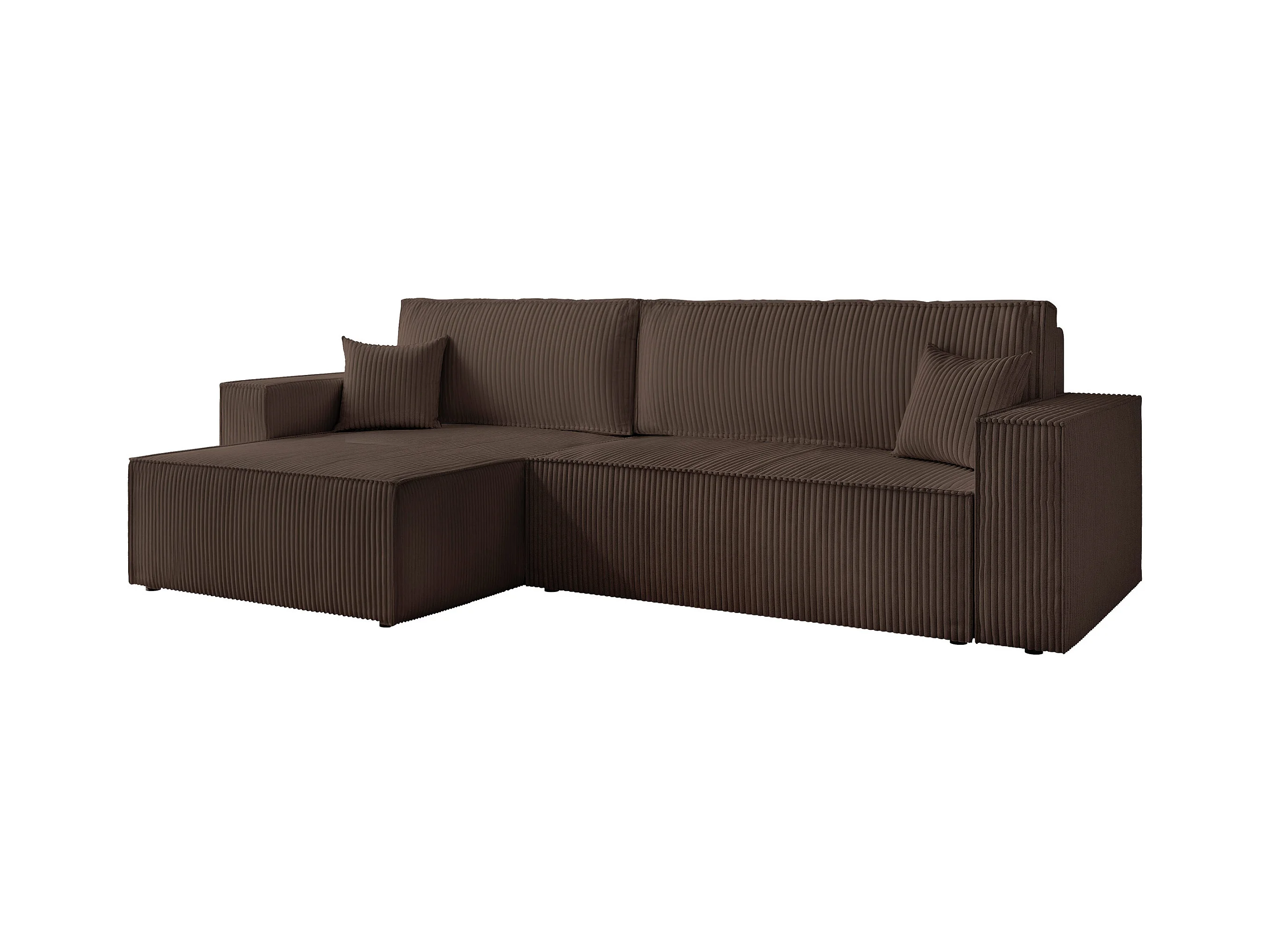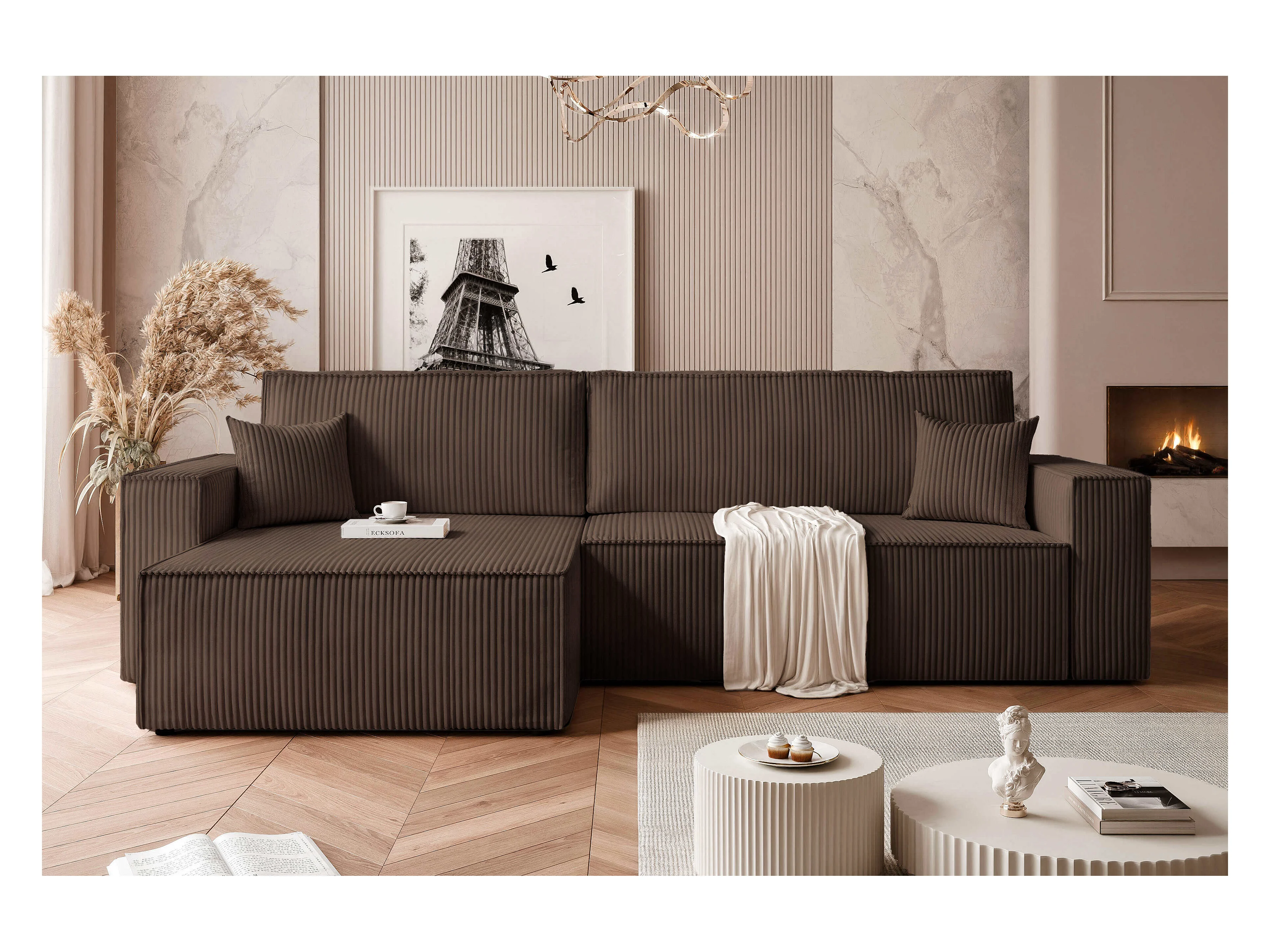 Canapé d'angle convertible tissu velours côtelé chocolat