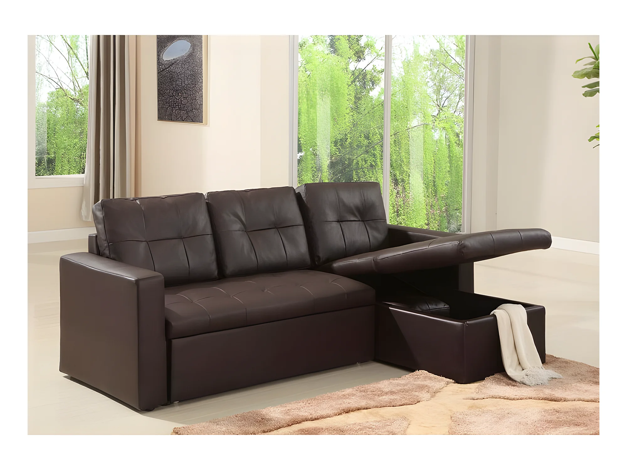 Canapé d'Angle Convertible "Corto" 230cm Marron