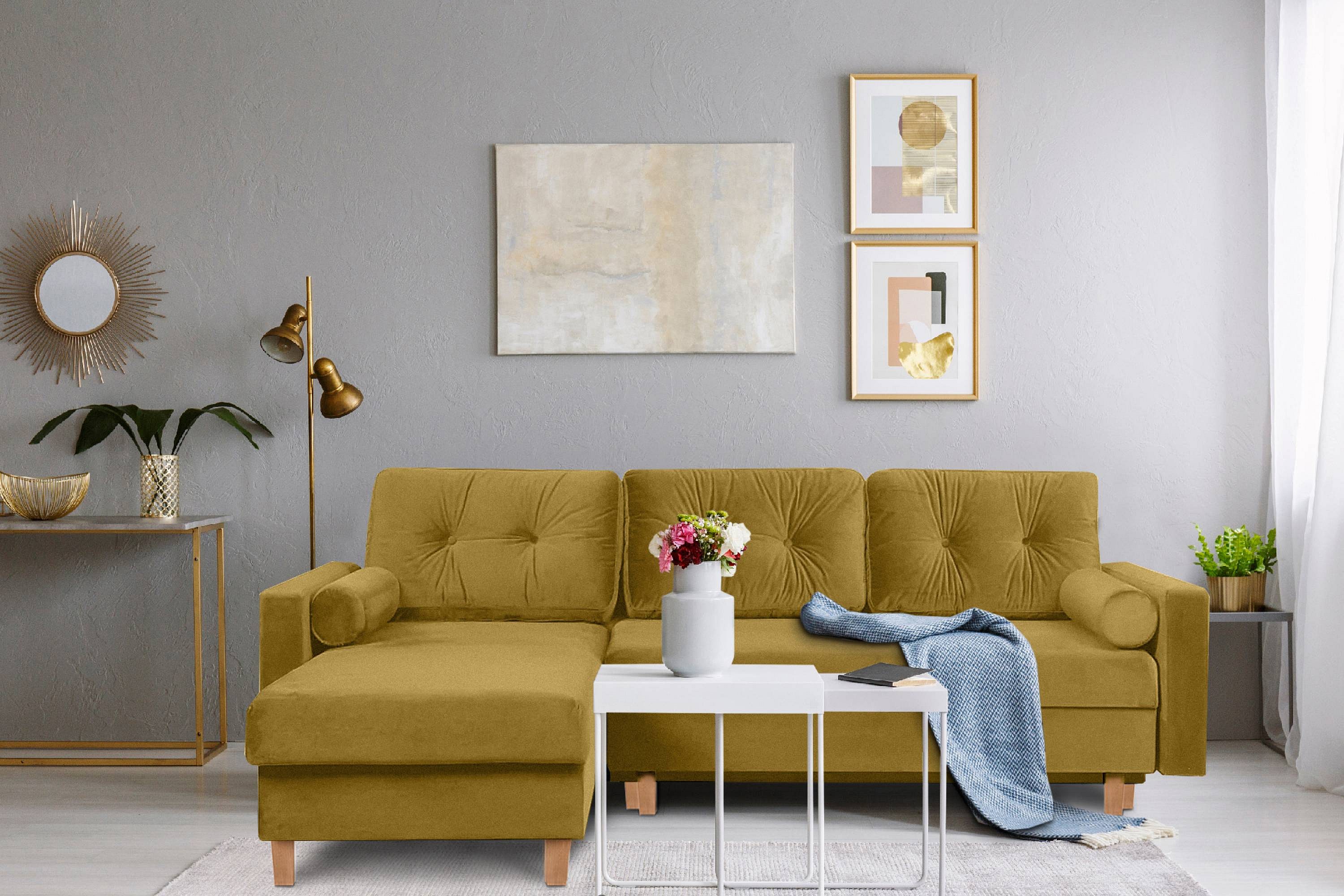 Canapé d'angle convertible universel avec ottomane ERISO - 3 places - Jaune