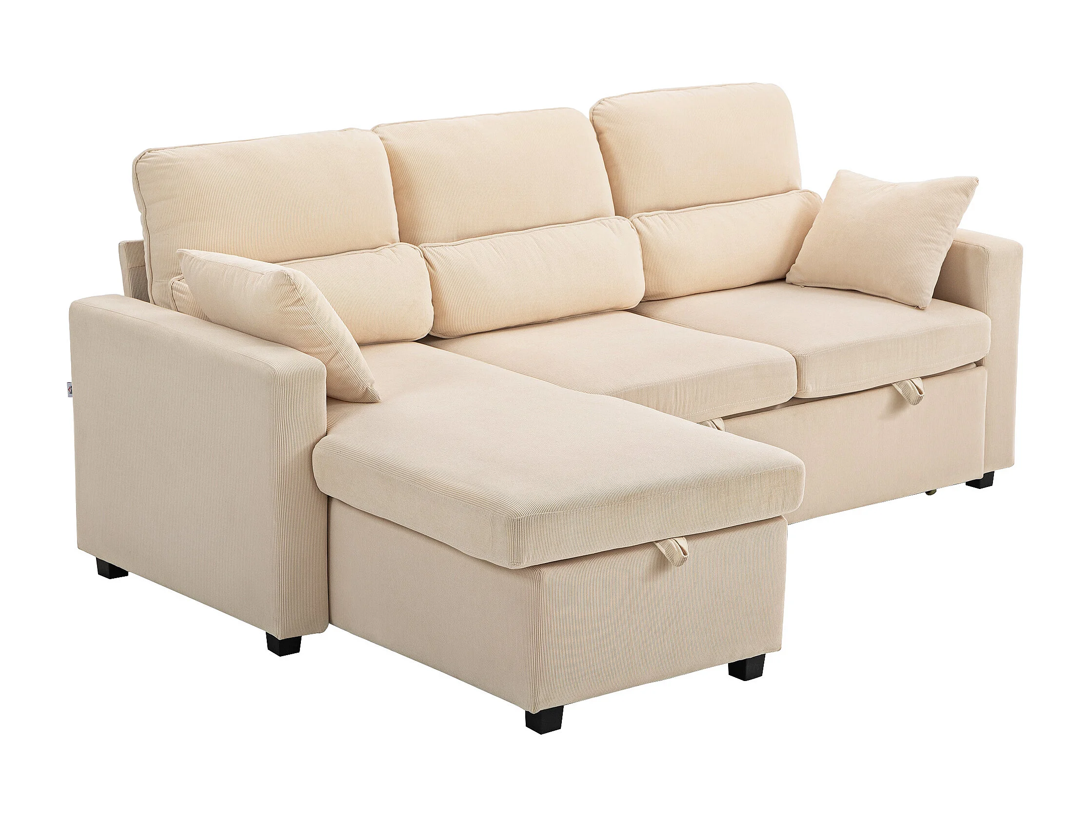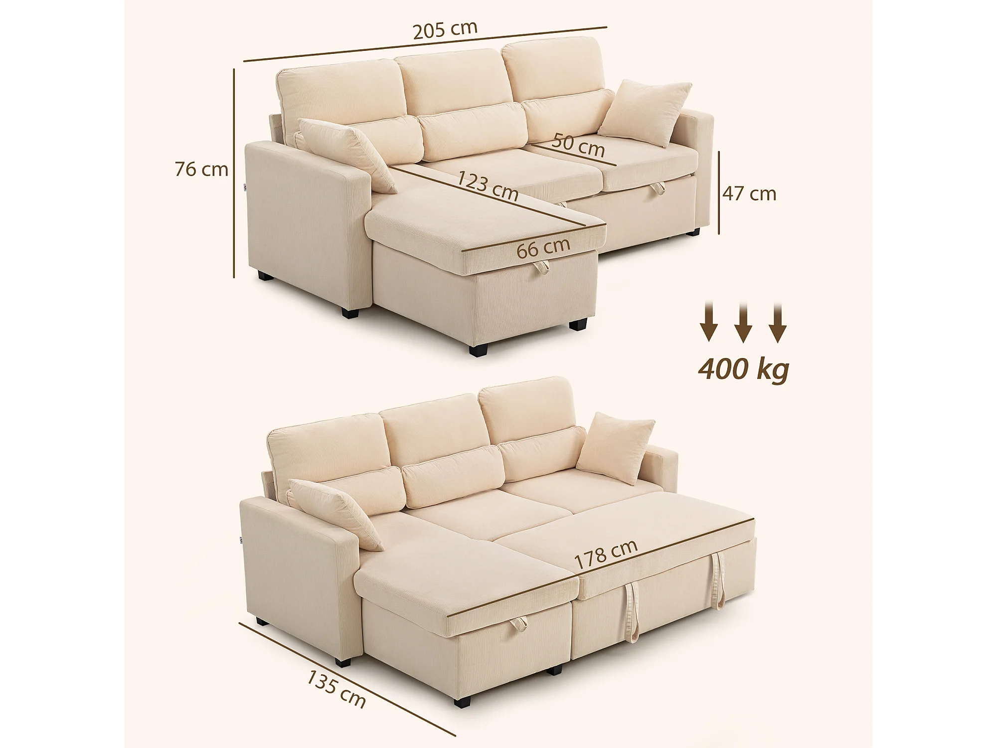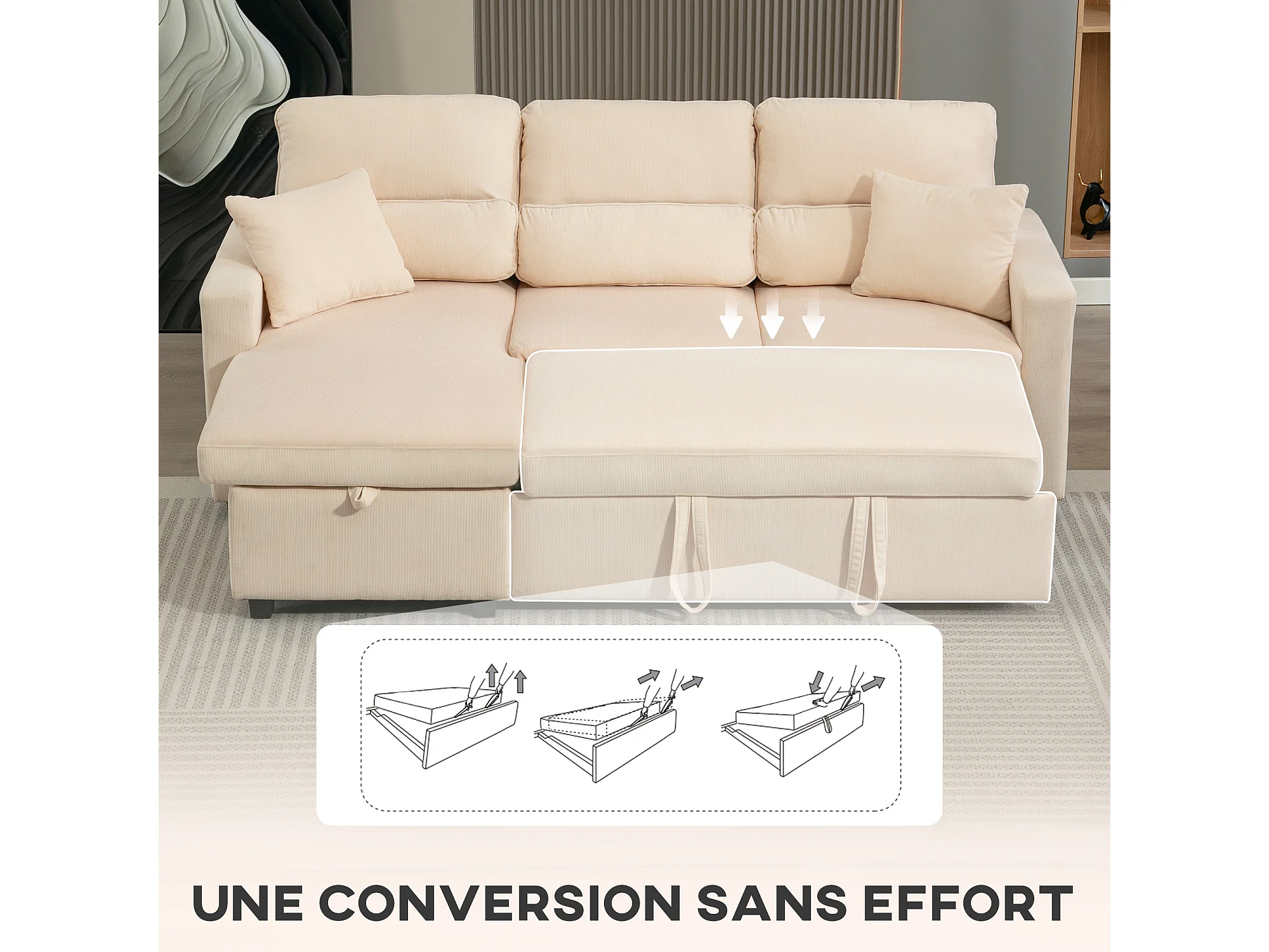 Canapé d'angle convertible velours côtelé avec coffre de rangement dim. 205x135x76cm beige