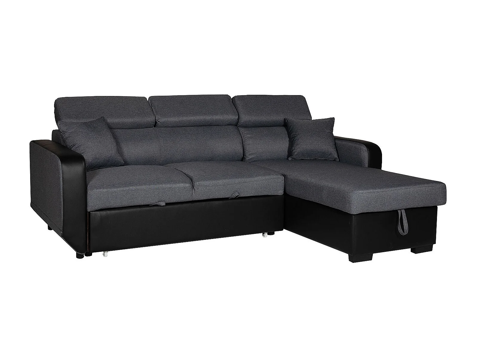 Canapé d'angle convertible WARREN 3 places gris chiné et noir - HAPPY GARDEN